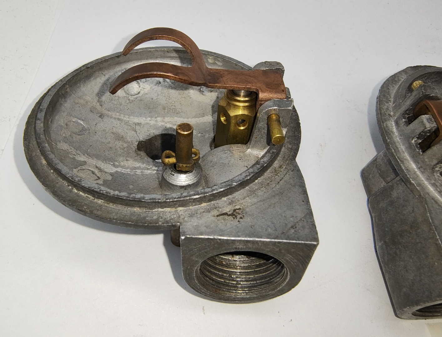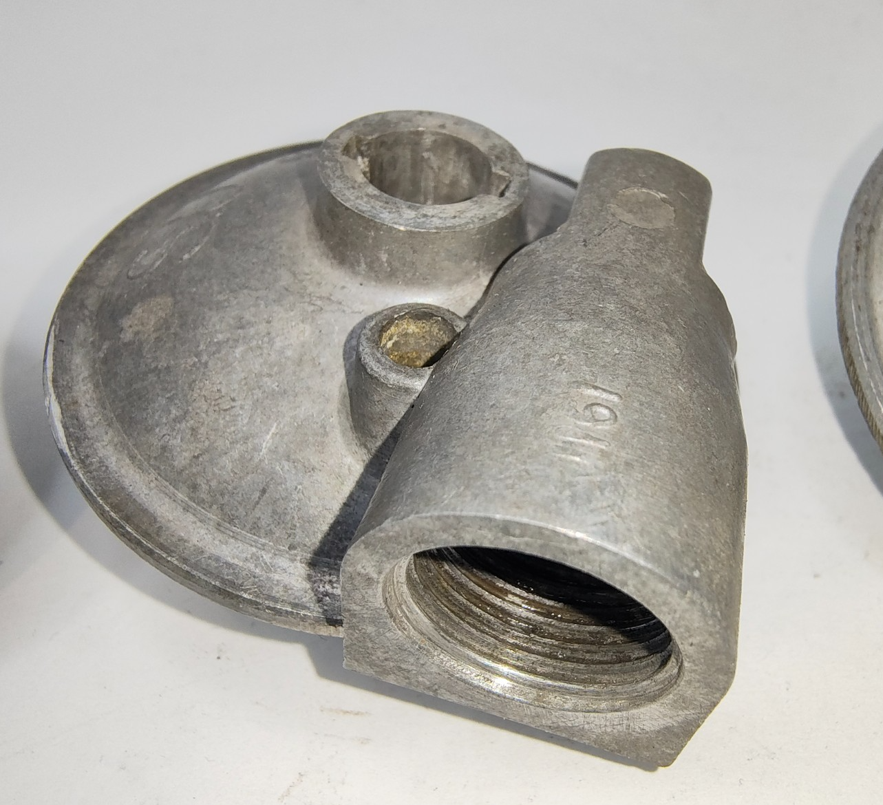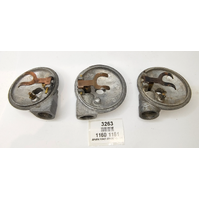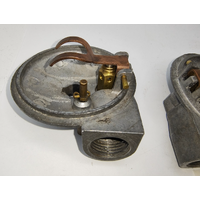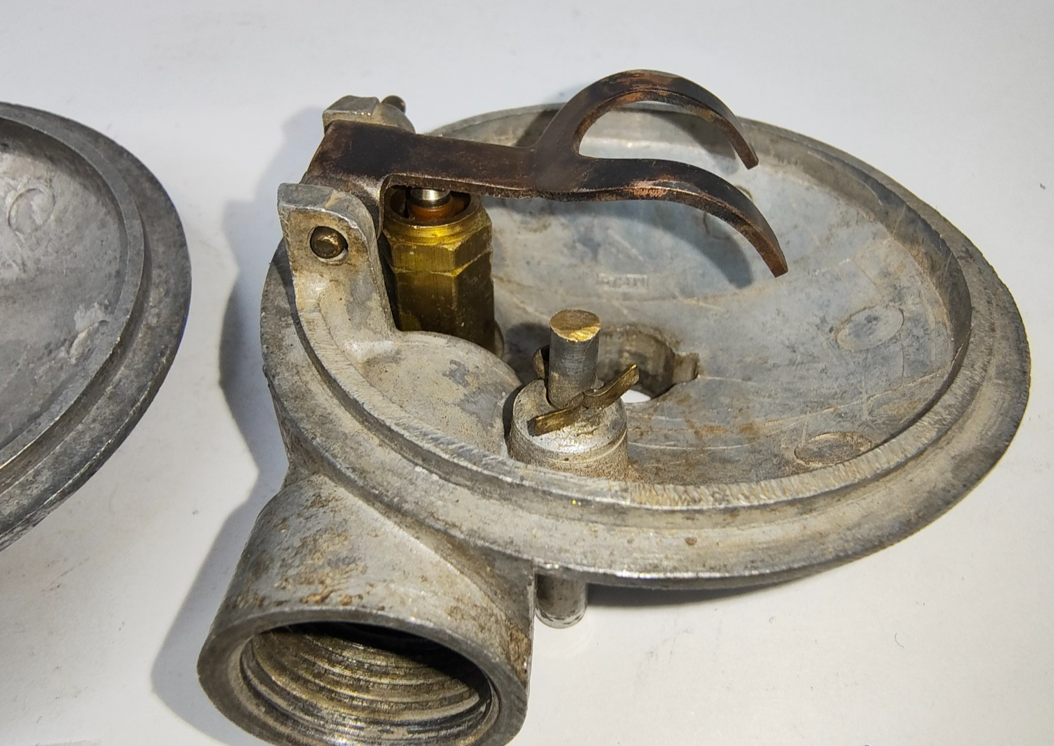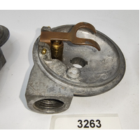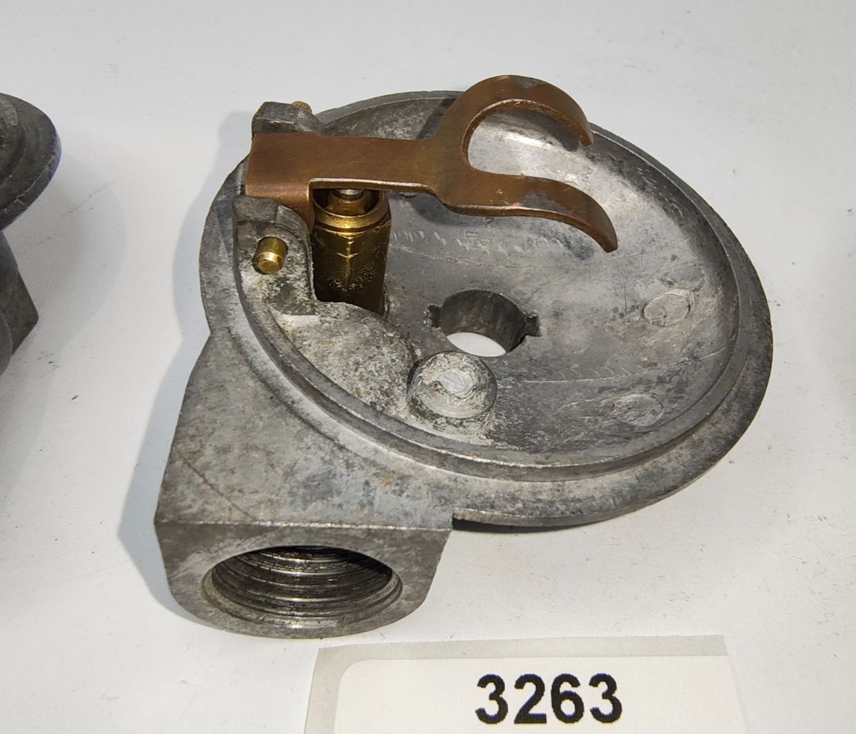 SU T2 Fuel Bowl Lid set of 3 lids, each measure 2 3/8 inches in diameter there are two right hand entry (1161) and one left hand entry (1160). All three come with needle and seats, float fork and two come with ticklers. The threads on the entry are all in good order. To Suit a number of Jaguar carburetor H8 sets but these three are from a Jaguar E Type.