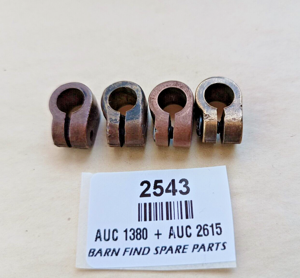 Quantity of 4 x SU Original Carburettor Brass Throttle Stop End Collar 5/16"  AUC1380, includes the AUC 2615 original locking screw.  Used Condition  - please see photos as they form part of the description.