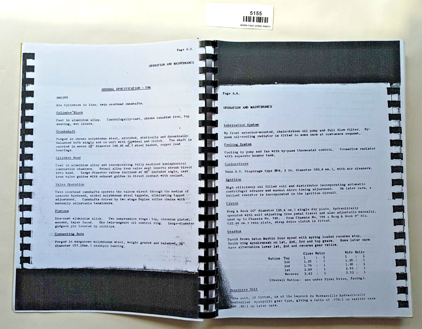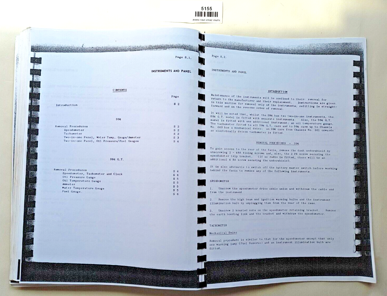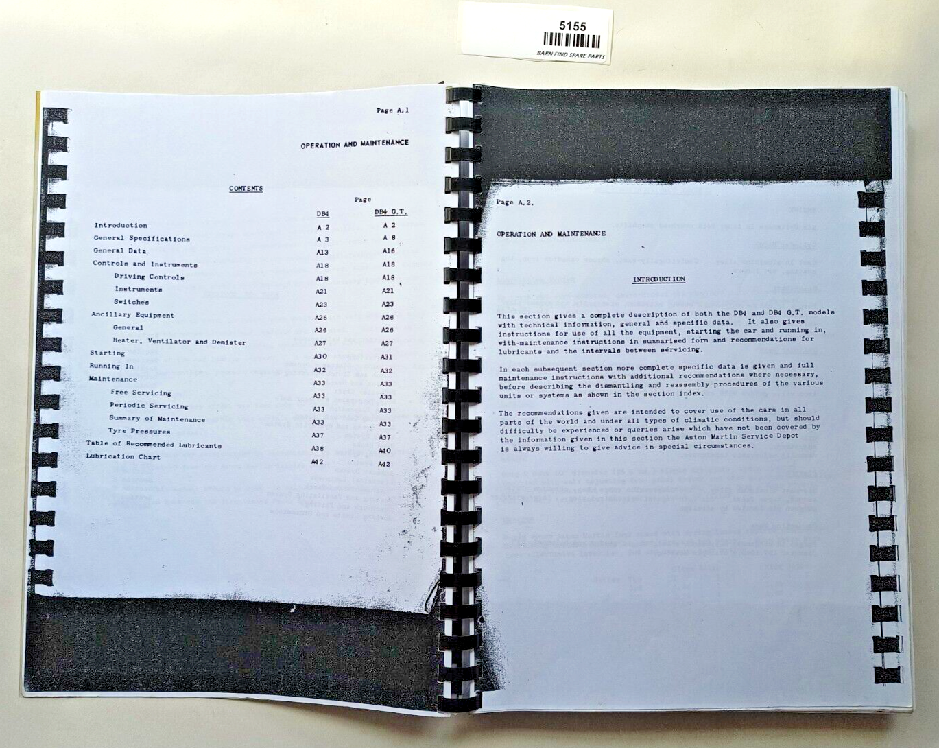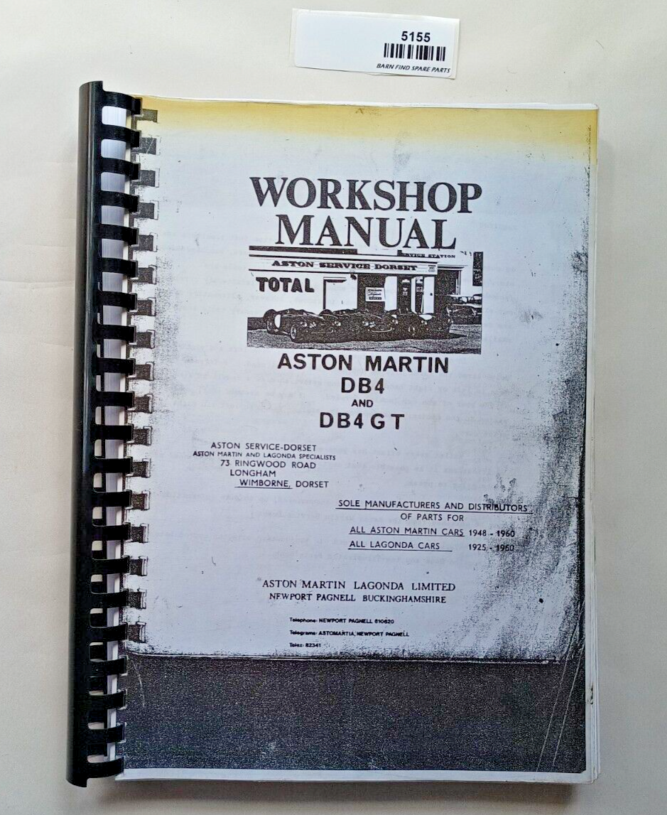 Aston martin DB4 and DB4GT workshop manual. Photocopy - spiral/comb bound - black and white. Please see photo(s) - they form part of the description.