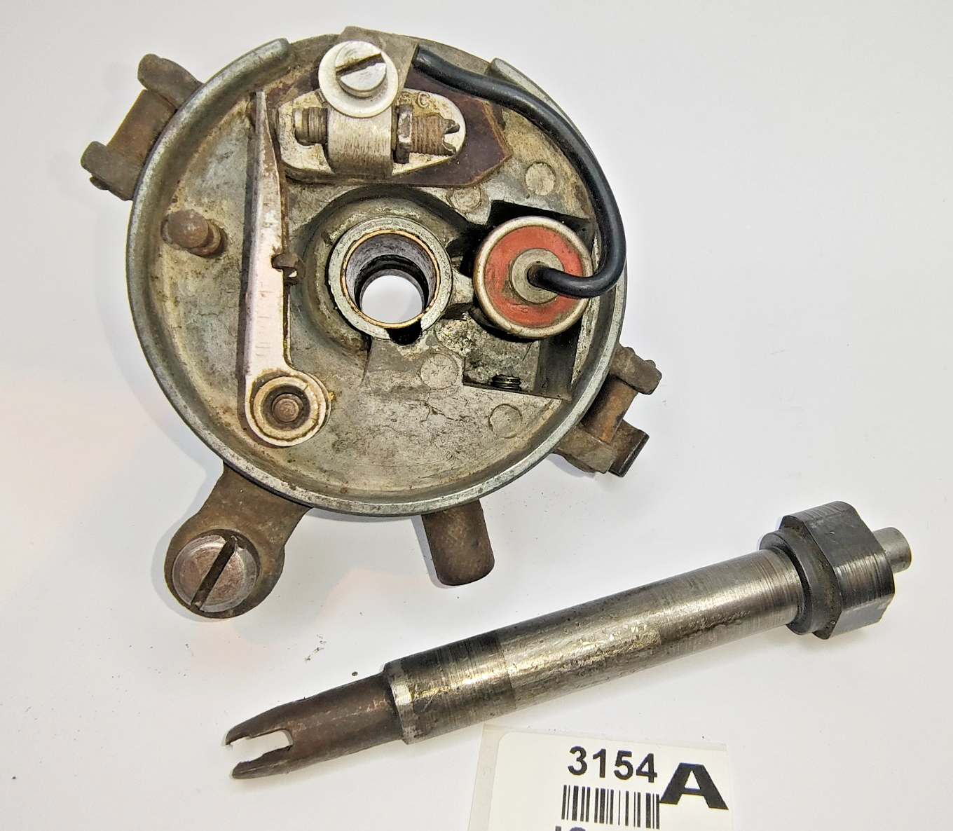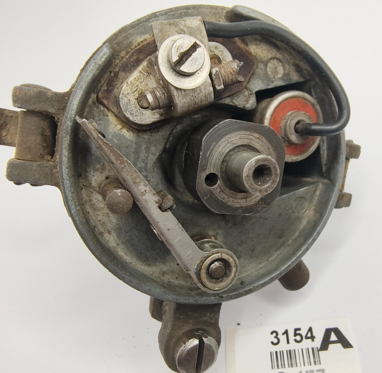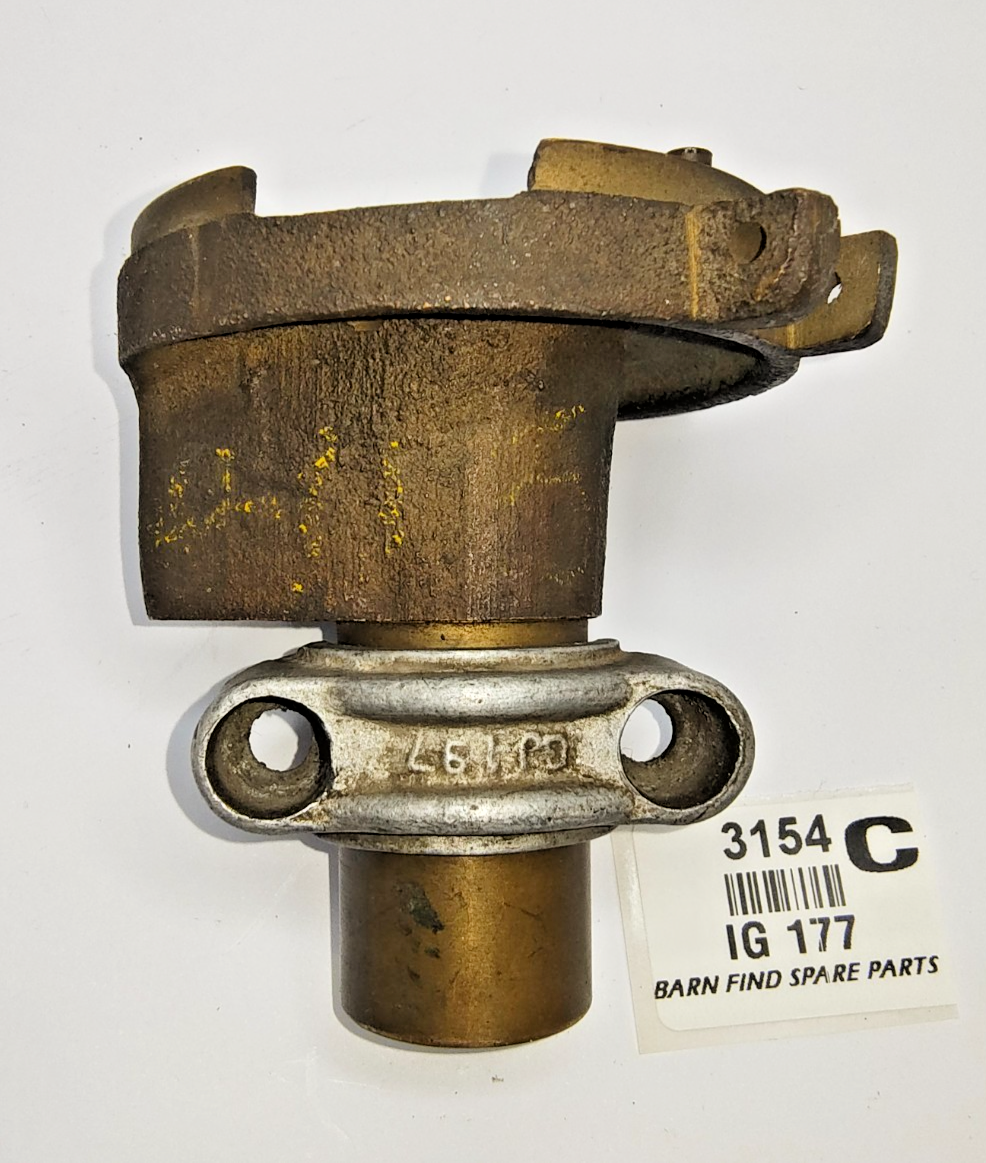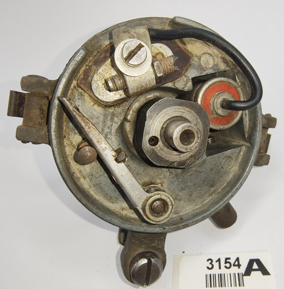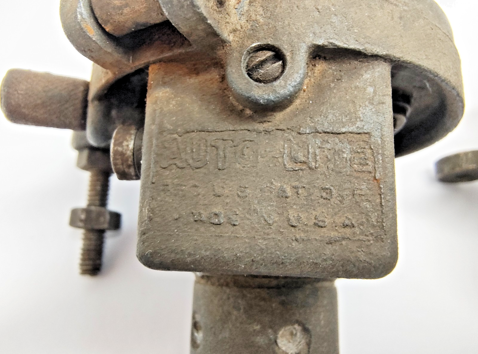 Autolite Auto-lite Distributors Job Lot - all three distributors and one mounting collar are included.  IG- 177 maybe to suit an Overland 4 cylinder model 91 and 92 models from around 1923 - 1925 or possibly fitted to a Willys. One of the distributors marked "A" is the original which is made of diecast but as was the case many were/ have been recast in brass, The distributor marked "B" with the gear drive is one of those and the one marked "C " is a brass casting which could be configured to suit a specific fitment method as some of the Autolite IG 177 were fitted to and driven from the back of the generator. "B " appears to have the original condenser with a replacement condenser fitted to "A" which has also had a bleed nipple fitted as a replacement breather. There is a mounting collar marked GJ -197  that will fit around either of the 3 shafts as shown. Distributor "A" may possibly have been fitted to the rear of the generator, but that is just an assumption and at best a guess. Please see photo(s) - they form part of the description.