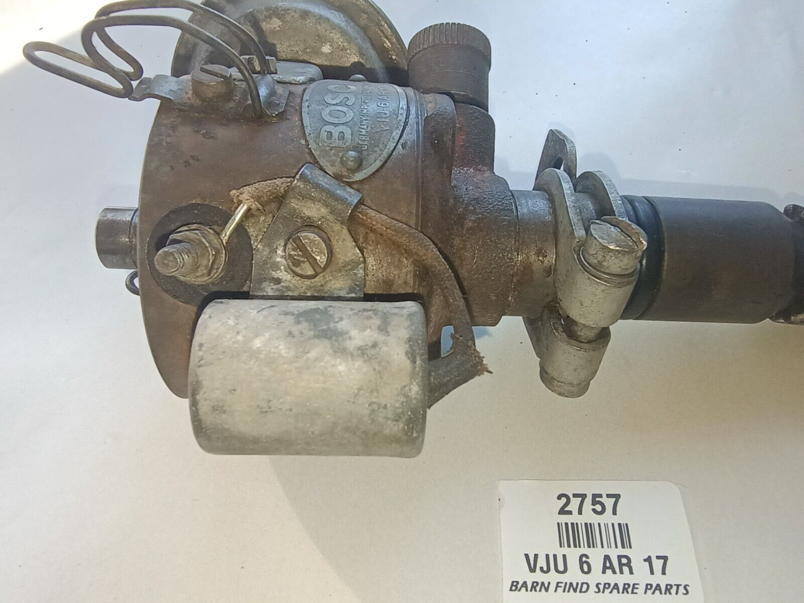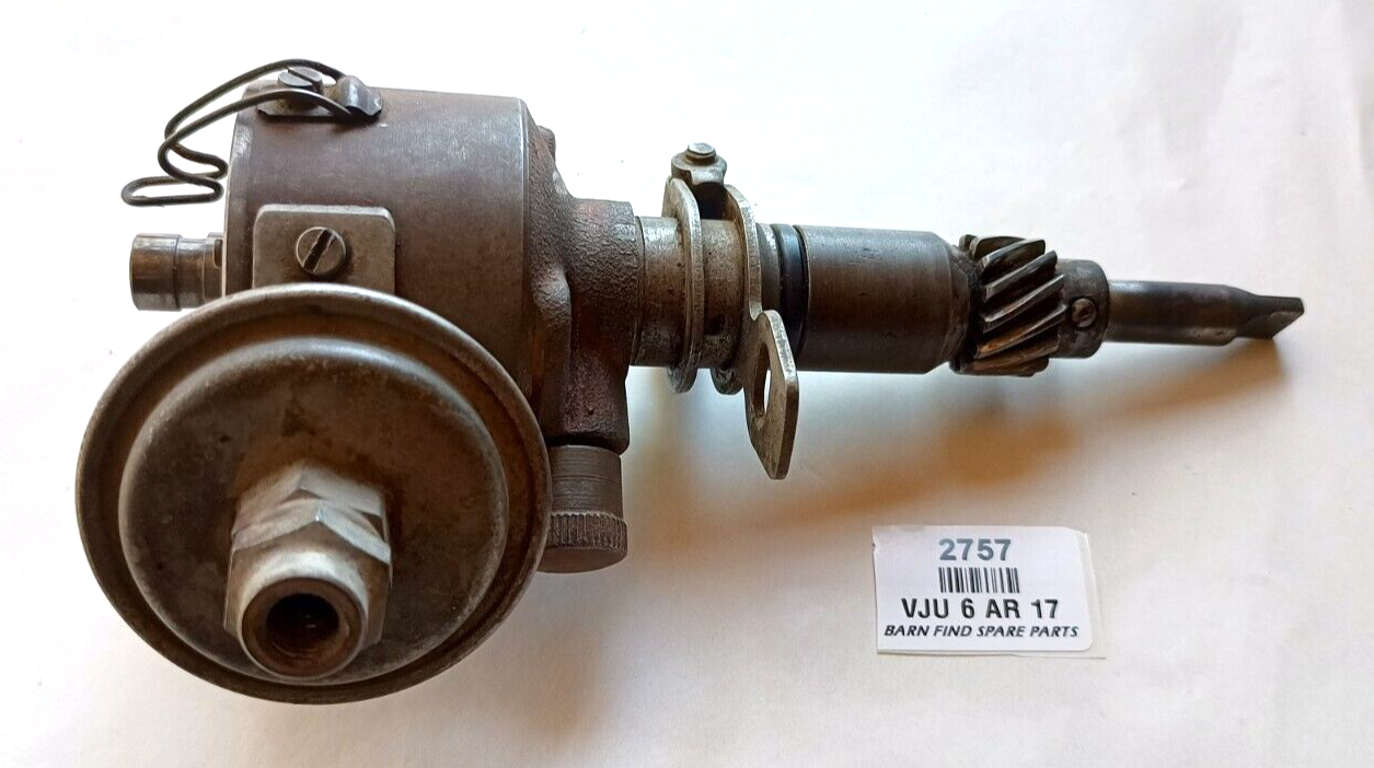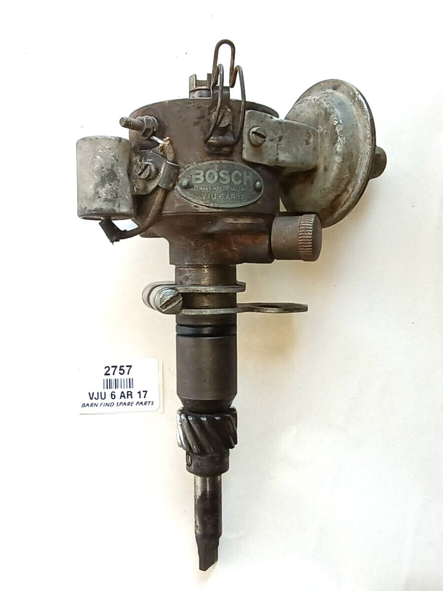BOSCH Original Used  6 Volt Distributor VJU 6 AR 17 SUITS FX 48-215 FJ HOLDEN GREY MOTOR. NO CAP. This distributor has been stored in a cupboard in our Eden Barn since the 1960's, it appears in very good used condition it spins freely while the points open and close correctly, there is NO detectable signs of wear movement in the main shaft, the drive cog teeth are all in good condition with no chips, the vacum advance works. This is a very good used distributor.  Please see photos as they form part of the description.