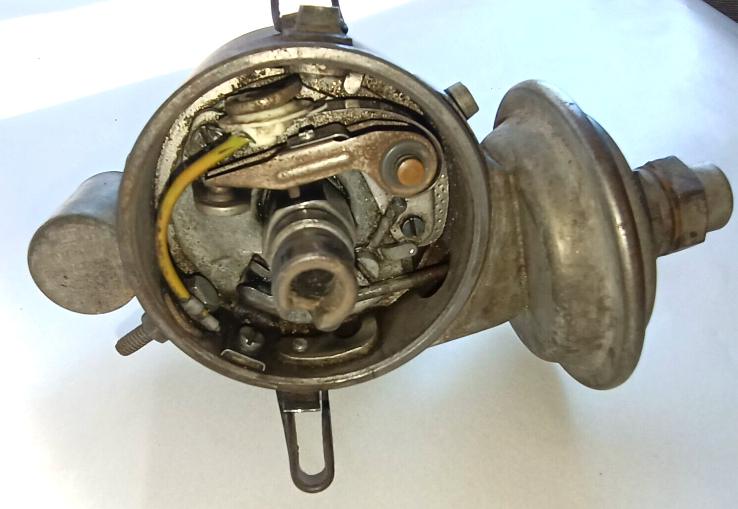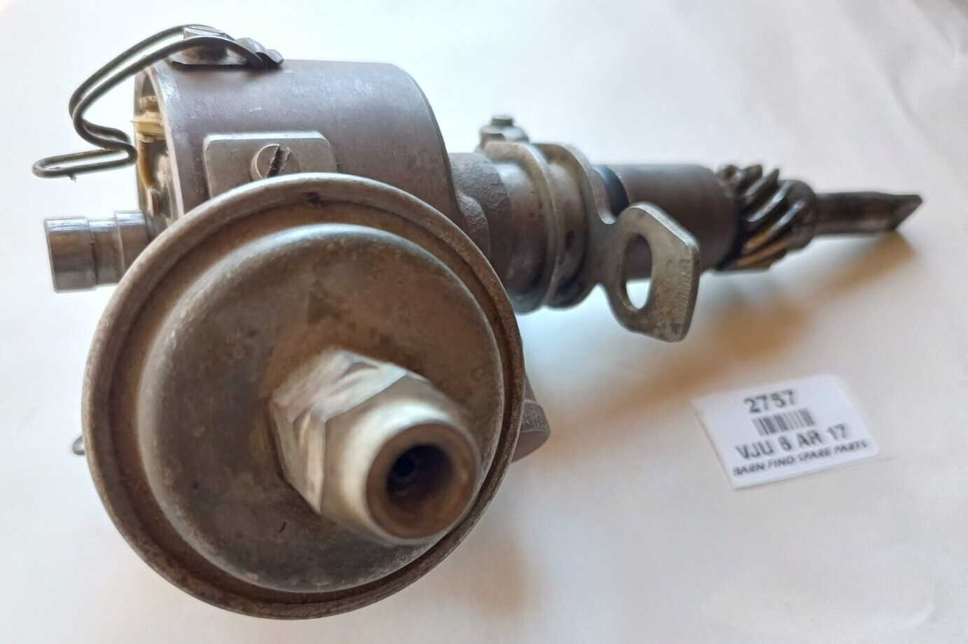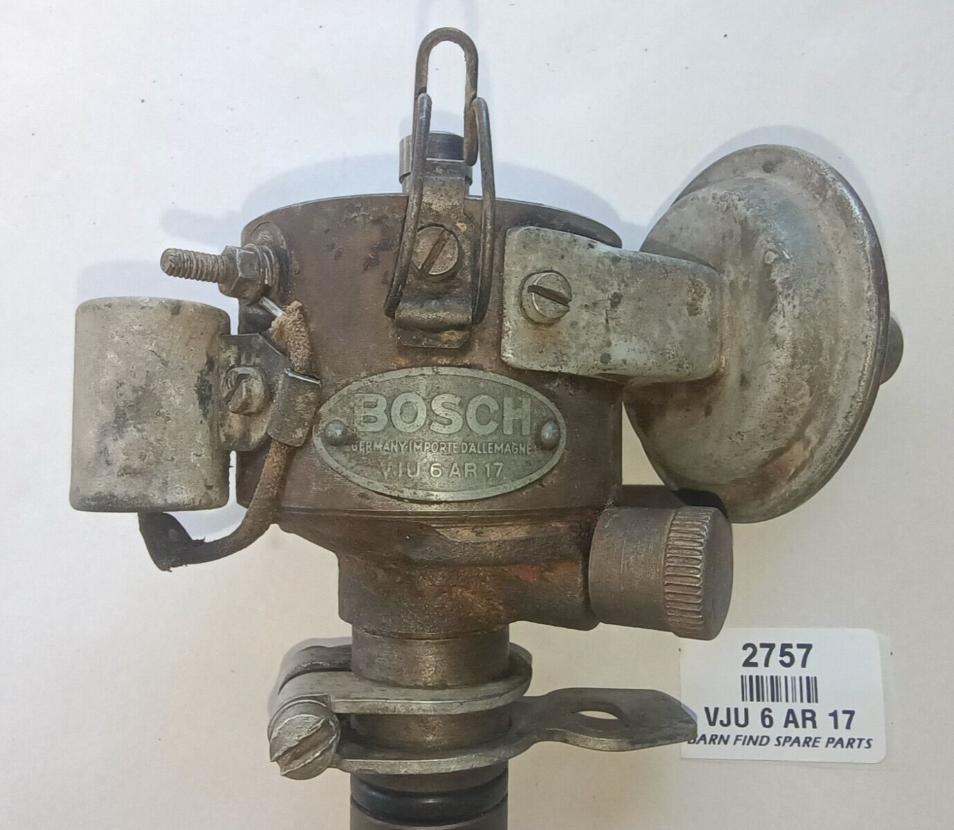 BOSCH Original Used  6 Volt Distributor VJU 6 AR 17 SUITS FX 48-215 FJ HOLDEN GREY MOTOR. NO CAP. This distributor has been stored in a cupboard in our Eden Barn since the 1960's, it appears in very good used condition it spins freely while the points open and close correctly, there is NO detectable signs of wear movement in the main shaft, the drive cog teeth are all in good condition with no chips, the vacum advance works. This is a very good used distributor.  Please see photos as they form part of the description.