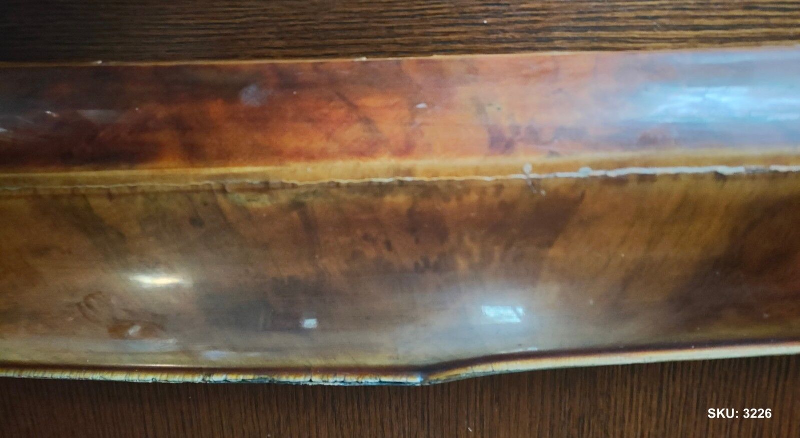 Classic Jaguar MK2, Wood Dashboard Top or Screen Rail Capping Assembly, BD 27075. This particular piece is from a Jaguar Mk 2 but will also fit  Daimler V8 and Jaguar S-Type, it comes with globe holder and threaded mounting plates. The wood is in very good condition with no wood rot, cracks in the veneer as seen in the photos.