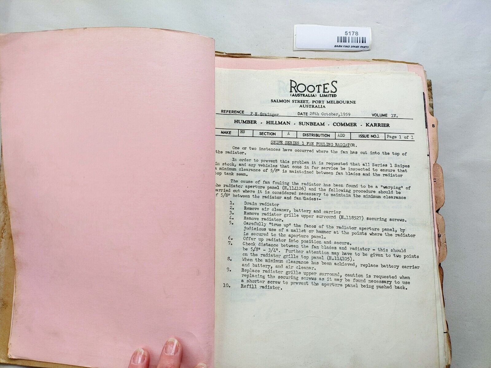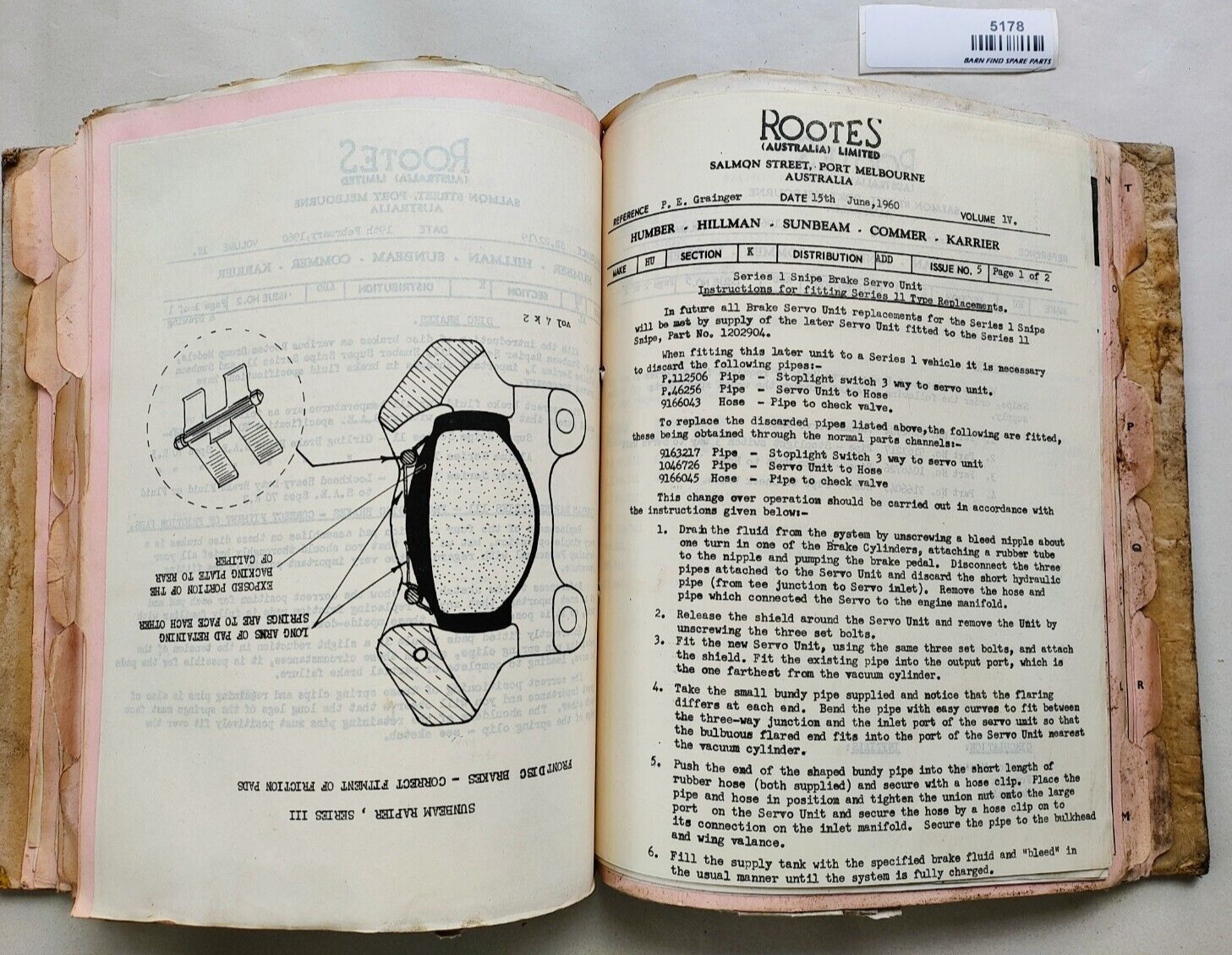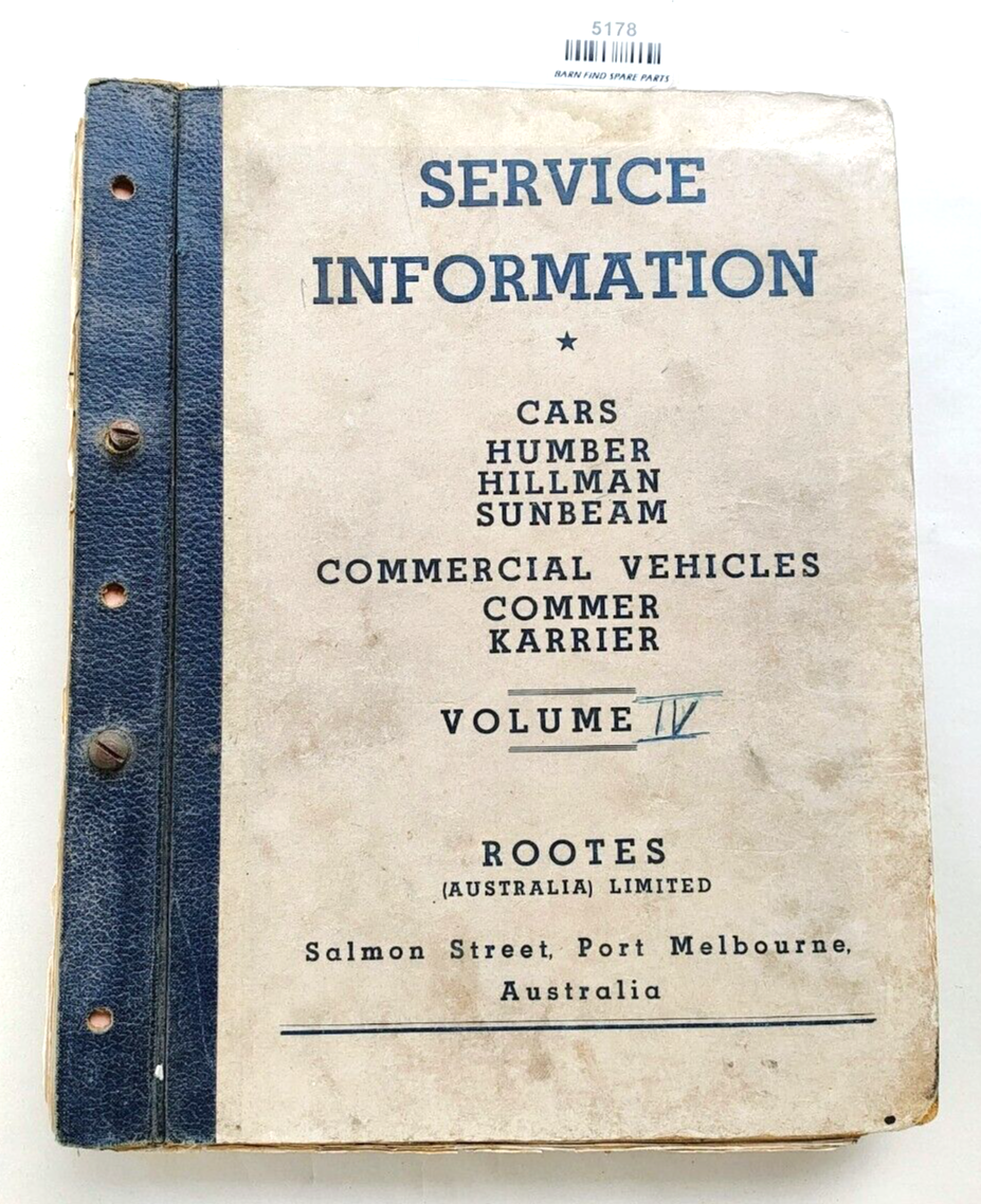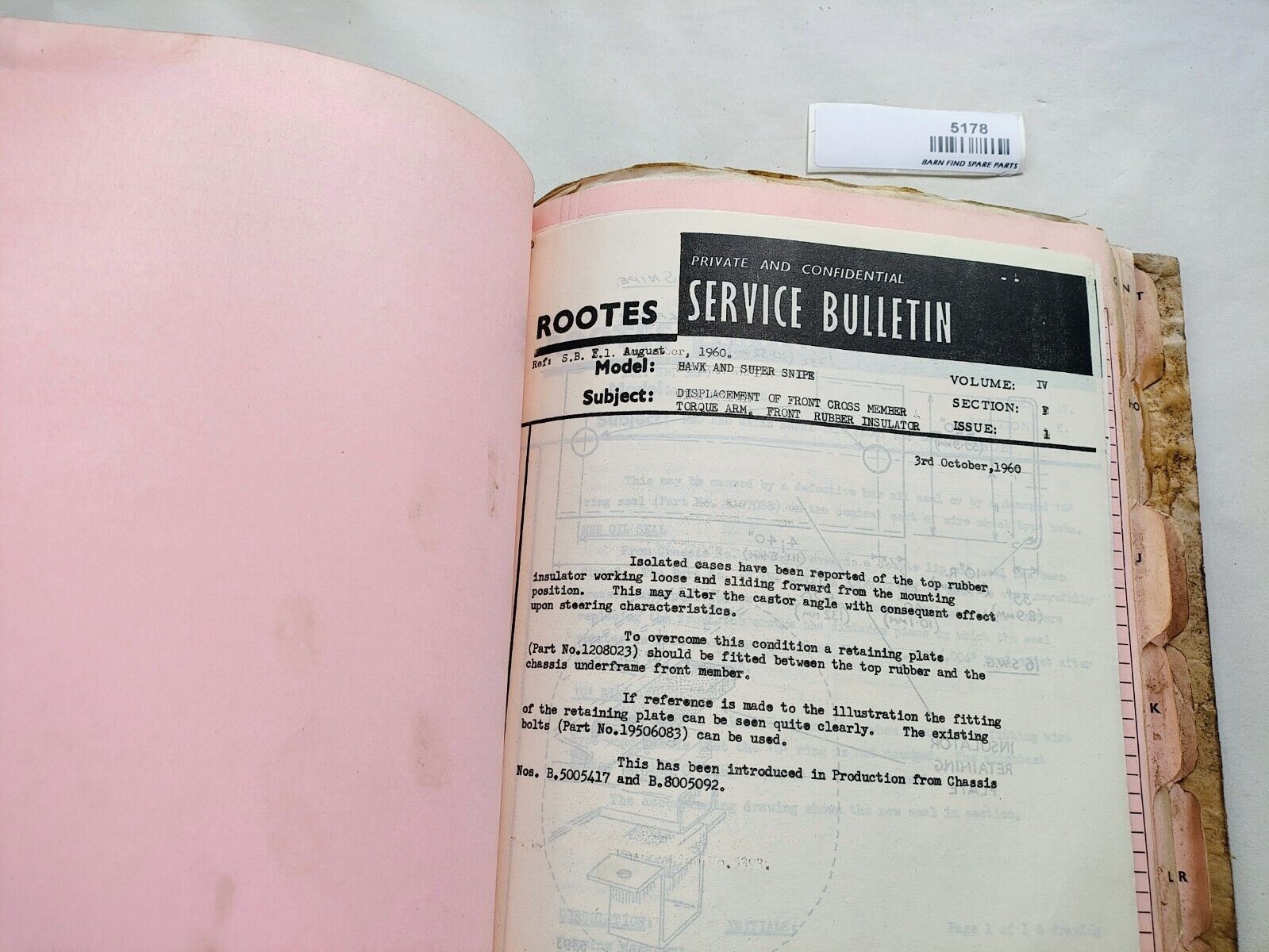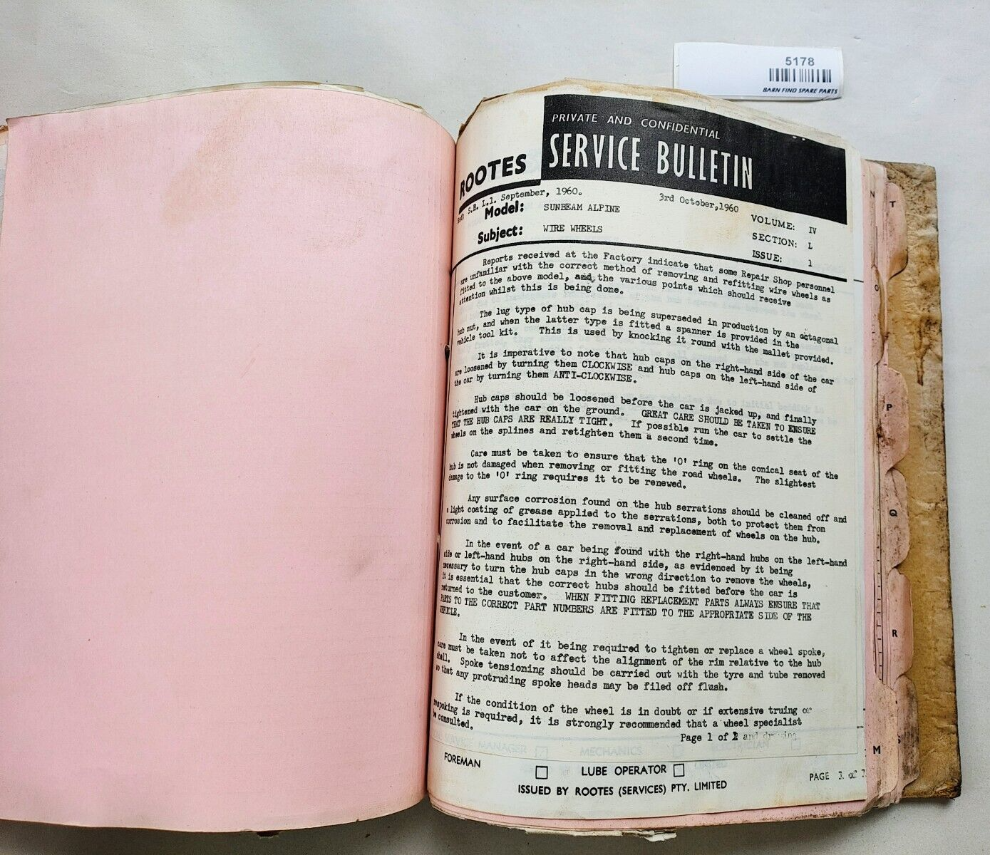 Cars - Humber Hillman Sunbeam Commercial Vehicles - Commer Karrier. Loose leaf screw post bound with hard cover. Service bulletins mostly from 1959 1960 1961, ther must be a hundred or more bulletins.