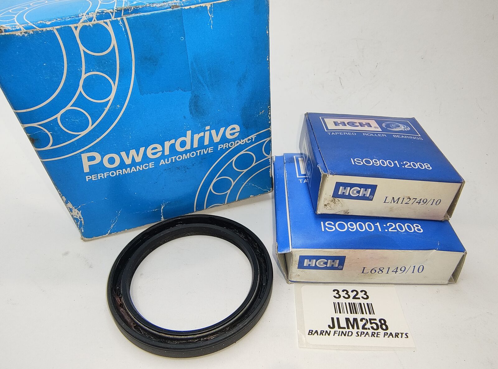 Power Drive Performance Automotive Front Wheel Bearing Kit, in original packaging,  New Old Stock,  JLM258. Inner and outer HCH Brand bearings and includes oil seal, 2 per car required. Not suitable for cars with ABS. New Old Stock sealed in original packaging, to suit Jaguar XJ6, XJ12, XJS Mid 1977 onwards to 1988.