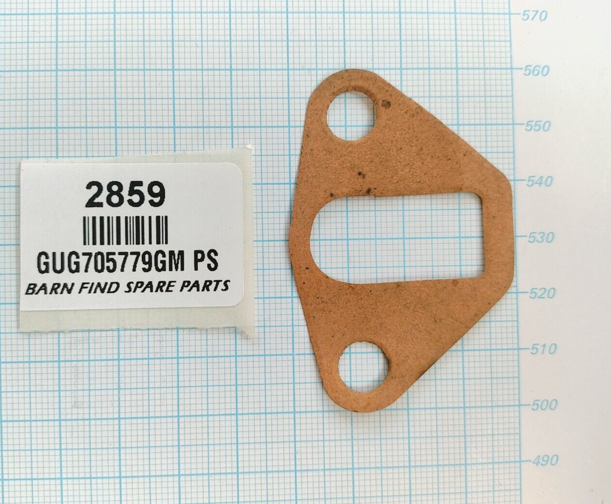 Fuel Pump spacer Gasket GUG705779GM - PS, New Old Stock. Paper gasket for either side of the spacer on all mechanical fuel pumps fitted on the rear of engines. PLEASE see photos as they form part of the description.