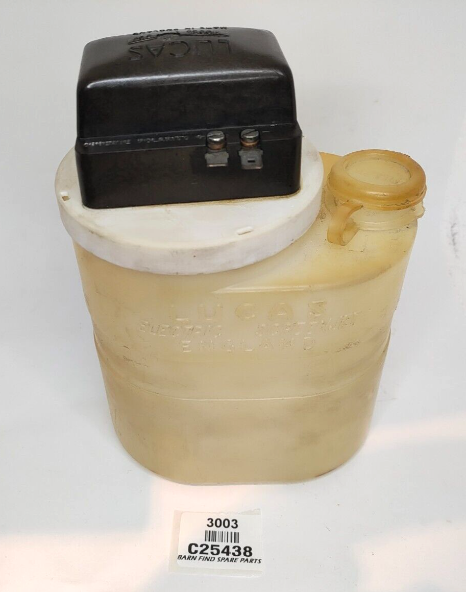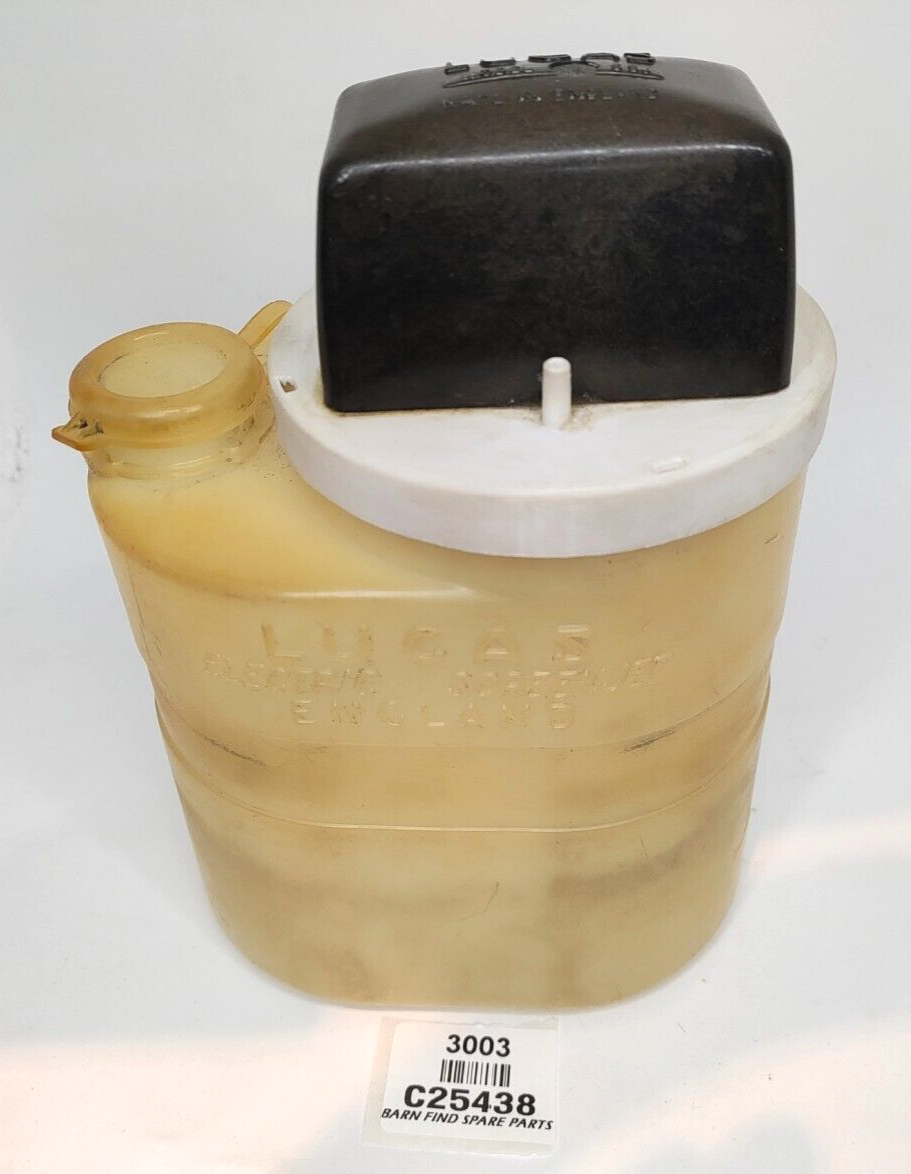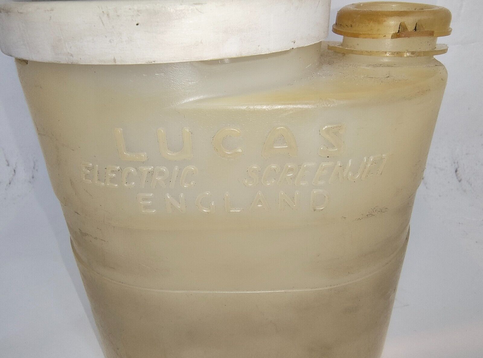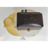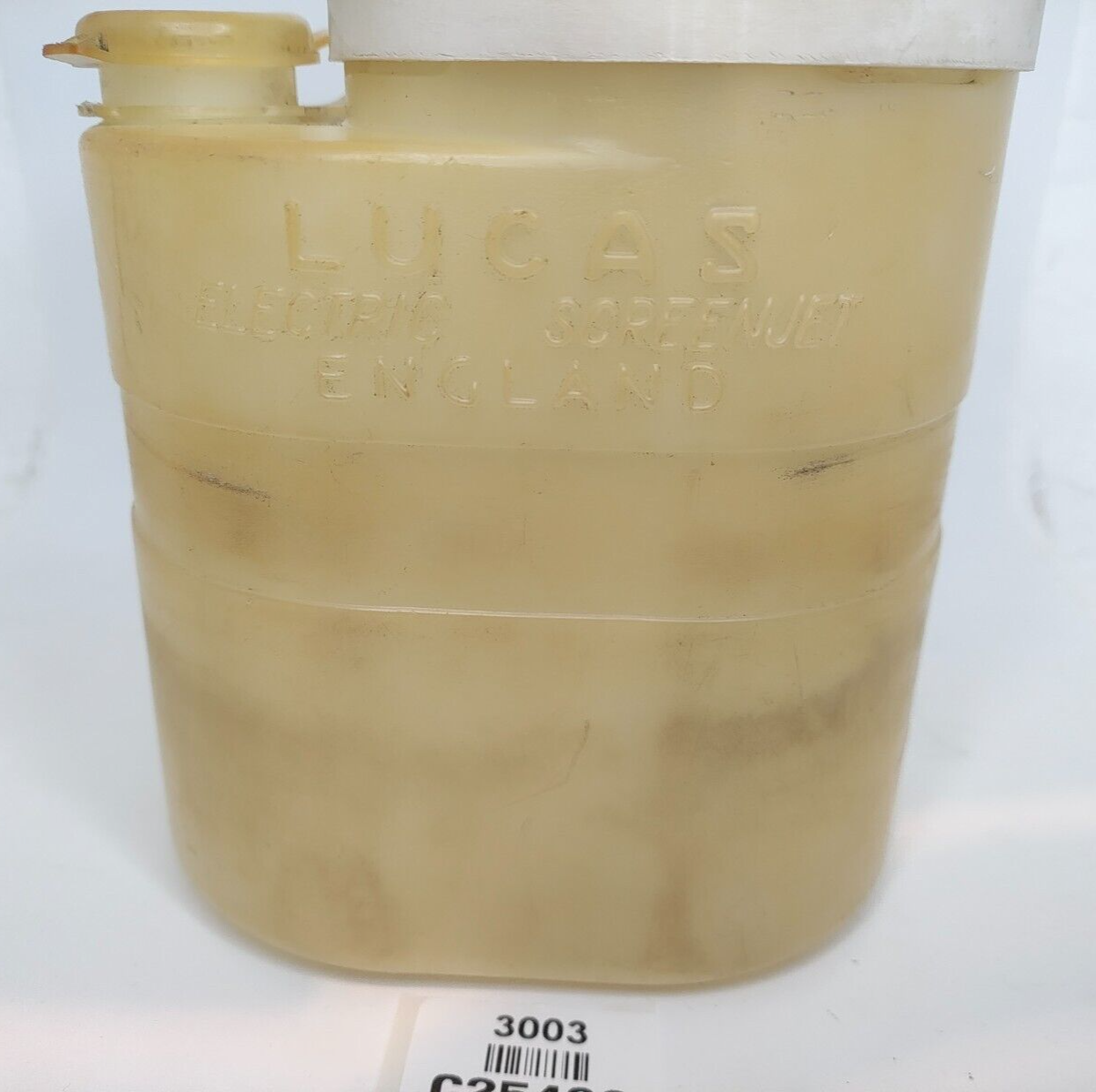 Lucas 5SJ  Wiper Washer Bottle & Pump Assembly including cap, Used C25438. This bottle has been tested and it pumps a good stream of water. To Suit Triumph Dolomite & Dolomite Sprint, Spitfire, TR5 & TR6, Daimler & Jaguar E Type S1, Jaguar S Type Mk2 420, Ford Escort MK 1 and MK2. Please see photo(s) - they form part of the description.