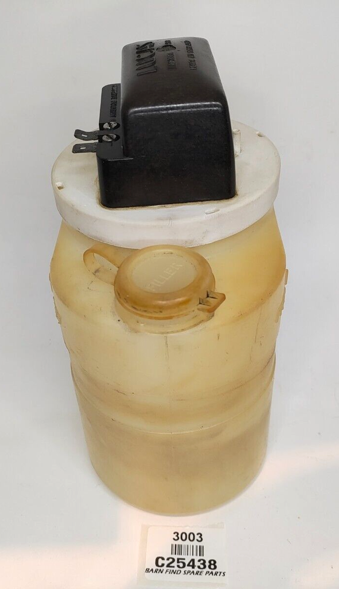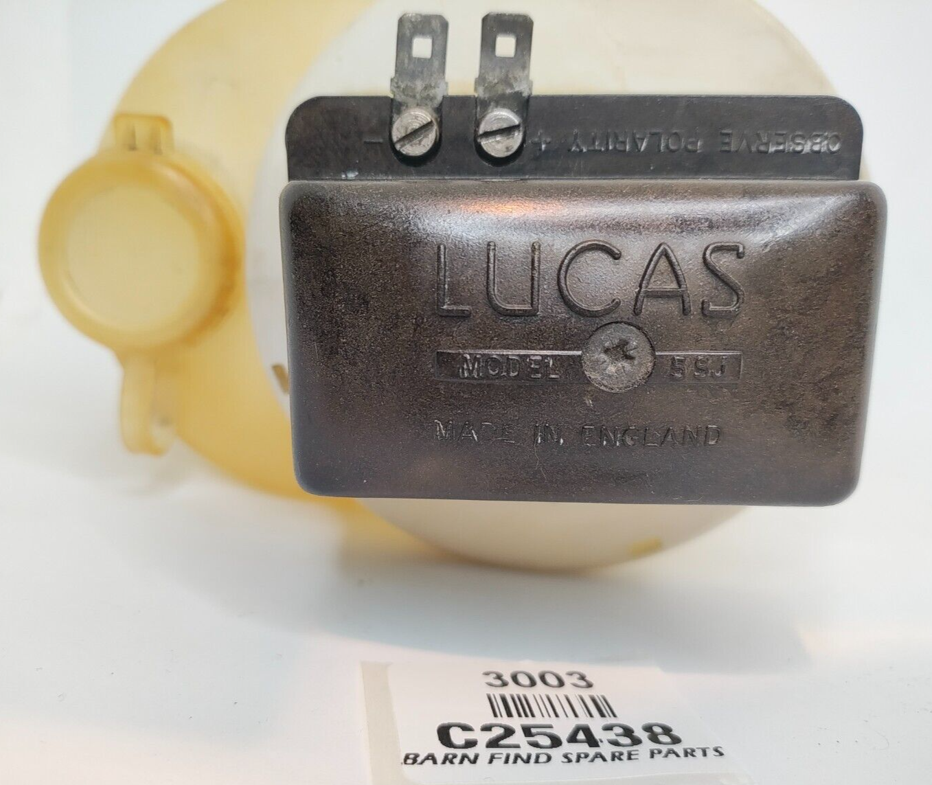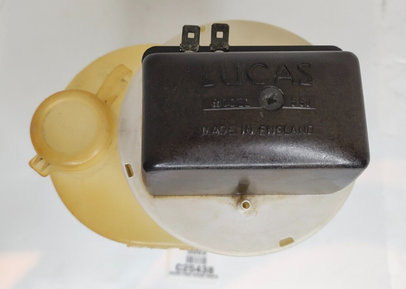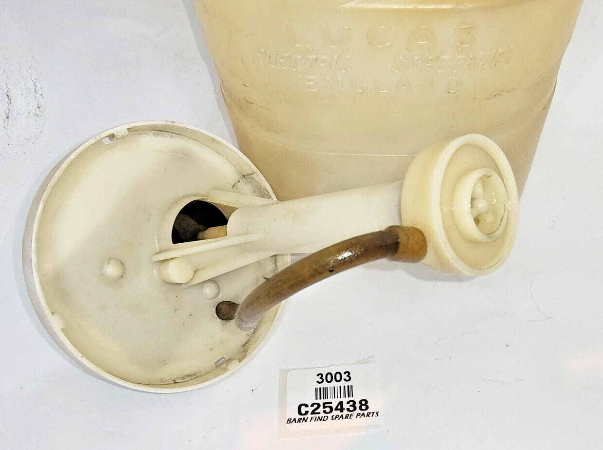 Lucas 5SJ  Wiper Washer Bottle & Pump Assembly including cap, Used C25438. This bottle has been tested and it pumps a good stream of water. To Suit Triumph Dolomite & Dolomite Sprint, Spitfire, TR5 & TR6, Daimler & Jaguar E Type S1, Jaguar S Type Mk2 420, Ford Escort MK 1 and MK2. Please see photo(s) - they form part of the description.