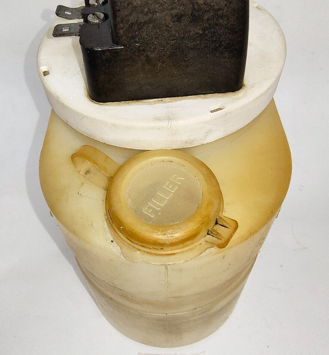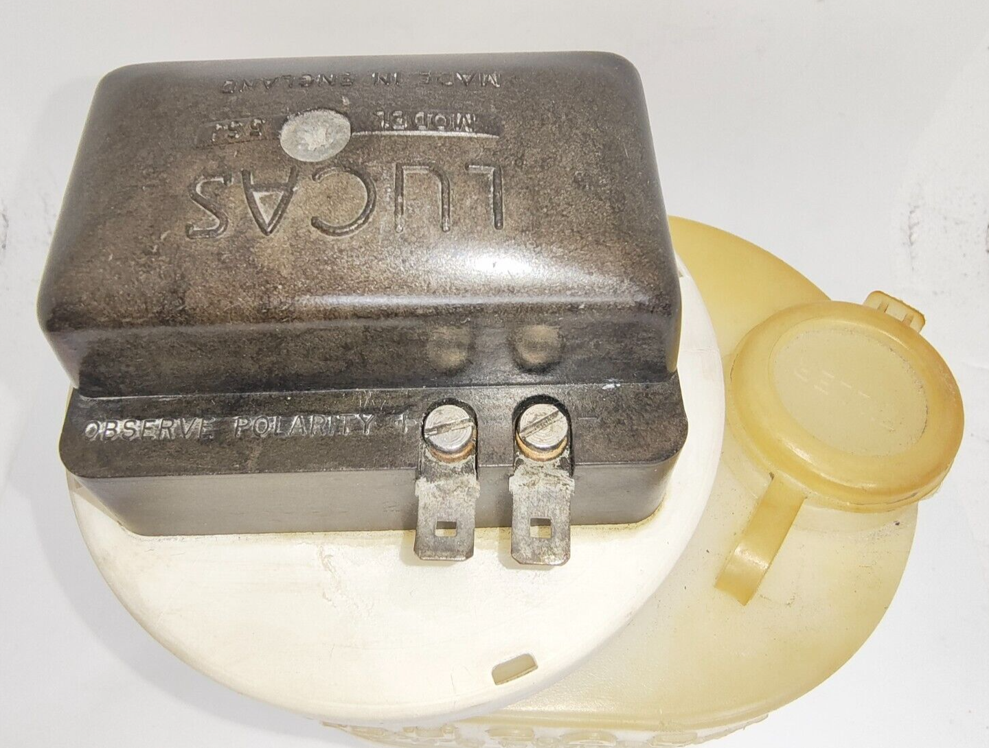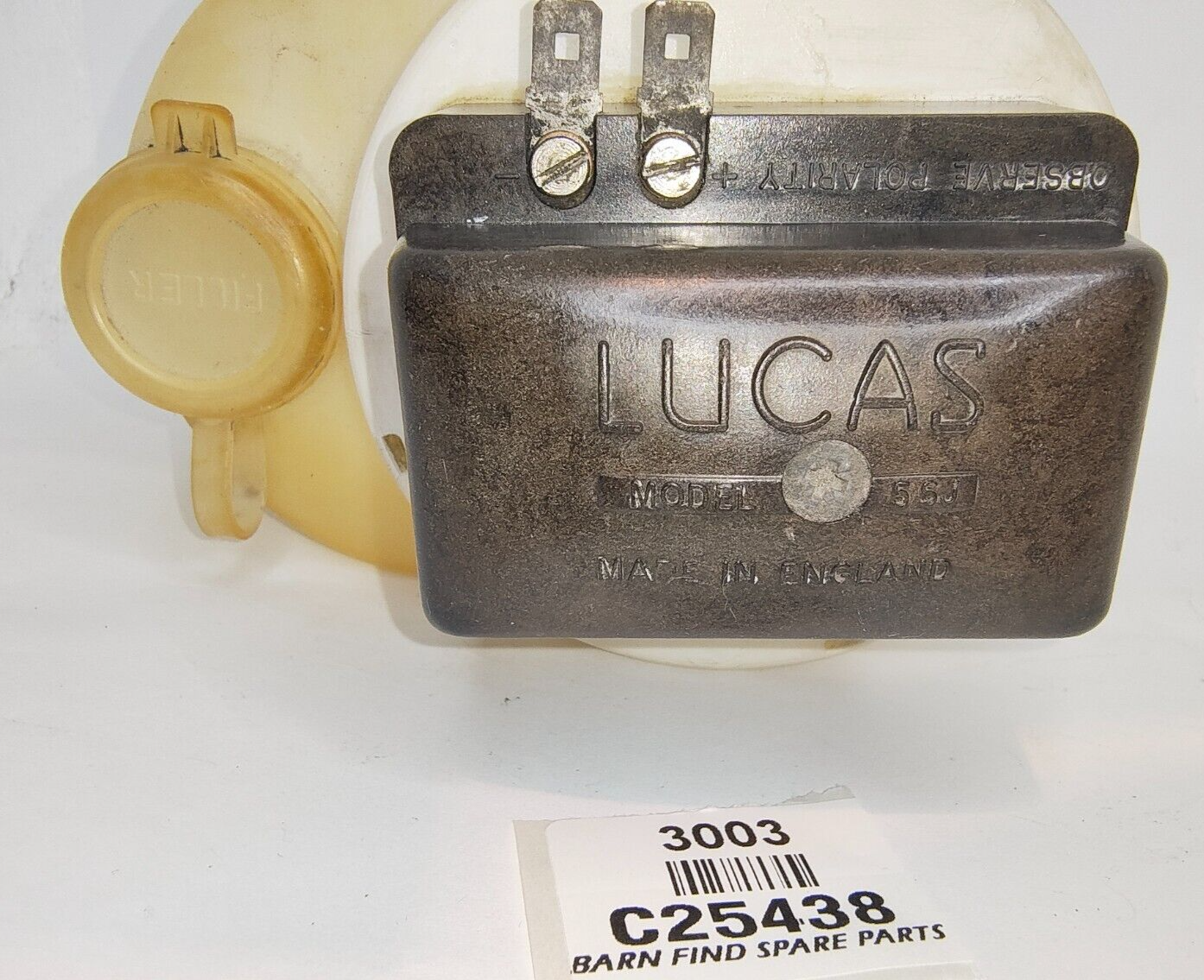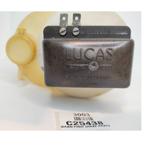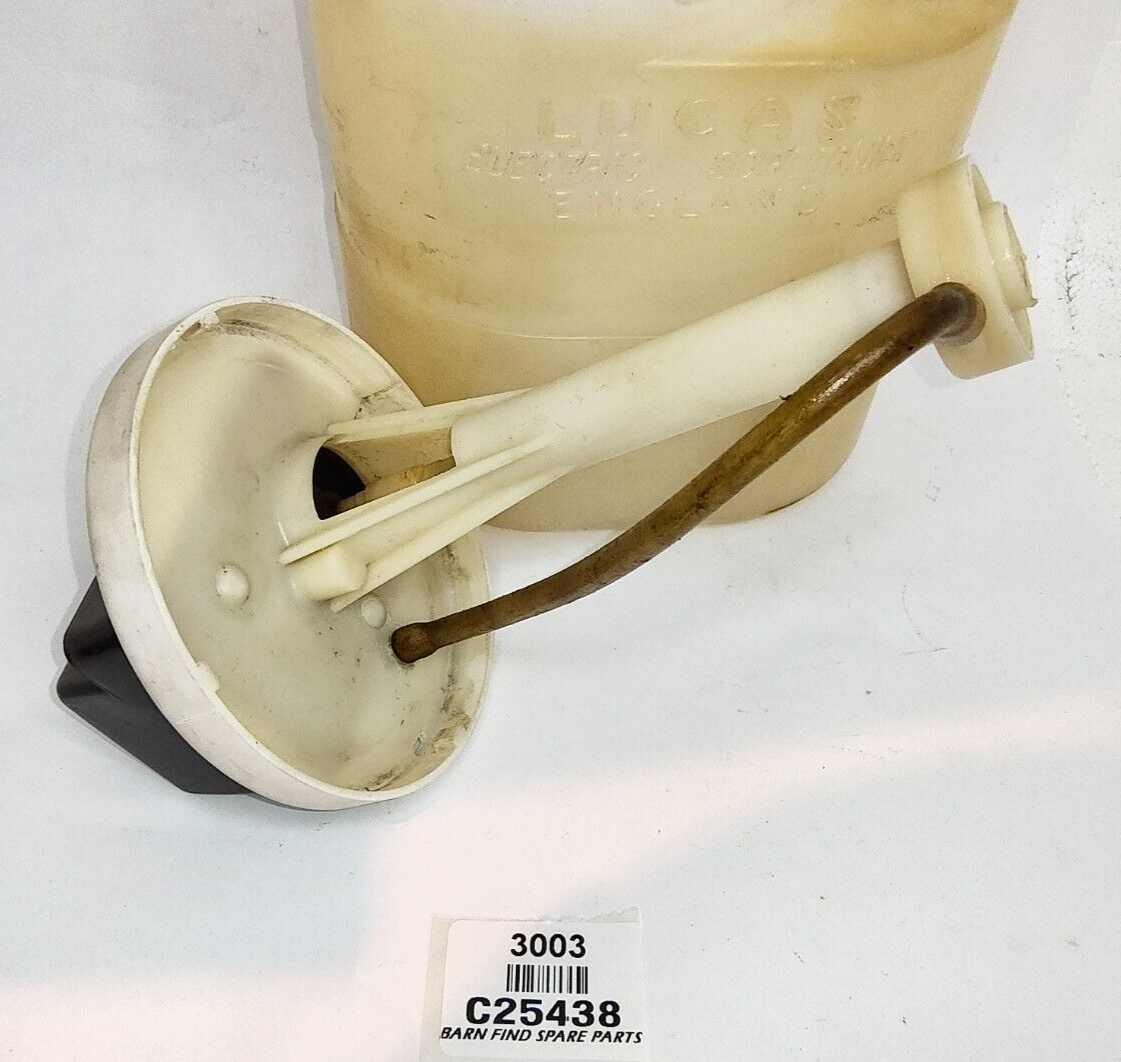 Lucas 5SJ  Wiper Washer Bottle & Pump Assembly including cap, Used C25438. This bottle has been tested and it pumps a good stream of water. To Suit Triumph Dolomite & Dolomite Sprint, Spitfire, TR5 & TR6, Daimler & Jaguar E Type S1, Jaguar S Type Mk2 420, Ford Escort MK 1 and MK2. Please see photo(s) - they form part of the description.