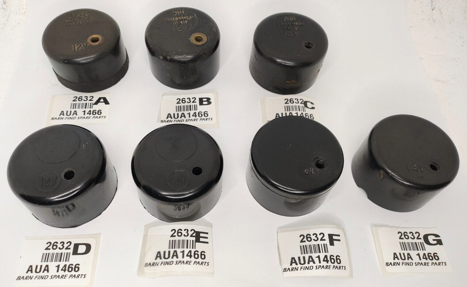 CAP COVER - black, early SU fuel pump AUA1466 AUA 1466. Sold individually - all slightly different, caps A B and C look older and are probably bakelite or early plastic.  Cap G has had a small opening cut into the base. Please indicate which item (s) you prefer.  Please see photo(s) - they form part of the description.