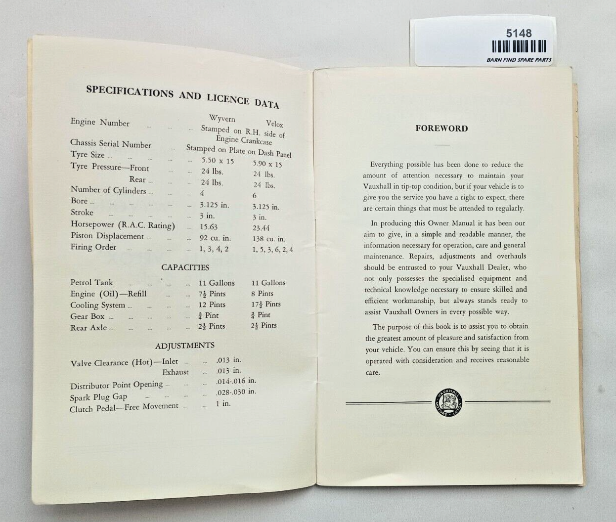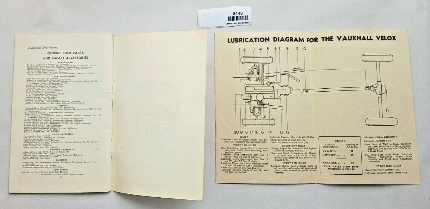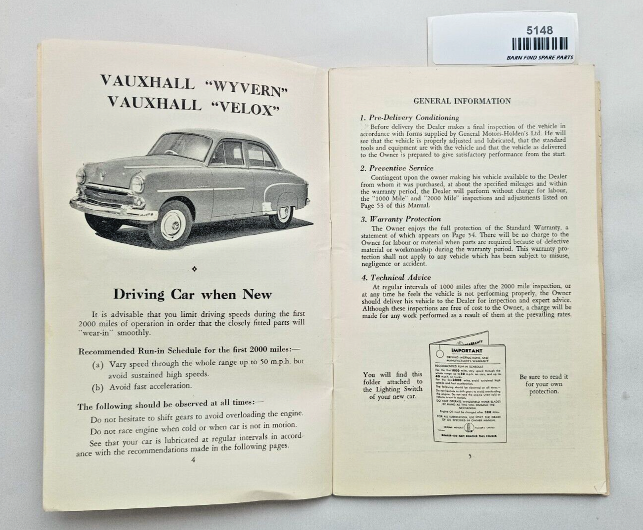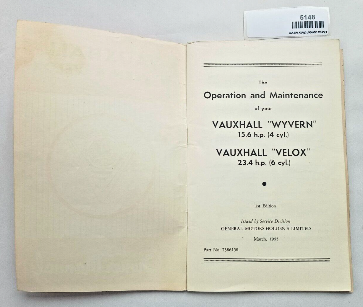 GMH Vauxhall Wyvern & Velox Owner Manual 1955 General Motors-Holden's Ltd.  March 1955 first edition.  56 pages and separate lubrication sheet. Please see photo(s) - they form part of the description.