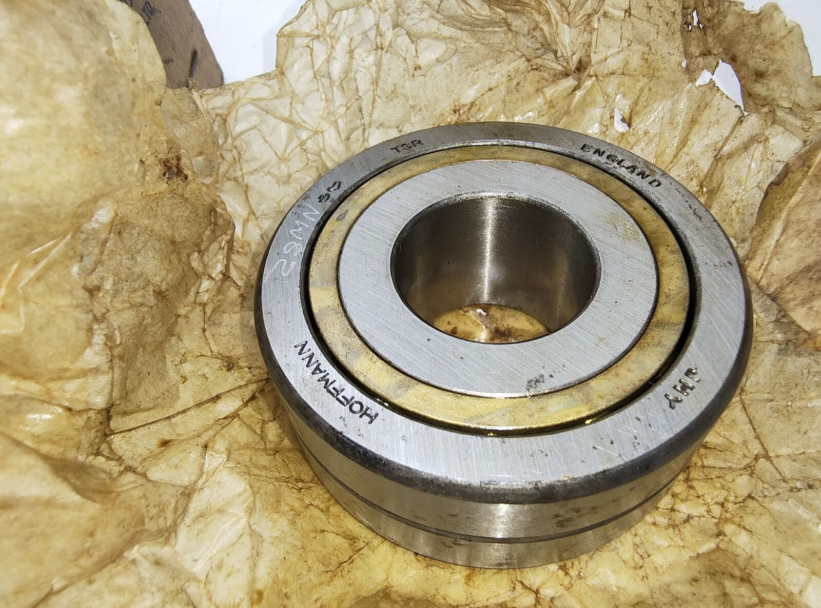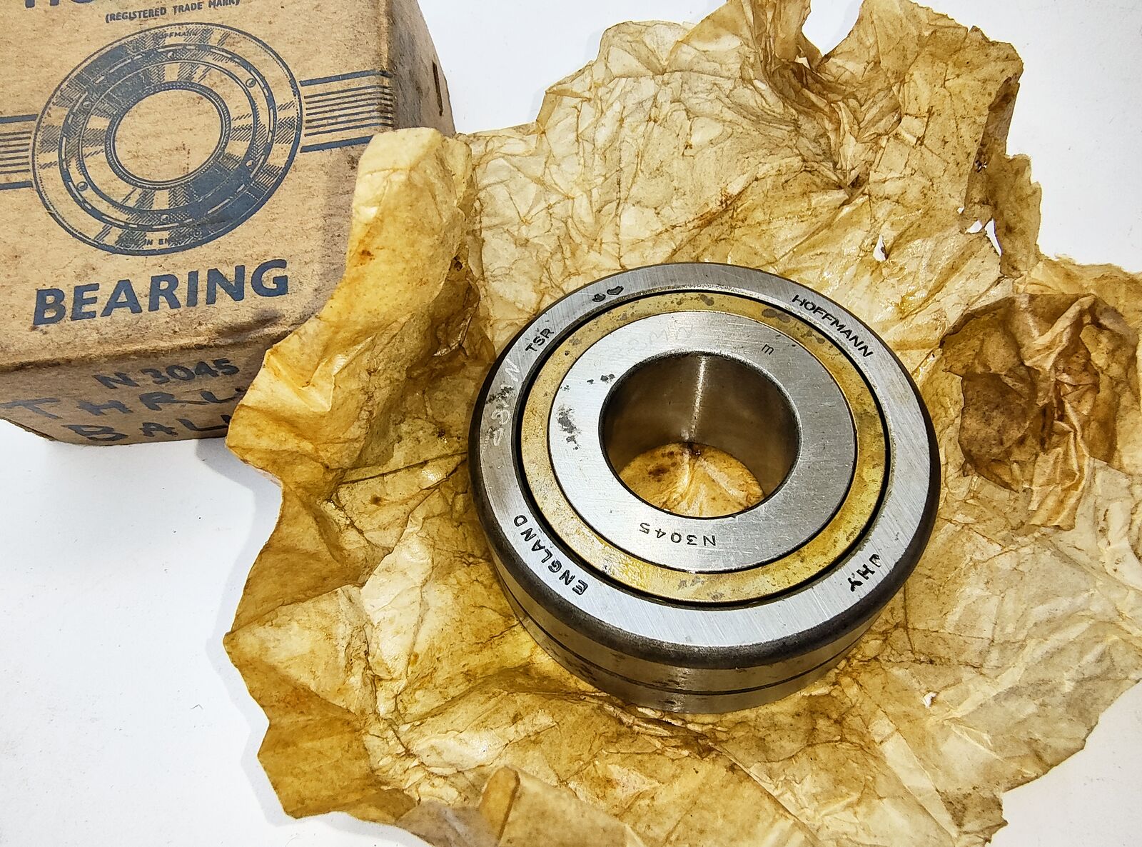 Hoffmann Thrust Ball Bearing, New Old Stock N3045, in original packaging. Dimensions ID 25mm, OD 62mm, Width 25mm.