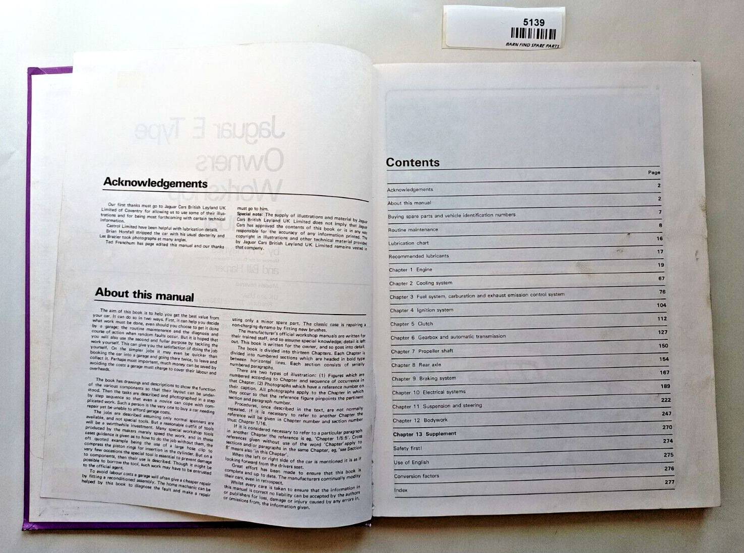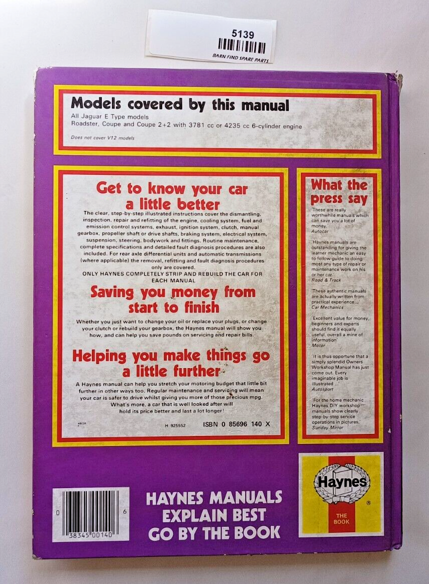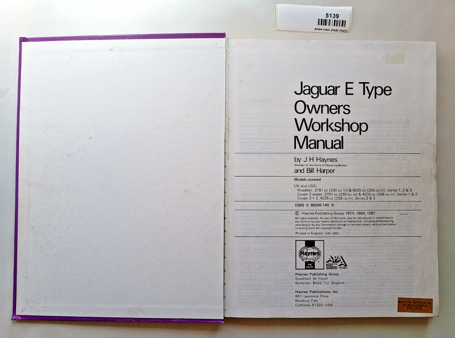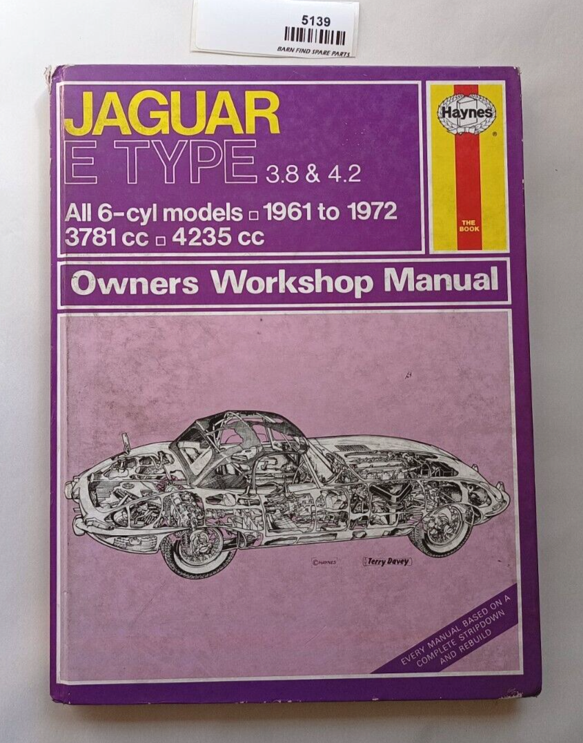 Jaguar E TYPE 3.8 and 4.2  All 6 Cylinder models. 1961 to 1972. 3781cc 4235cc  Owners workshop manual.  Haynes Publication 1987 hard cover version. Please see photo(s) - they form part of the description.