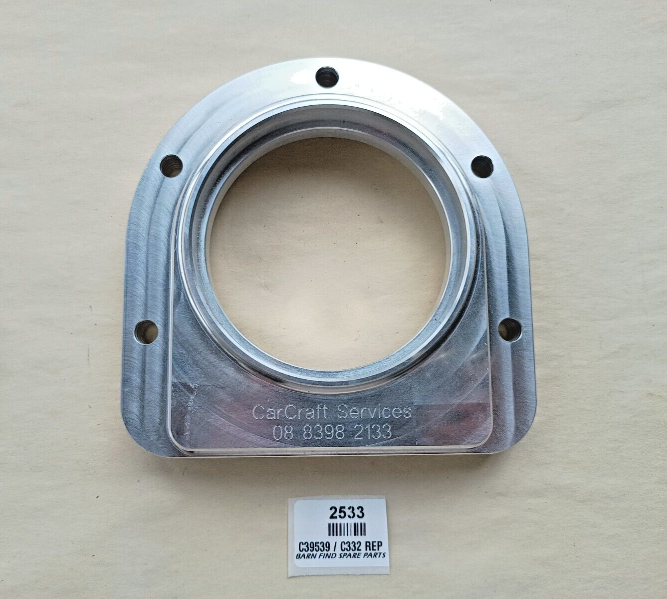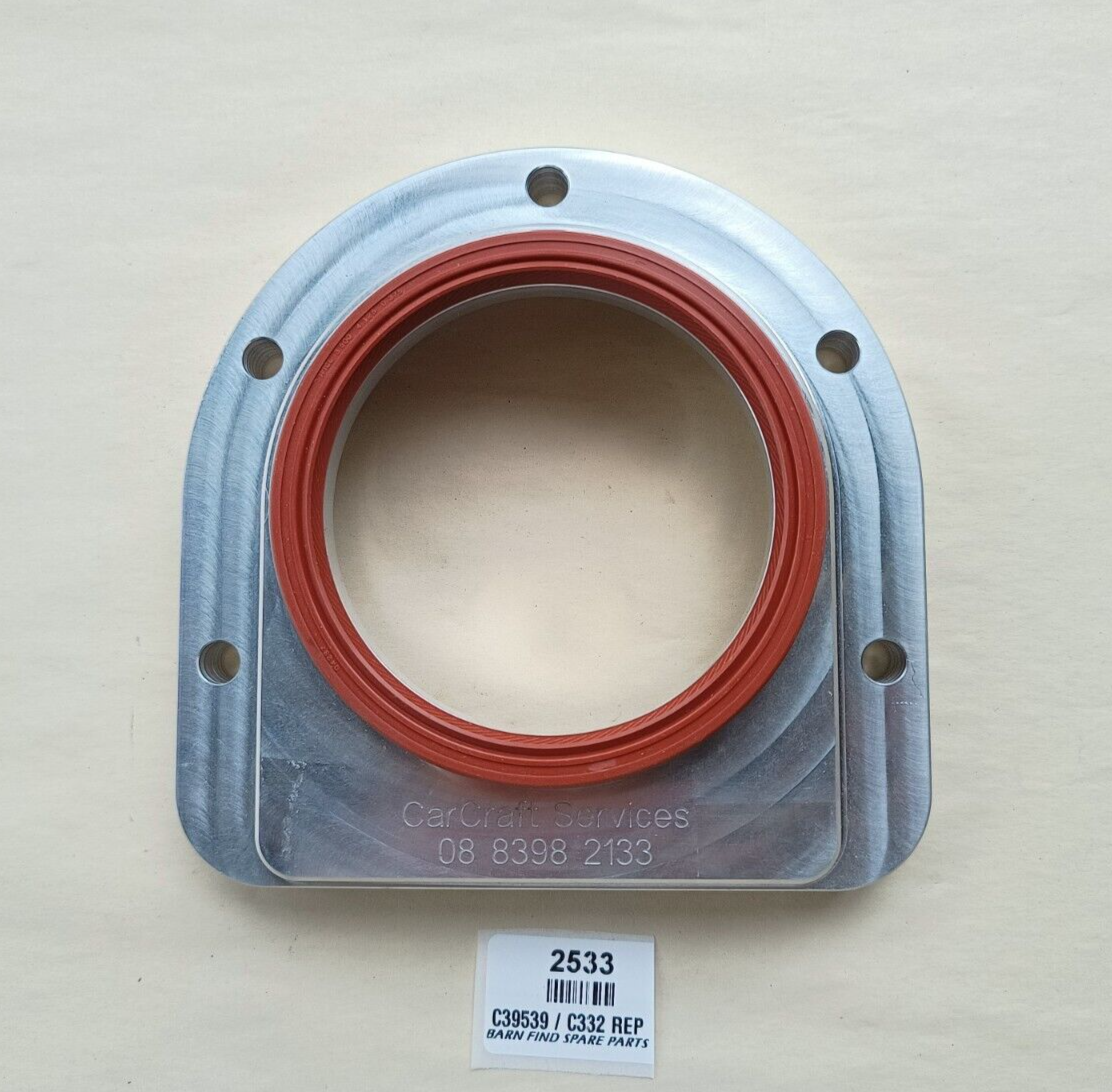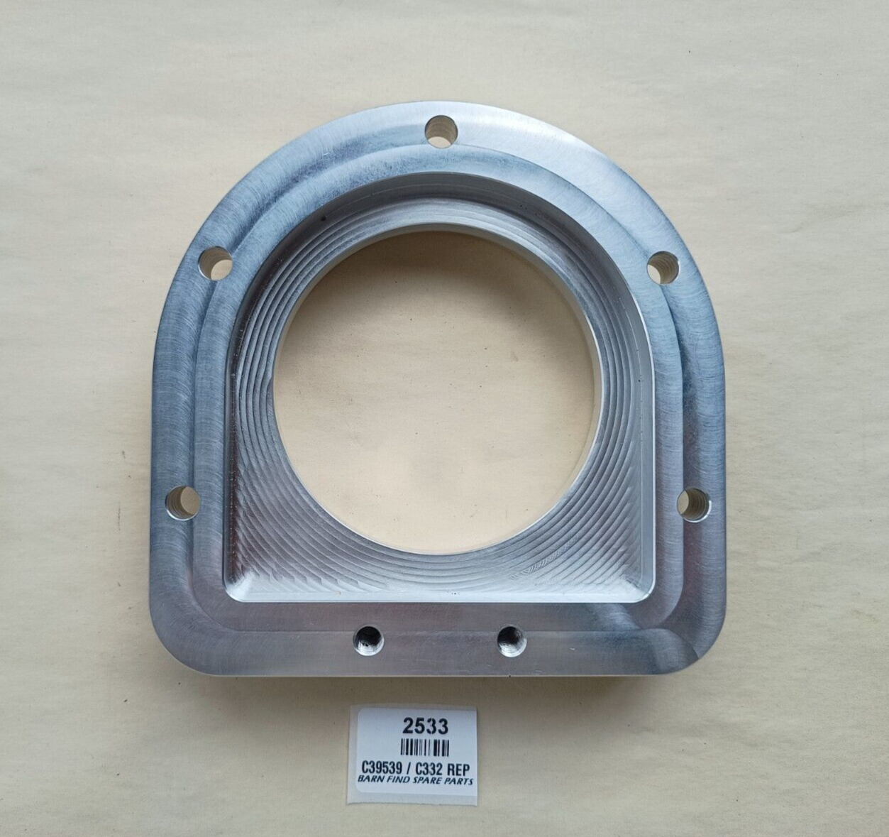 Jaguar Oil Retaining Cover modern replacement for original C39539. C332 REP. This part was designed to take a modern seal and fitted in place of the crankshaft rear rope seal as fitted using the Original Oil Retaining Cover C39539 to the engine block.  This part was designed to take a modern 98.5mm 3.878 inch Outer Diameter Seal. To Suit Jaguar 3.5, 2.5 and 1.5 Litre Over Head Valve engines as fitted to Jaguar SS Mark 4 and Mark 5 Jaguar cars. This is a very nicely machined modern new product, engraved CarCraft Services who commissioned the manufacture (CarCraft services no longer operate). The inner diameter size of the seal will be dependant on your cranks size of the oil spiral journal.  PLEASE NOTE: The modern red rear main seal pictured DOES NOT come with this holder, the seal is shown for descriptive purposes.  New Old Stock - Please see photos as they form part of the description.