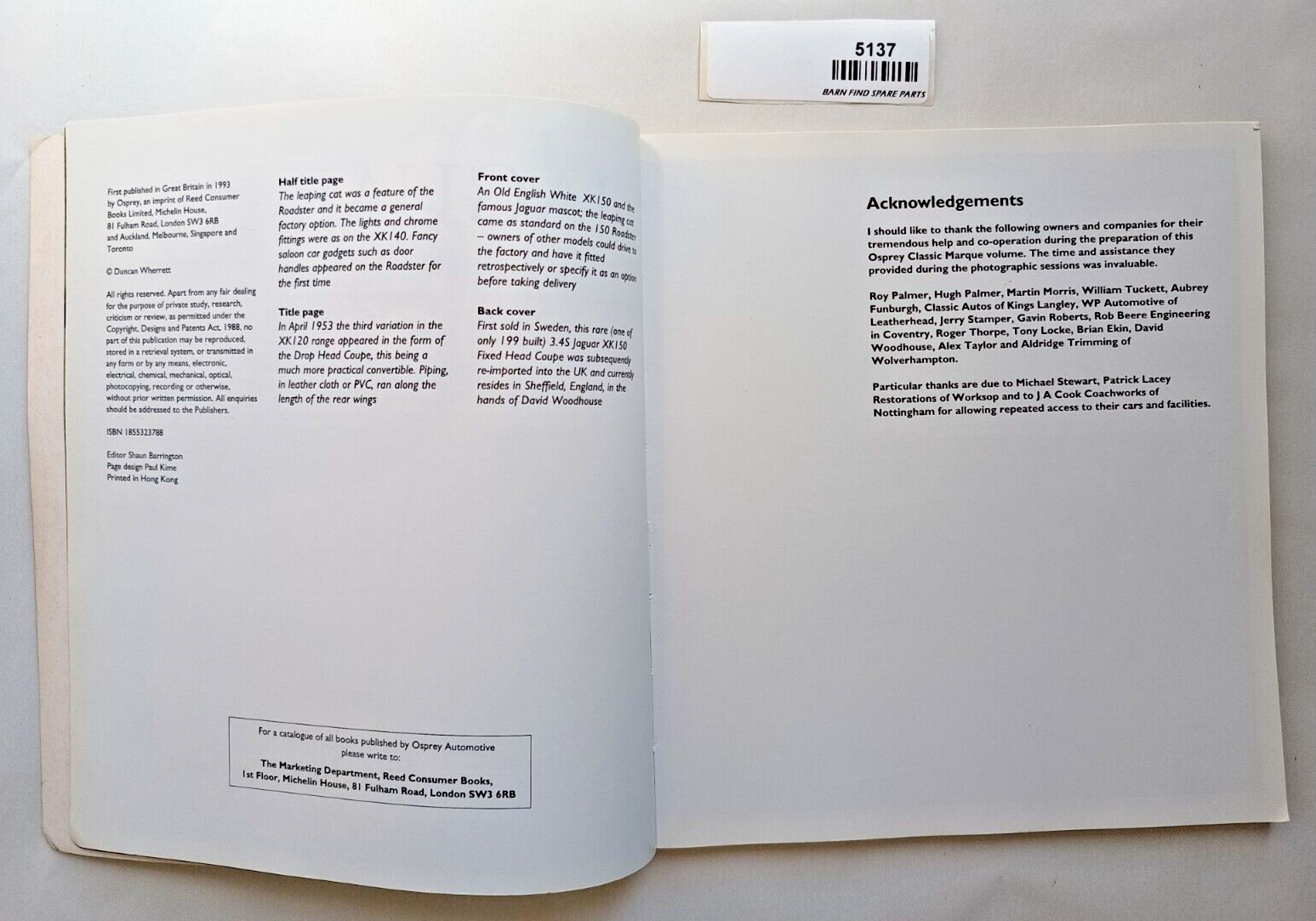 Jaguar XK 120 140 150 by Duncan Wherrett. Soft cover full colour book. 128 pages.  1993 edition. Please see photo(s) - they form part of the description.