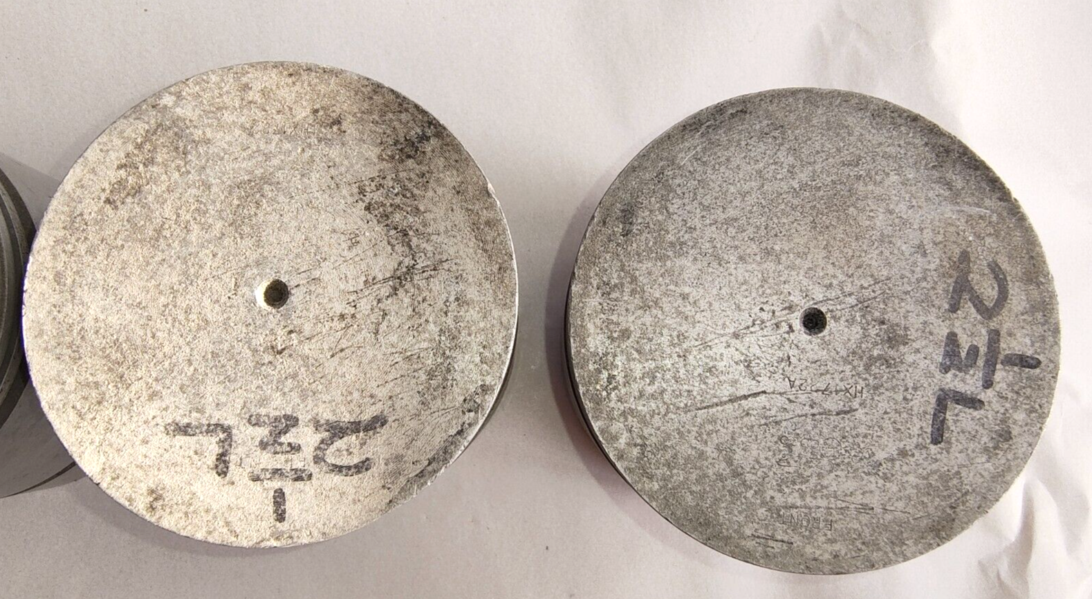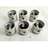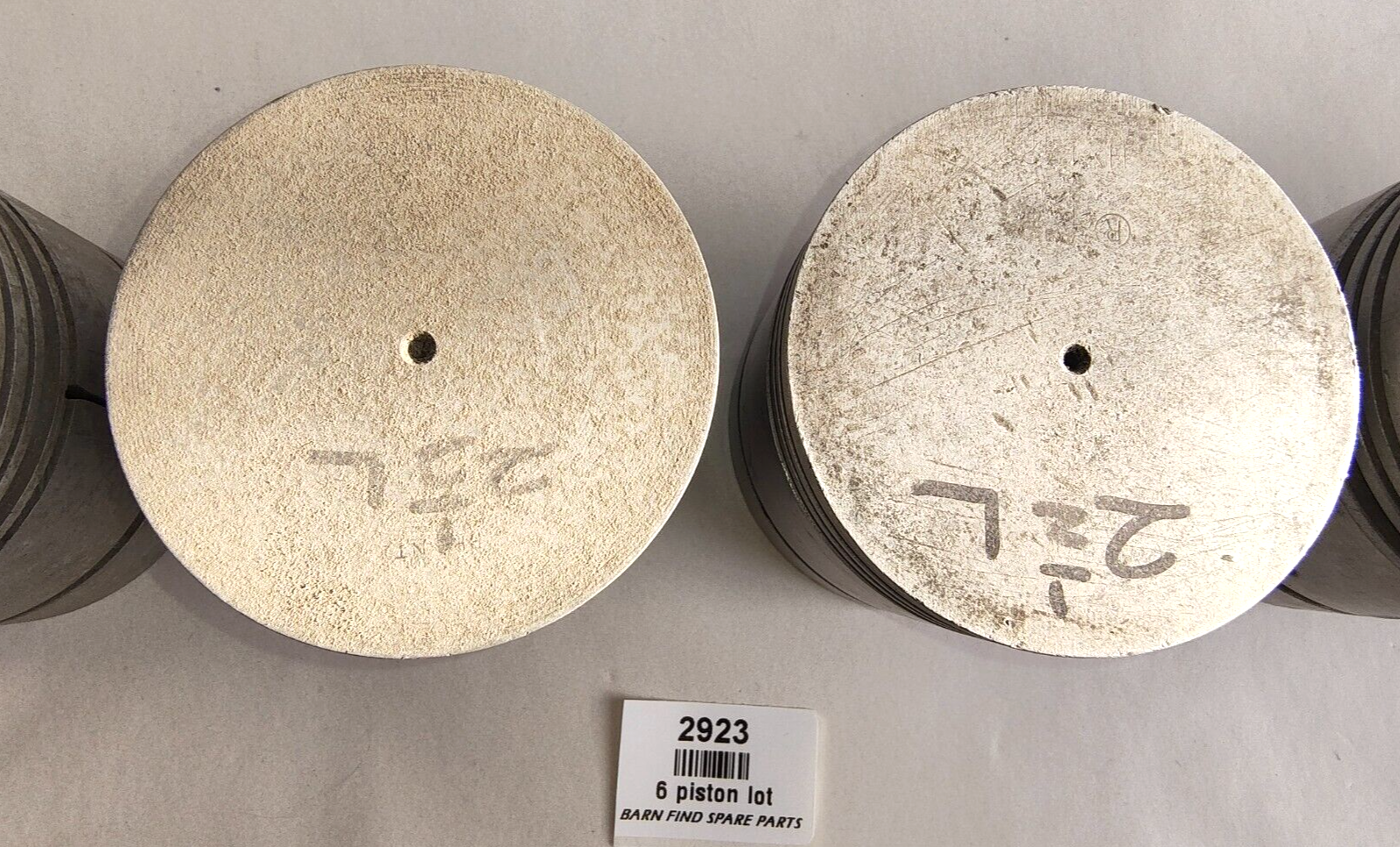 Jaguar 2.5 2 1/2 litre (2664 cc)  Bore 73mm standard. This lot of 6 pistons size 73.53mm 0.20" oversize. 4 x HX1722 Repco weighing 398 grams 1 has no gudgeon. 2 x WS244 Weslite weighing 430 grams. Please see photo(s) - they form part of the description.