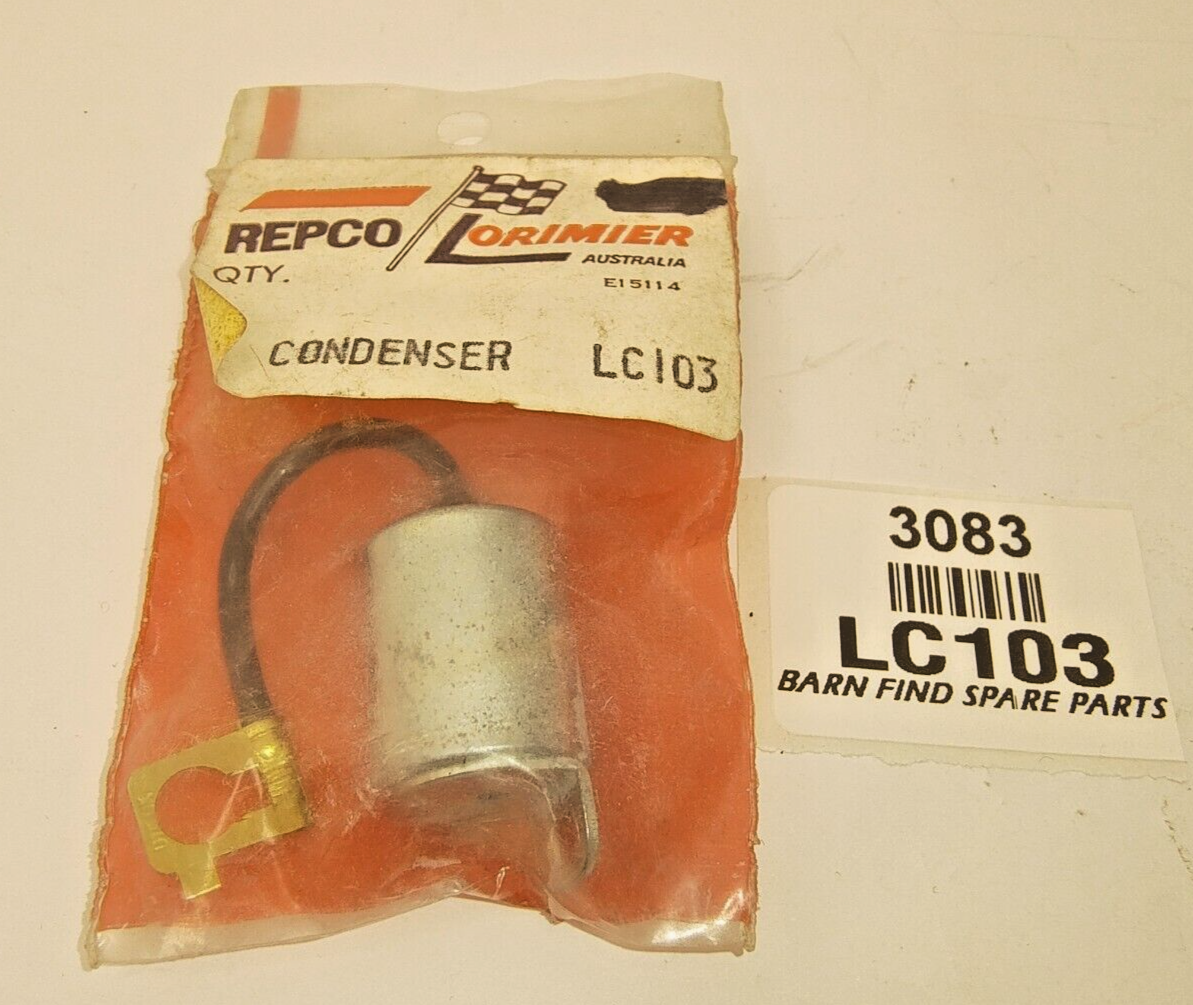 Repco Lorimier New Old Stock Condenser in Original Packaging, LC103. To Suit many vehicles including Landrover, Holden, MG, Jaguar, Morris, Ford, Toyota, Austin Morris models. Please see photo(s) - they form part of the description.