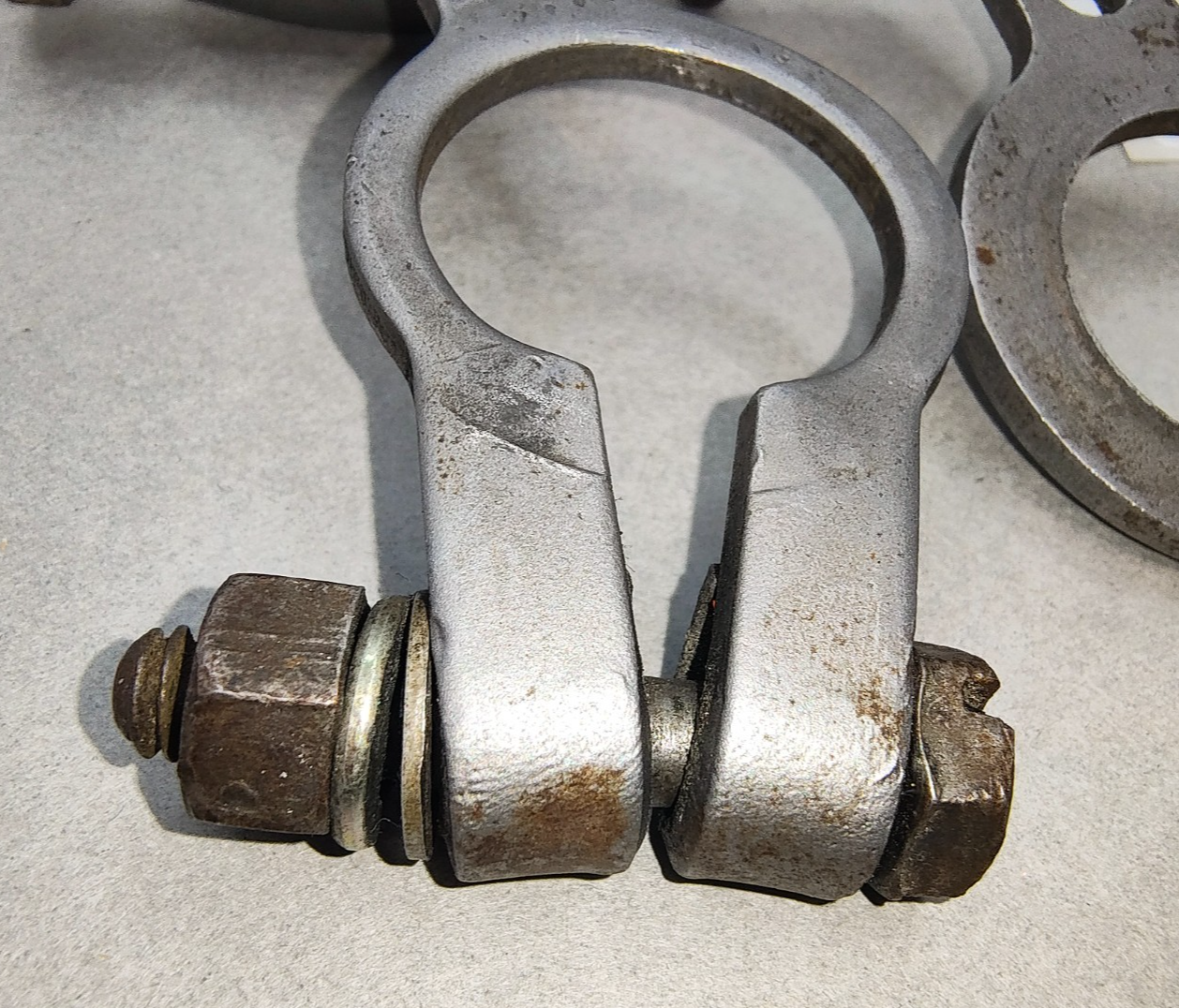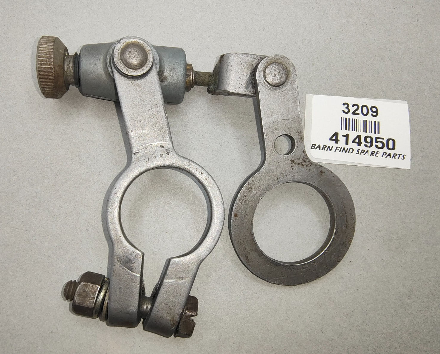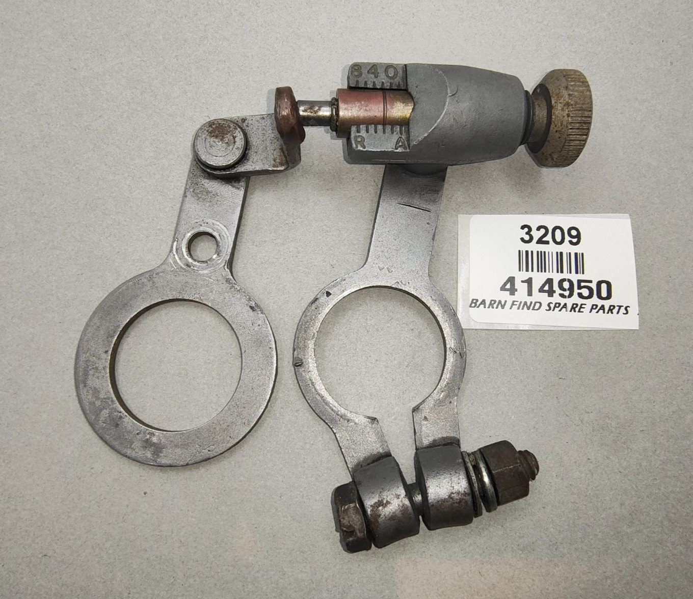 Lucas original very good used condition distributor clamping plate - incorporating ignition timing advance and retard micro adjuster, 414950. To suit Lucas distributor model and part numbers. DXH6A 40092A, 40092B/E, 40093A, 40093B/D. As fitted to Jaguar 1947 2 1/2 and 3 1/2 Litre  early Mark 5. the micro nut turns positively and cleanly throughout the advance /retard range.  Please see photo(s) - they form part of the description.