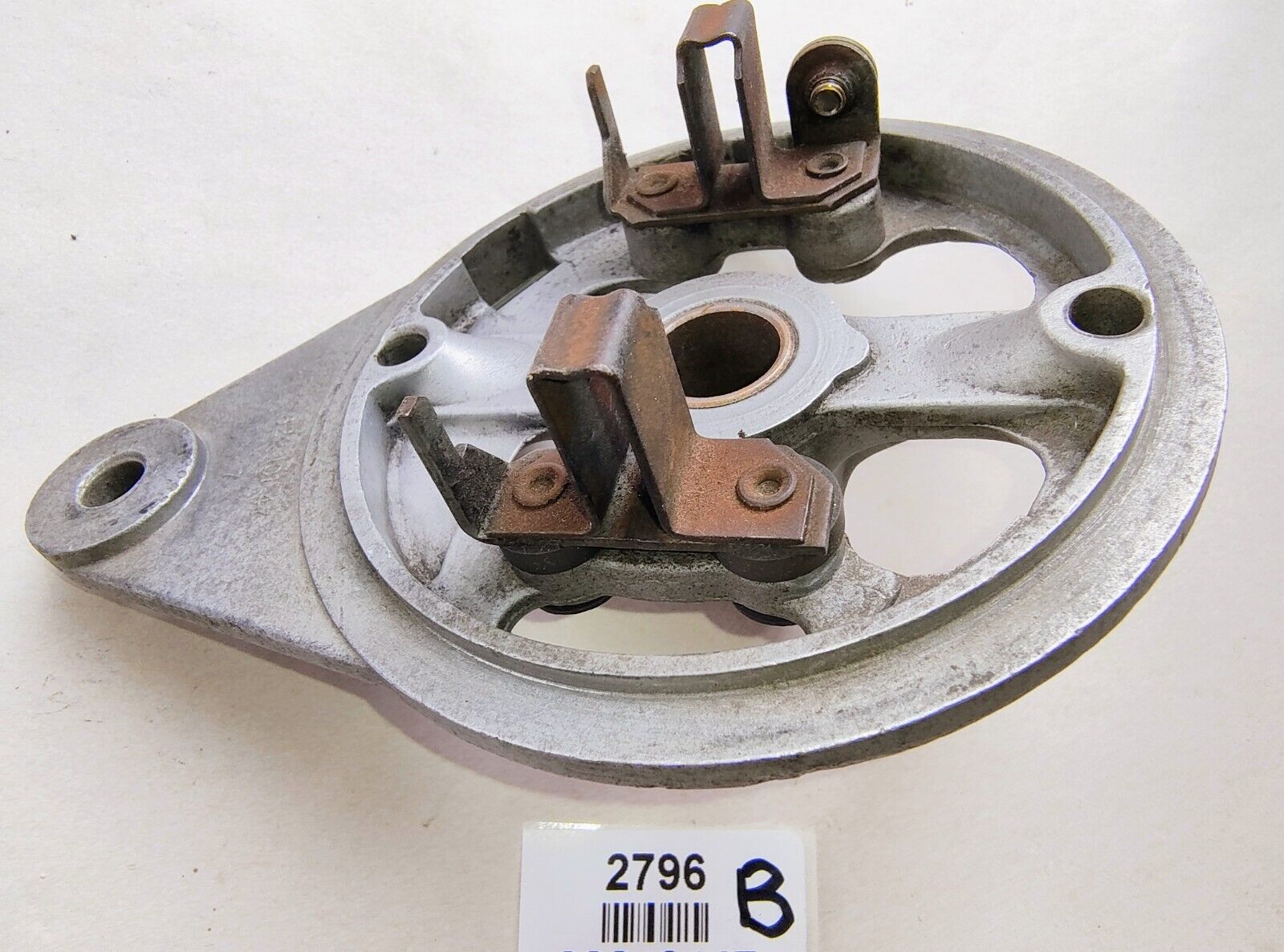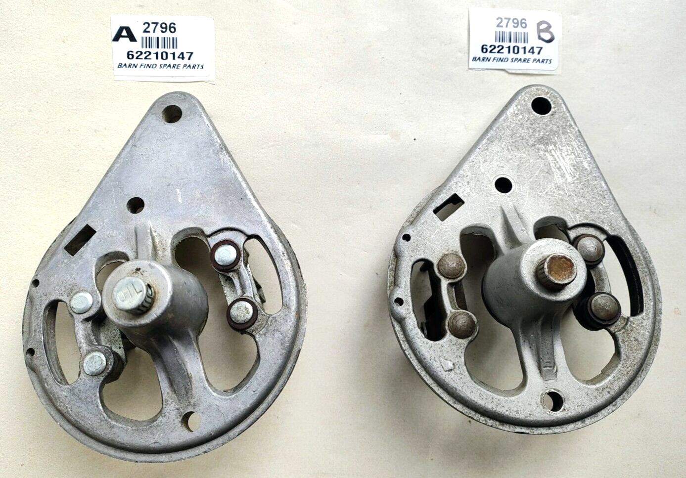 Lucas Generator Commutator Plate both Plates are in Good  Used Condition, 62210147 , both plates have the open/close style oil opening for the bronze bush lubrication as opposed to just an oil hole. The brush holders measure  5.5mm by 18.9mm, brush depth would be approx. 18mm, perhaps for a Lucas 227541 style sized brush. Please Note The Brush holders and brush spring pole mounts are a Siamese pair with just one brush power screw. Most unusual, sold individually please choose between A or B.   To Suit Lucas Generator/Dynamo size C40, C40-1 Generators. PLEASE see photos as they form part of the description.