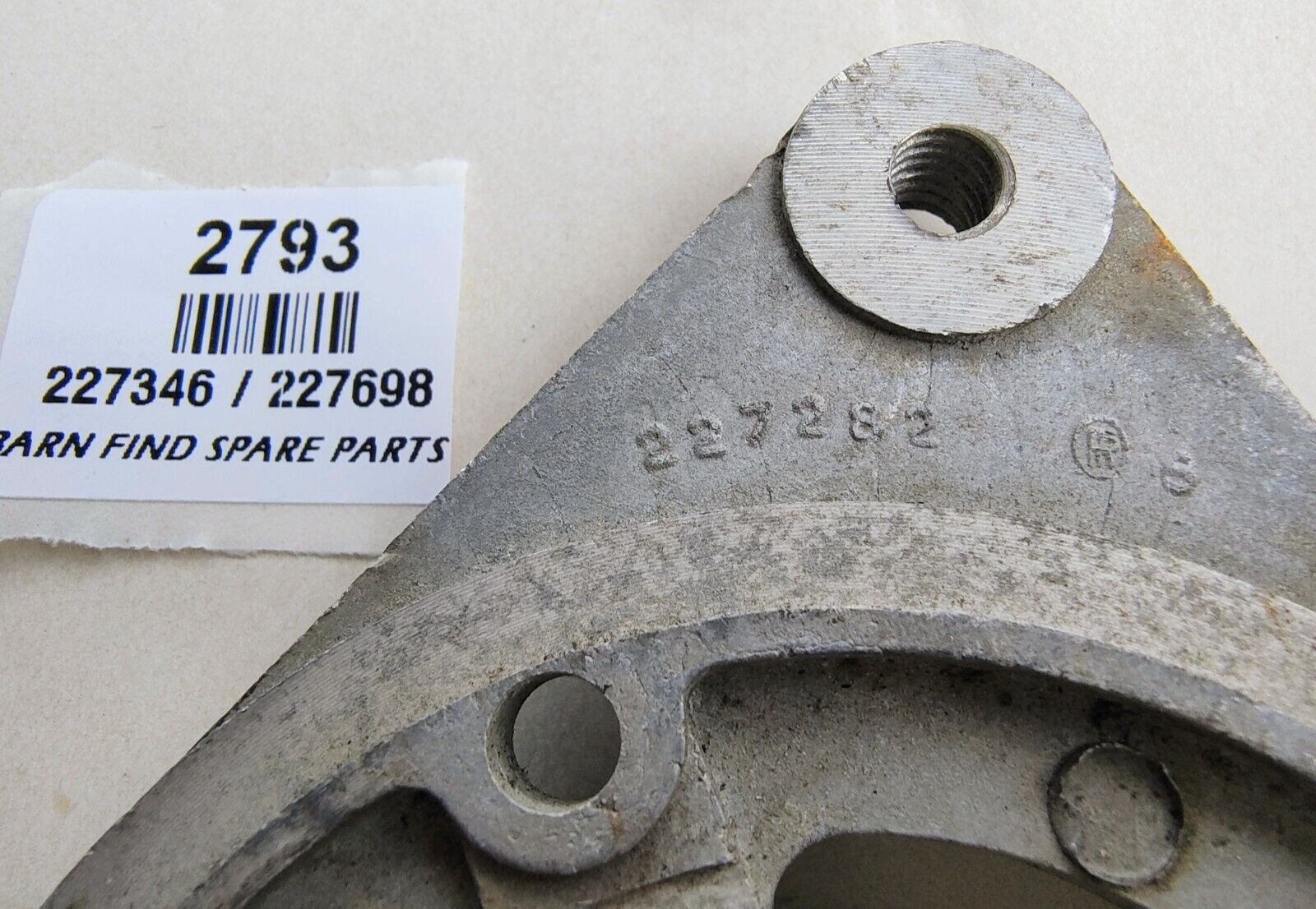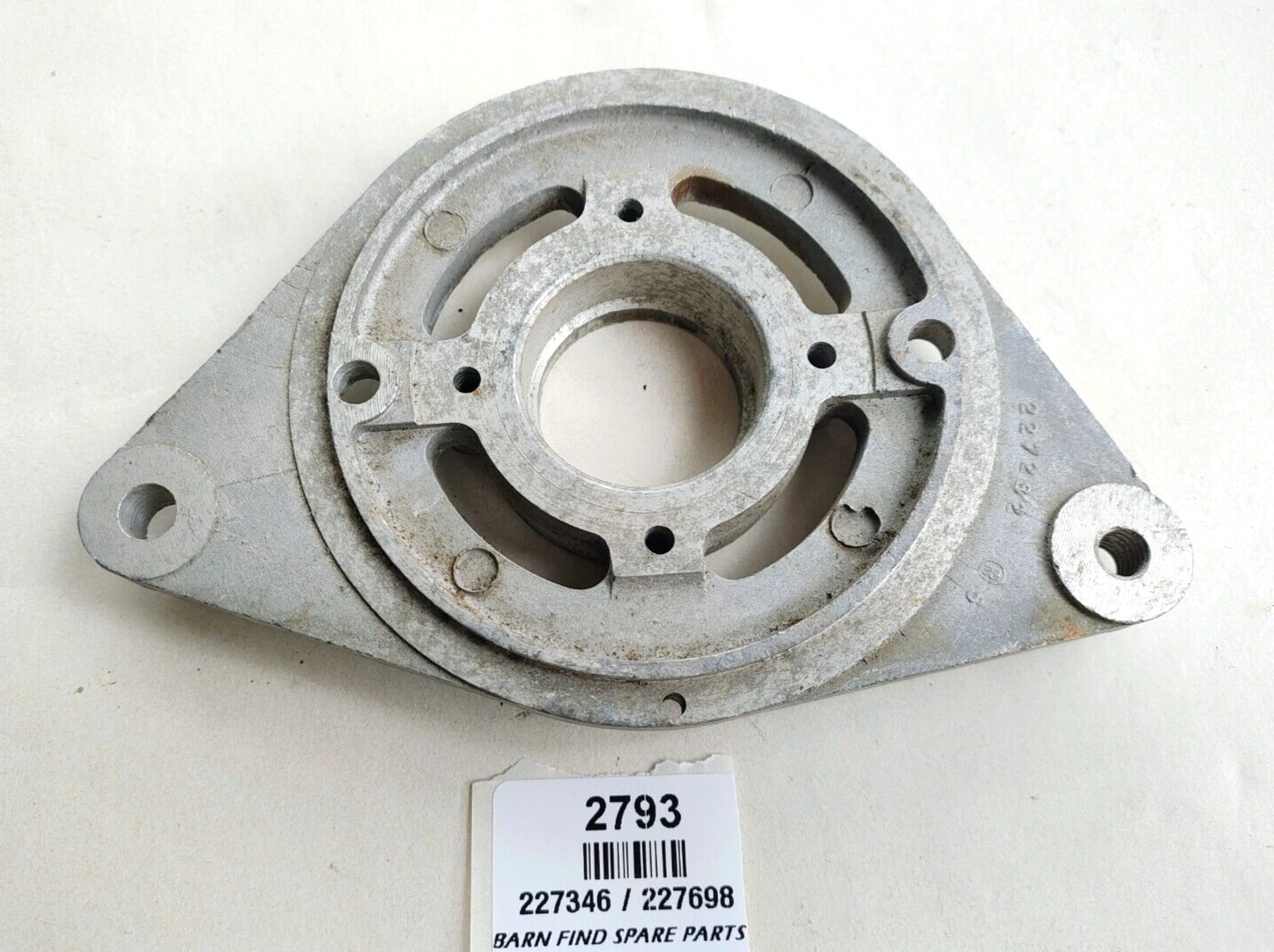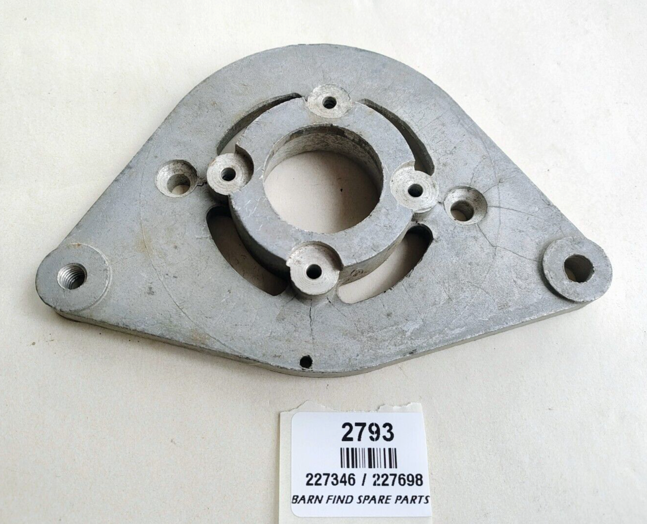 Lucas Generator Drive End Bracket, 227346 / 227698 . New Old Stock. To Suit Lucas  Model Generators with part numbers - Please note replacement part numbers shown in ( ) 227346 bracket generators followed by part numbers C39 ZV 22250A, 22251A, * 6 Volt *  C39 PV 22250E/F, 2225I E/F (22262),  22257A (22265) 22260A (22268)   227698 bracket generators C39 PV-2 22258D, 22258E/H, 22262A/B, 22262D, 22262E/H, 22265A, 22265B, 22265D/E, 22268A, 22268B, 22268D/E, 22293A, 22297A, 22299A/D, 22300A. PLEASE see photos as they form part of the description.