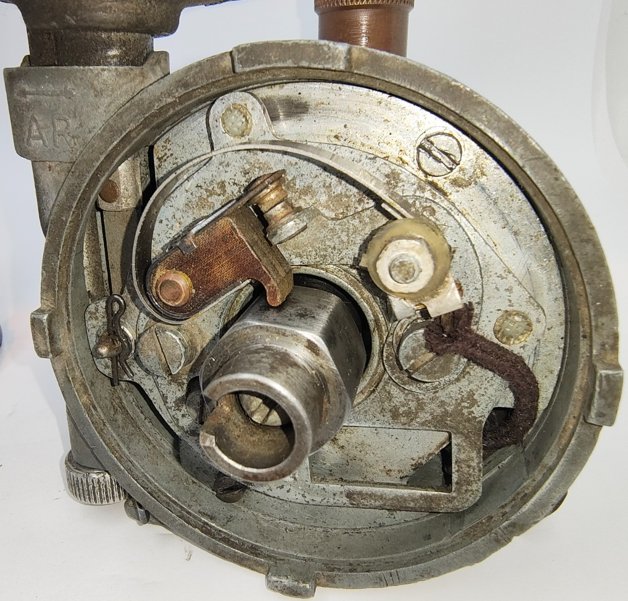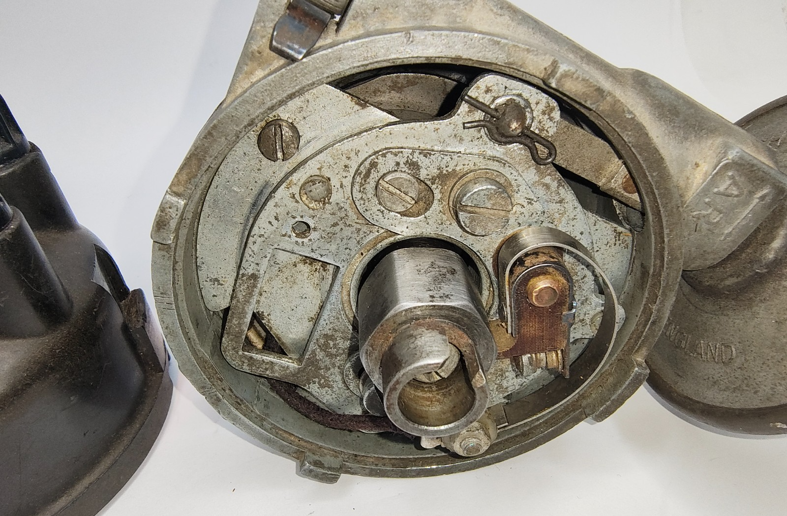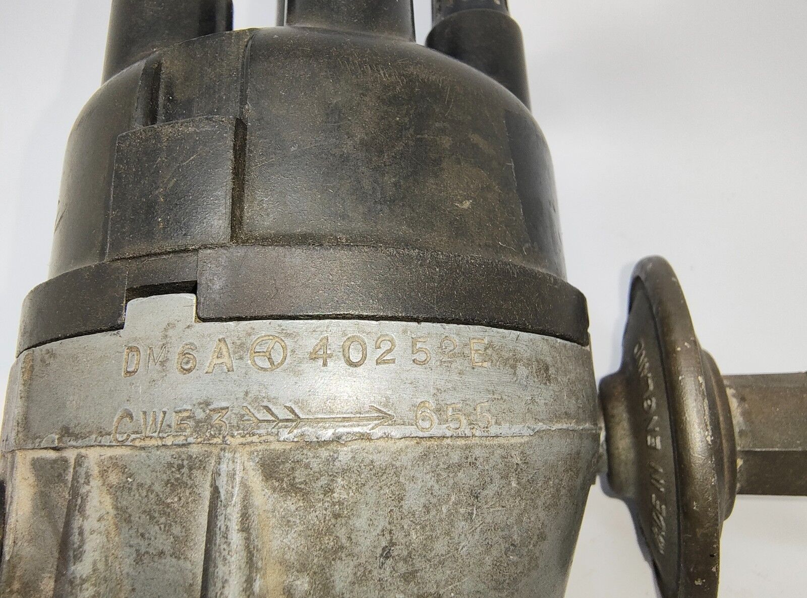 Lucas Original Used Distributor DM6A 40252 E, Type CW53 Date Stamped 6 55 (June 1955). To Suit Allard 2IZ (Zephyr 6 cylinder). This distributor is  in good used condition, comes with housing, points, cap with variety of acorn nuts, drive dog, drive shaft, working vacuum advance with micro adjuster, 6 lobe cam, lubricator  & lubricator cap, action plate moves freely.  - please see photos as they form part of the description.