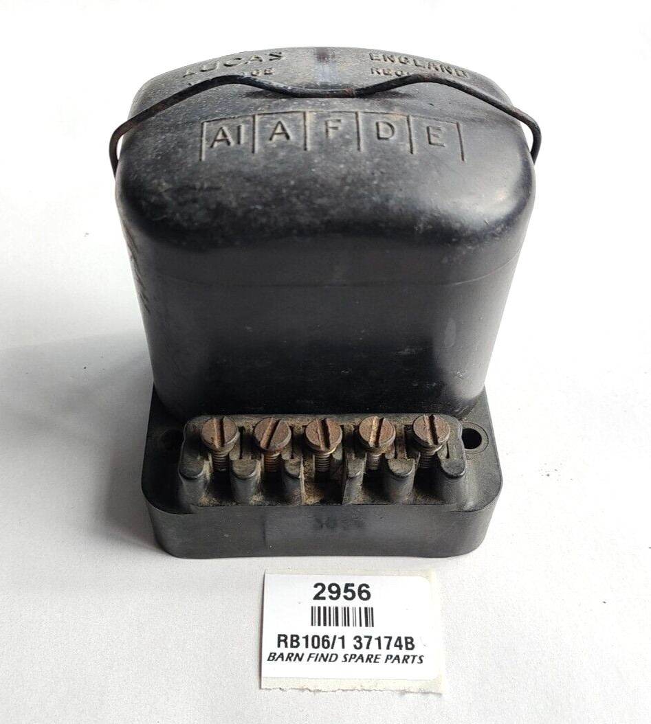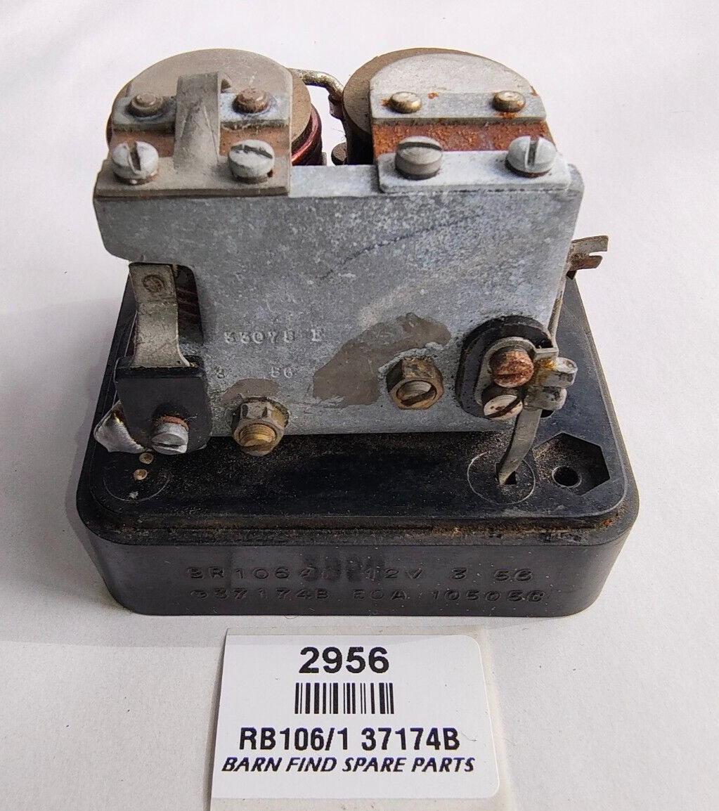 Lucas Original USED RB106-1 Regulator/Control Box, 12 Volt with screw terminals & Bakelite Lid. It has not been tested but appears in good order, Date Stamped 3 56 (March 1956) Lucas part Number 37174B  RB106-1. Also Stamped 10505C, Please see photo(s), they form part of the description.