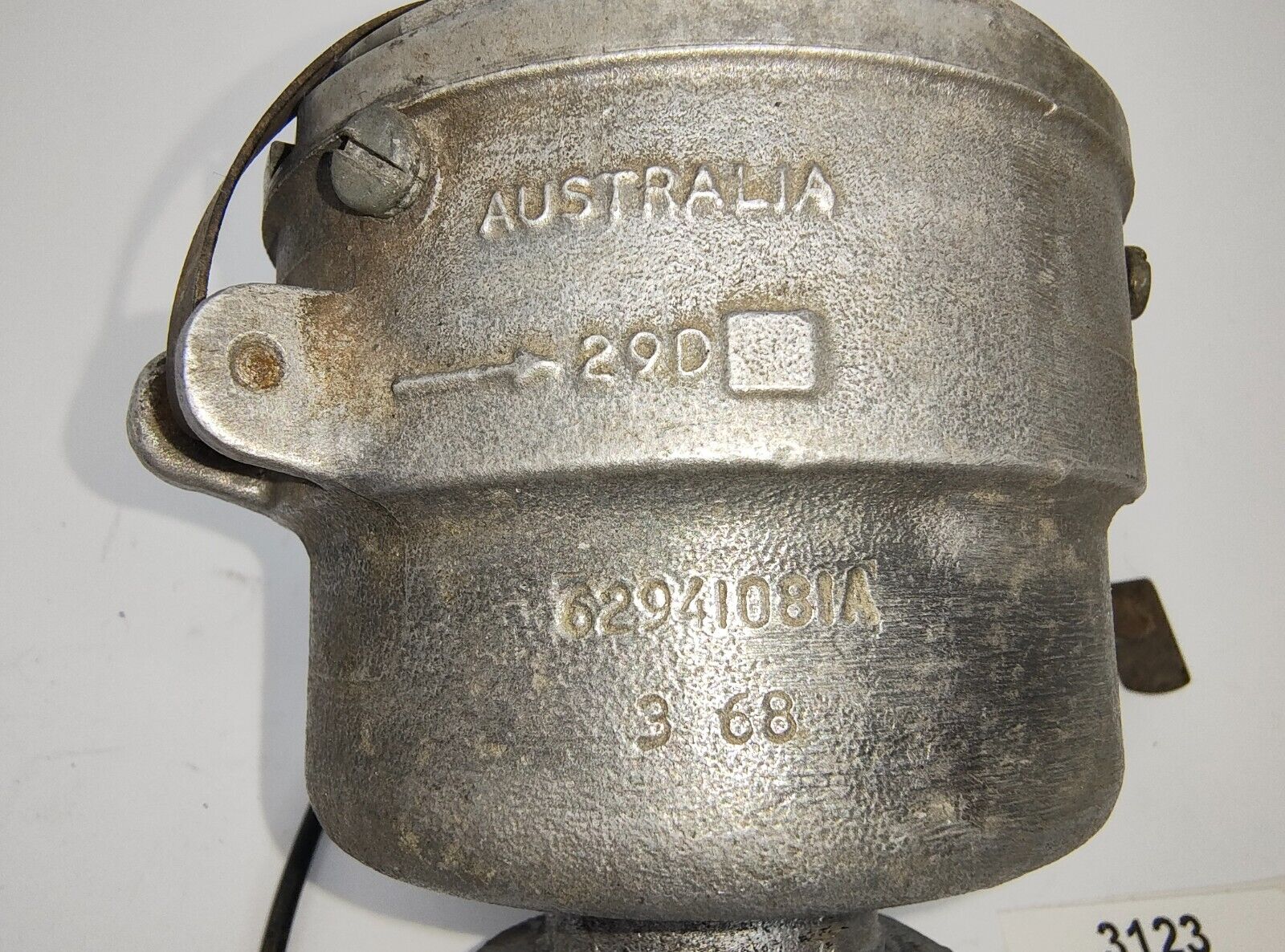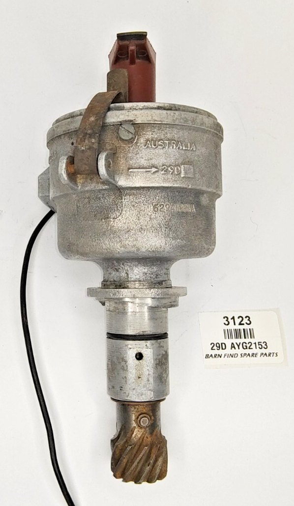 Lucas Used  Australian built 29 D 29D AYG2153  distributor 62941081A Date Stamped 3 68 (March 1968) Comes assembled with main drive shaft & cam with gear drive, action plate, weights and springs, cap clamping clips (shorter type clips), points, rotor button and condenser. The main cam shaft spins freely, there is no movement in the main drive shaft. NOTE: There is a small amount of damage to the underside of mounting collar and there is no vacuum advance mechanism . To Suit BMC models, MG, Morris, Leyland and many other makes.  Please check compatibility before committing to purchase. Please see photo(s) - they form part of the description.