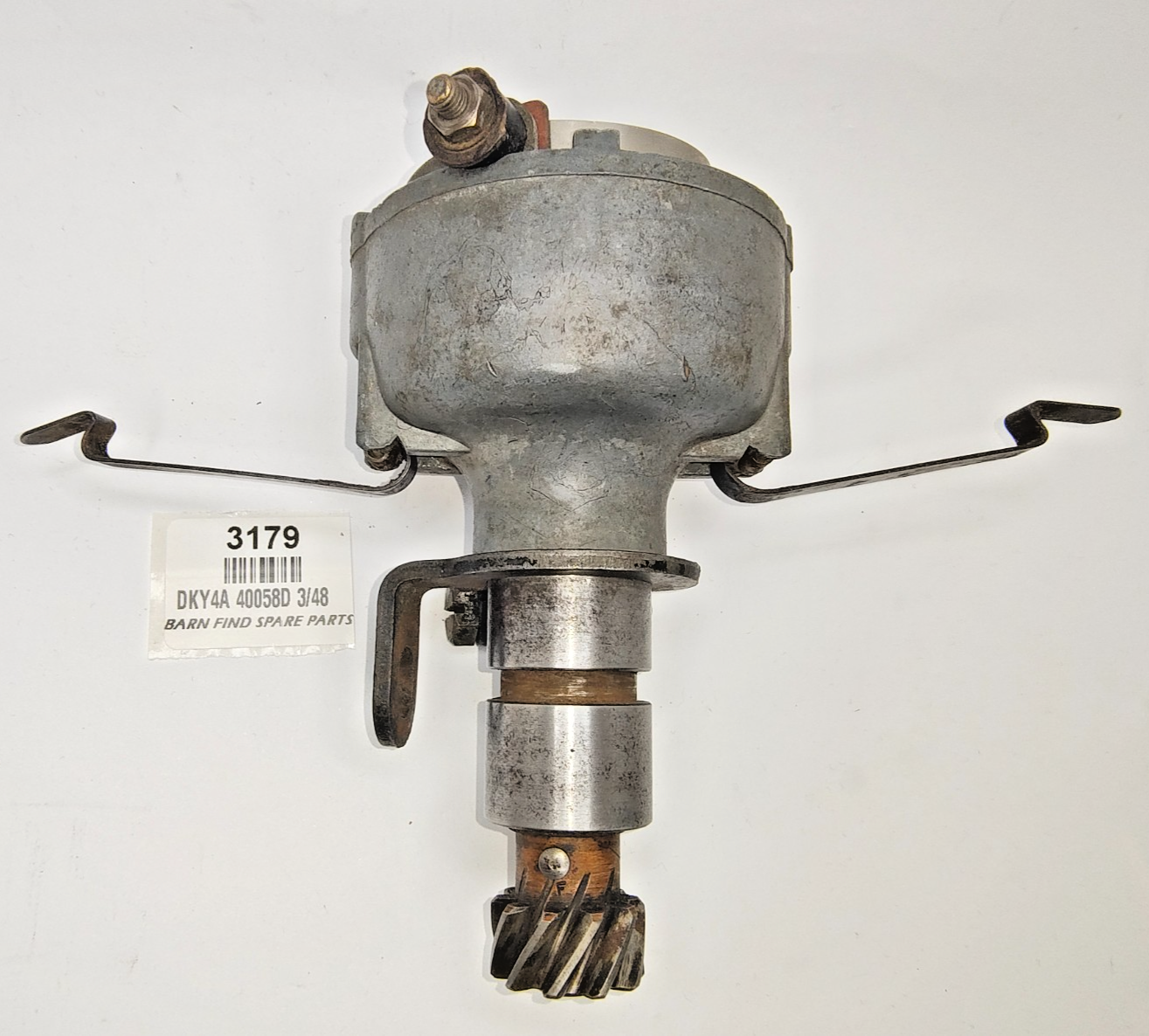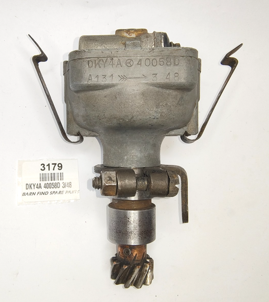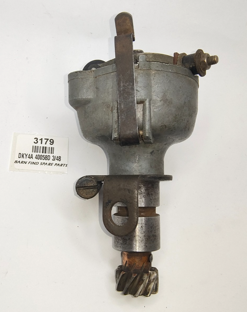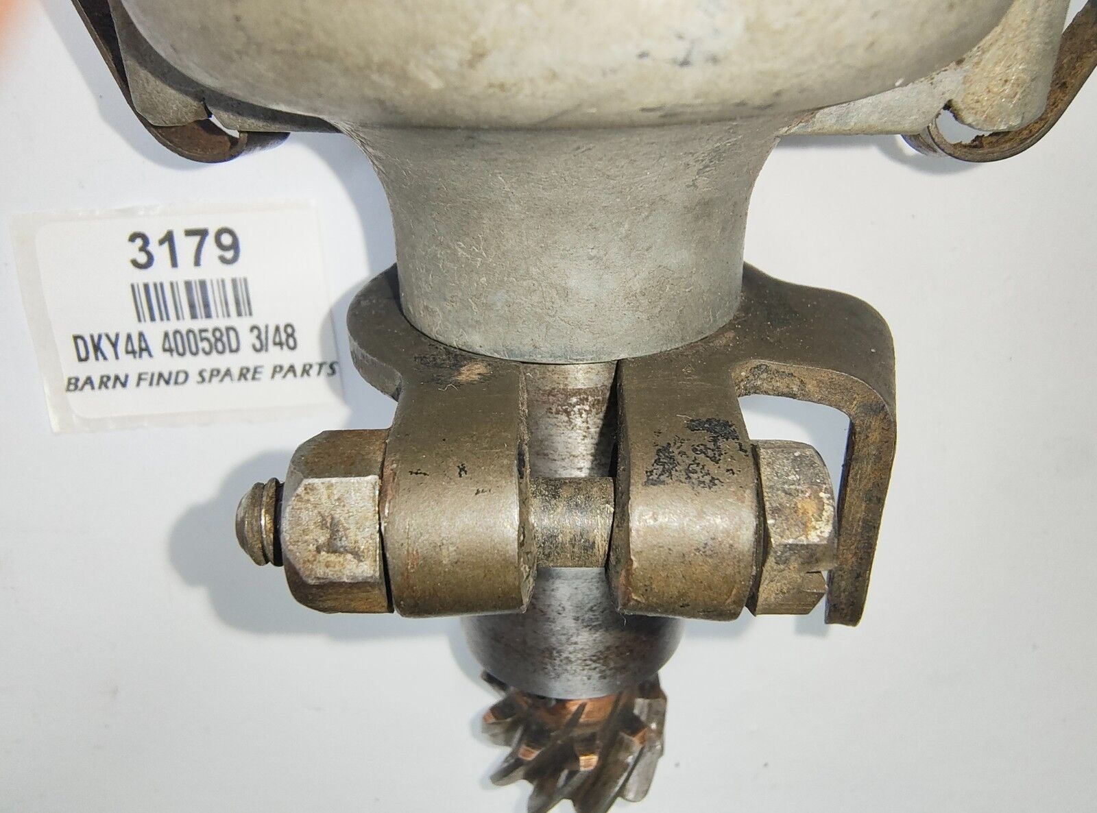 LUCAS USED DISTRIBUTOR DKY4A 40058D,  A131. Date stamped 3 48 (March 1948). To Suit MG and Morris 10 and some other early makes and models.  Comes with bracket for MG TD it has no detectable movement in drive shaft bush, advance springs and weights move freely, comes with points and condensor, the gear drive is in good order.  Please see photos as they form part of the description.