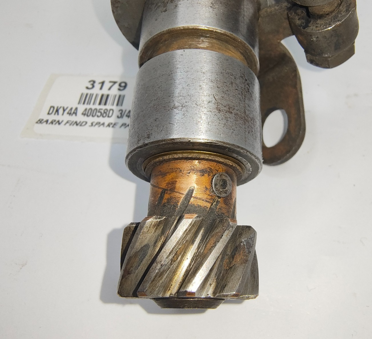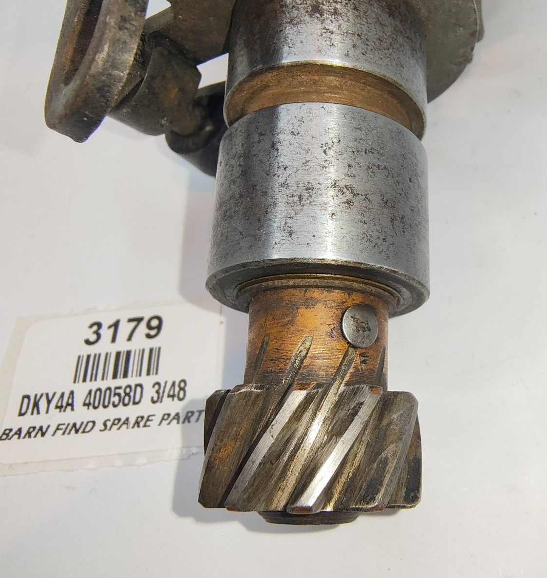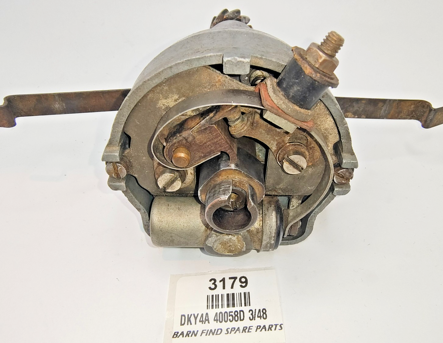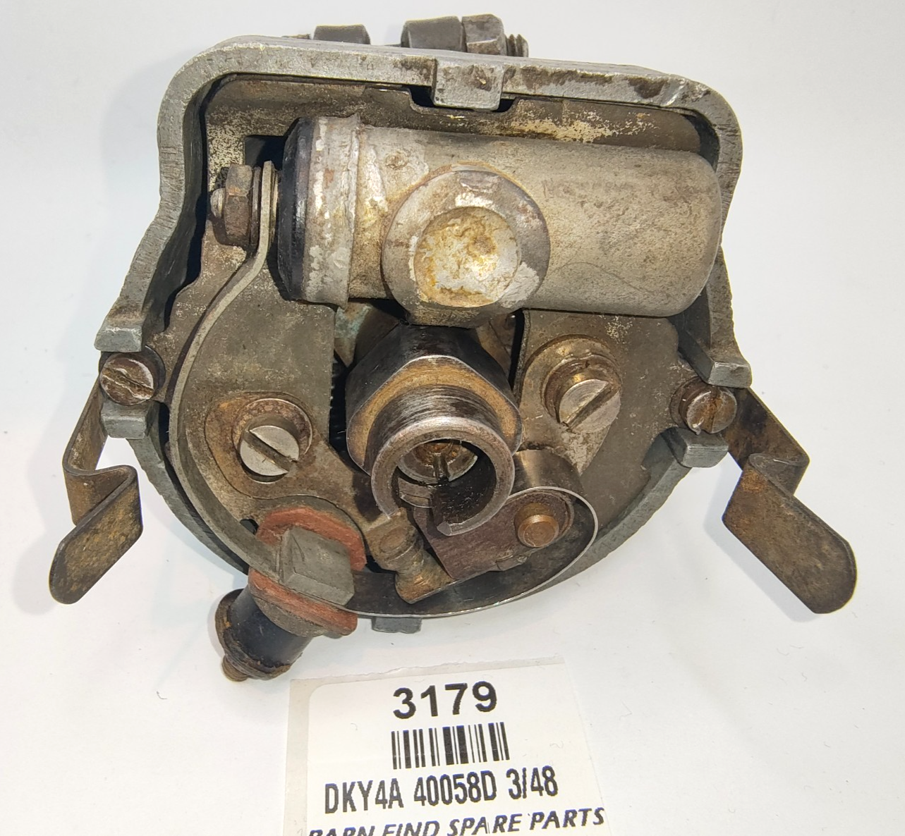 LUCAS USED DISTRIBUTOR DKY4A 40058D,  A131. Date stamped 3 48 (March 1948). To Suit MG and Morris 10 and some other early makes and models.  Comes with bracket for MG TD it has no detectable movement in drive shaft bush, advance springs and weights move freely, comes with points and condensor, the gear drive is in good order.  Please see photos as they form part of the description.