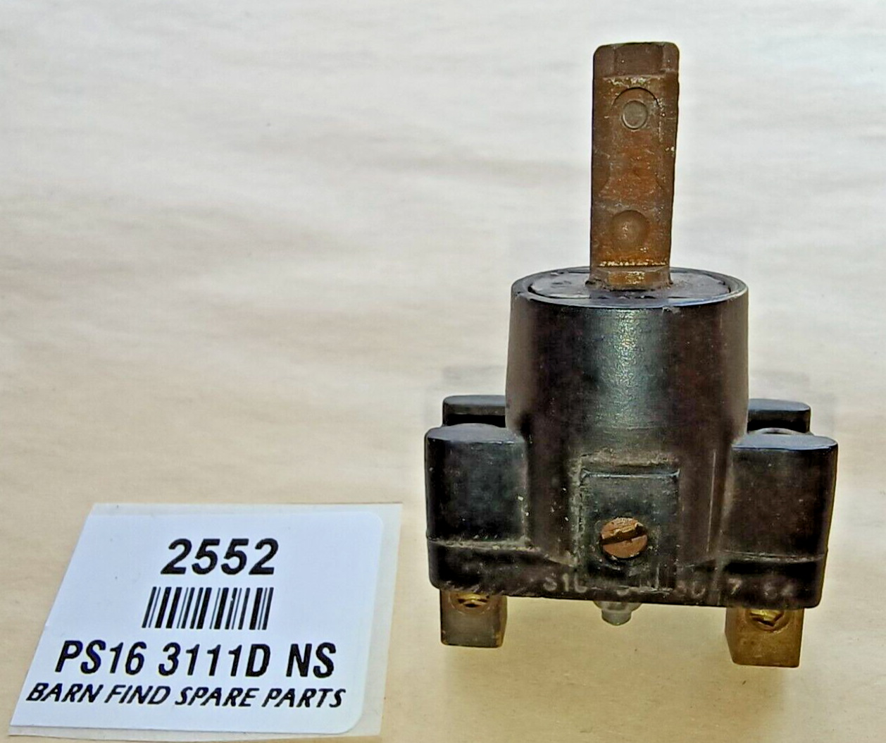 Lucas USED Two Position On-Off PS16 Model Light Switch, 3111D NS. Very rare, storage tarnish & dirt but in perfect working order missing both of its 2 terminal screws, Date stamped 7 54. To Suit, Jaguar MK5 -9, Triumph, Armstrong Siddeley, Bristol 404 405, MG, Rover Please see photo(s) - they form part of the description.