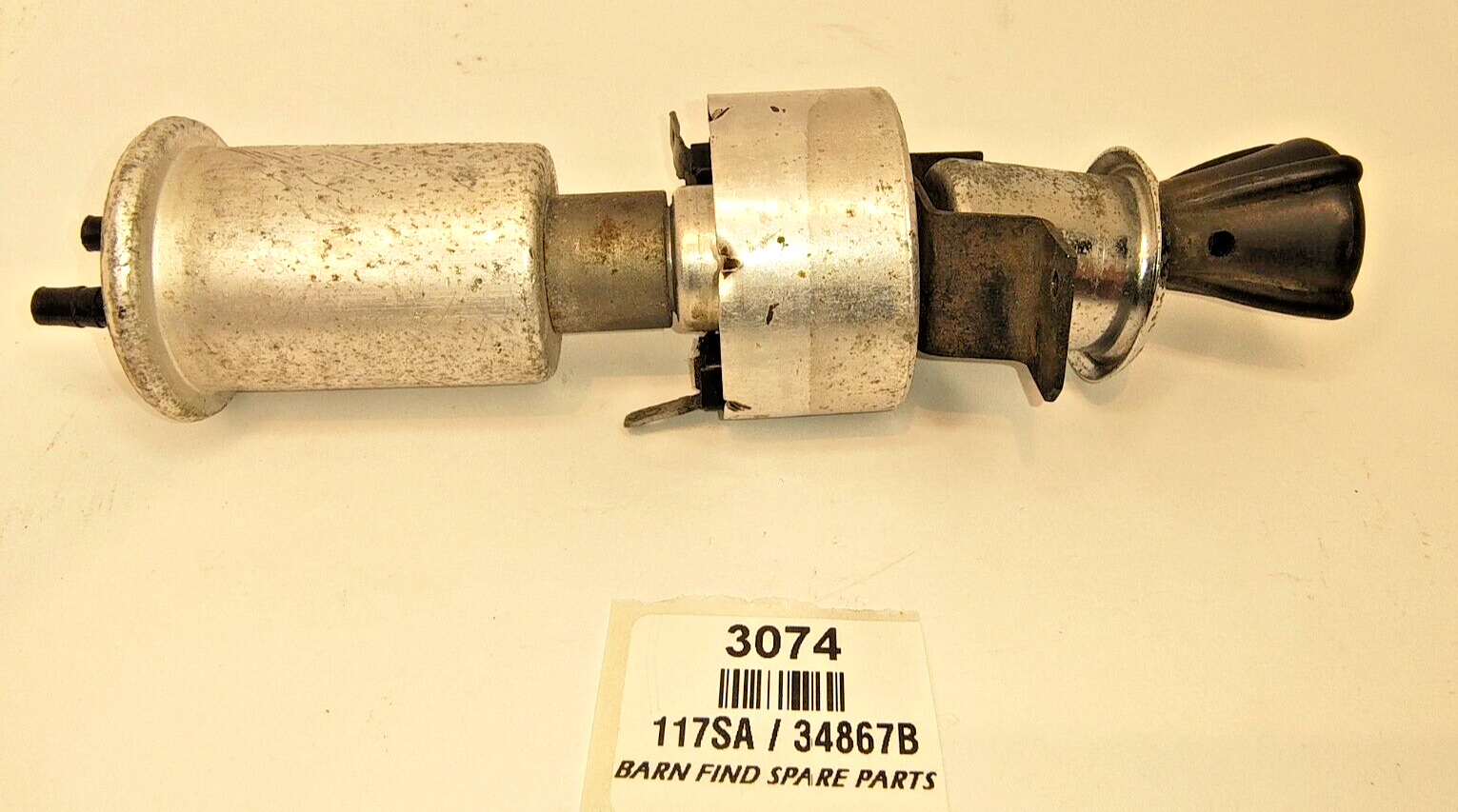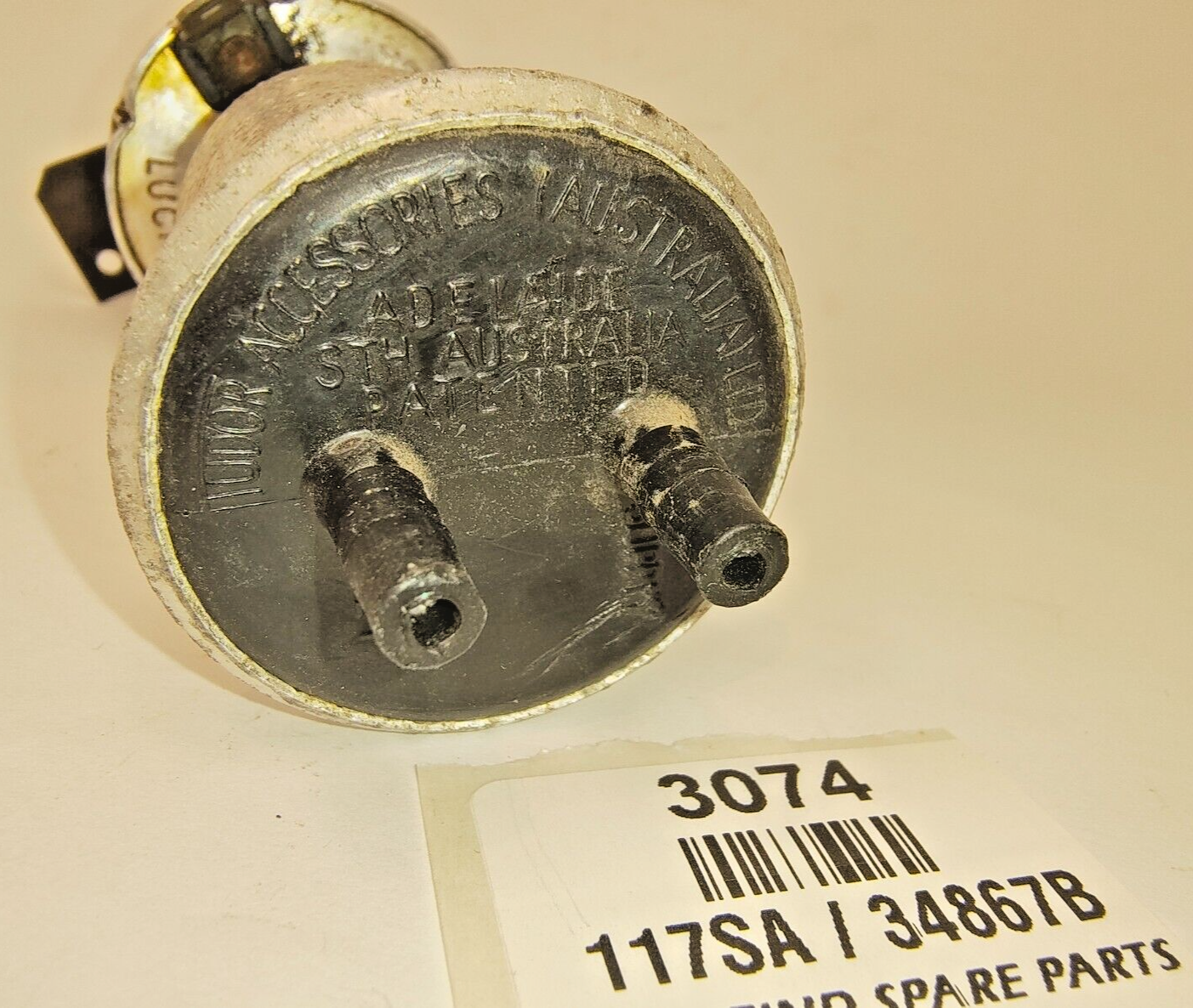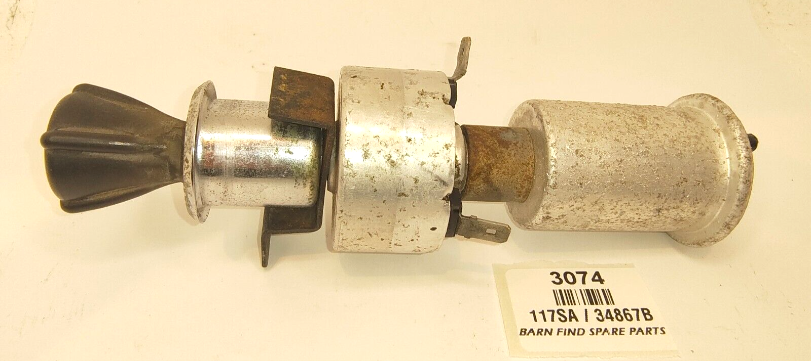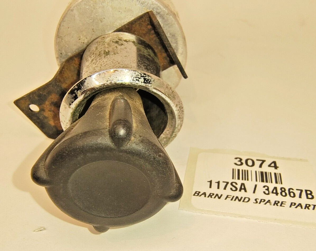 Lucas Original Used Windscreen Washer Button two position Switch with Tudor Push Pump, includes mounting flange, Bezel and nut also includes original knob, 117SA / 34867B. To Suit Hillman Minx, Singer Gazelle. PLEASE NOTE Being Sold as parts only as neither the Lucas two position switch or the Tudor pump have been tested. Please see photo(s) - they form part of the description.