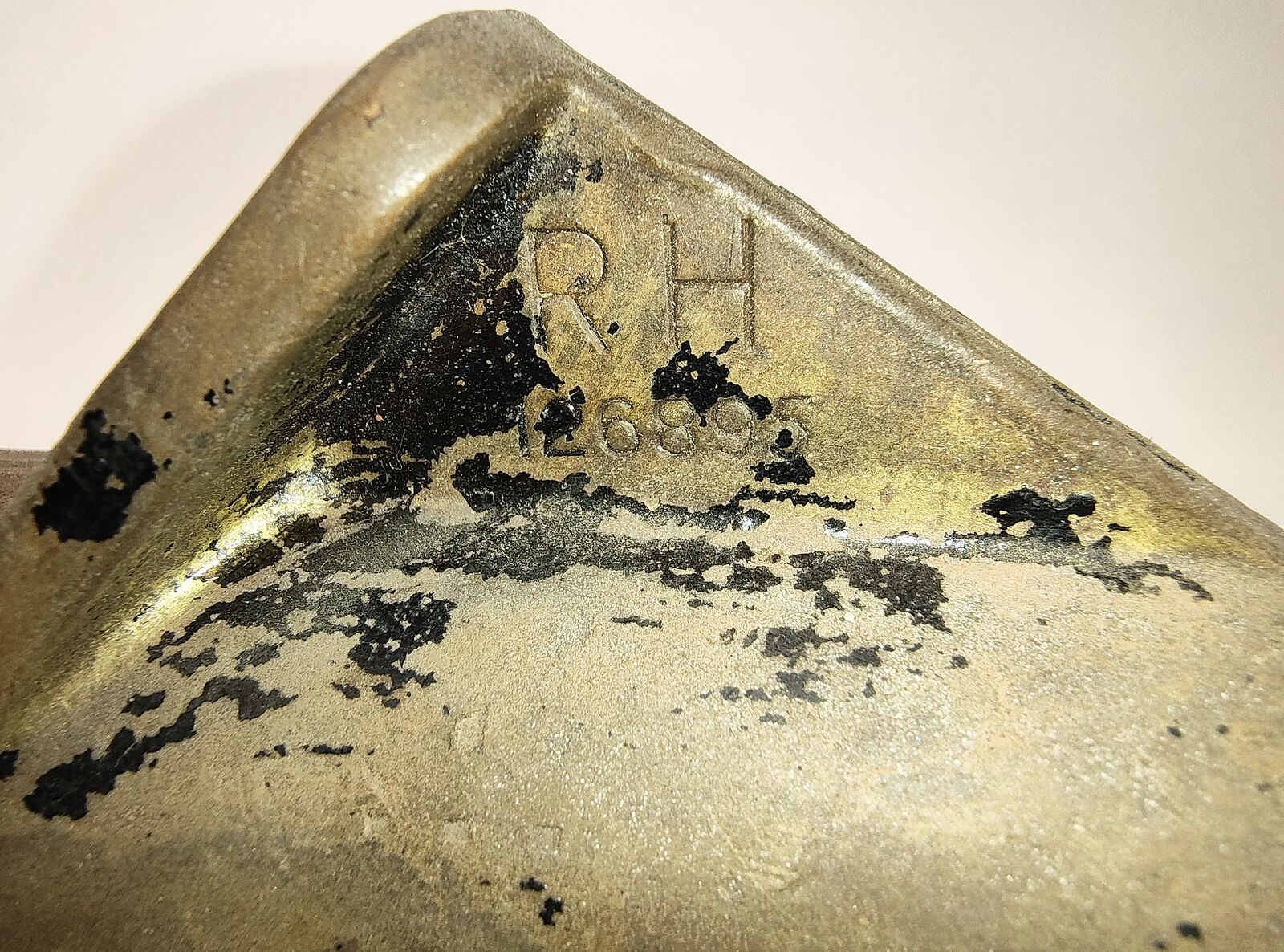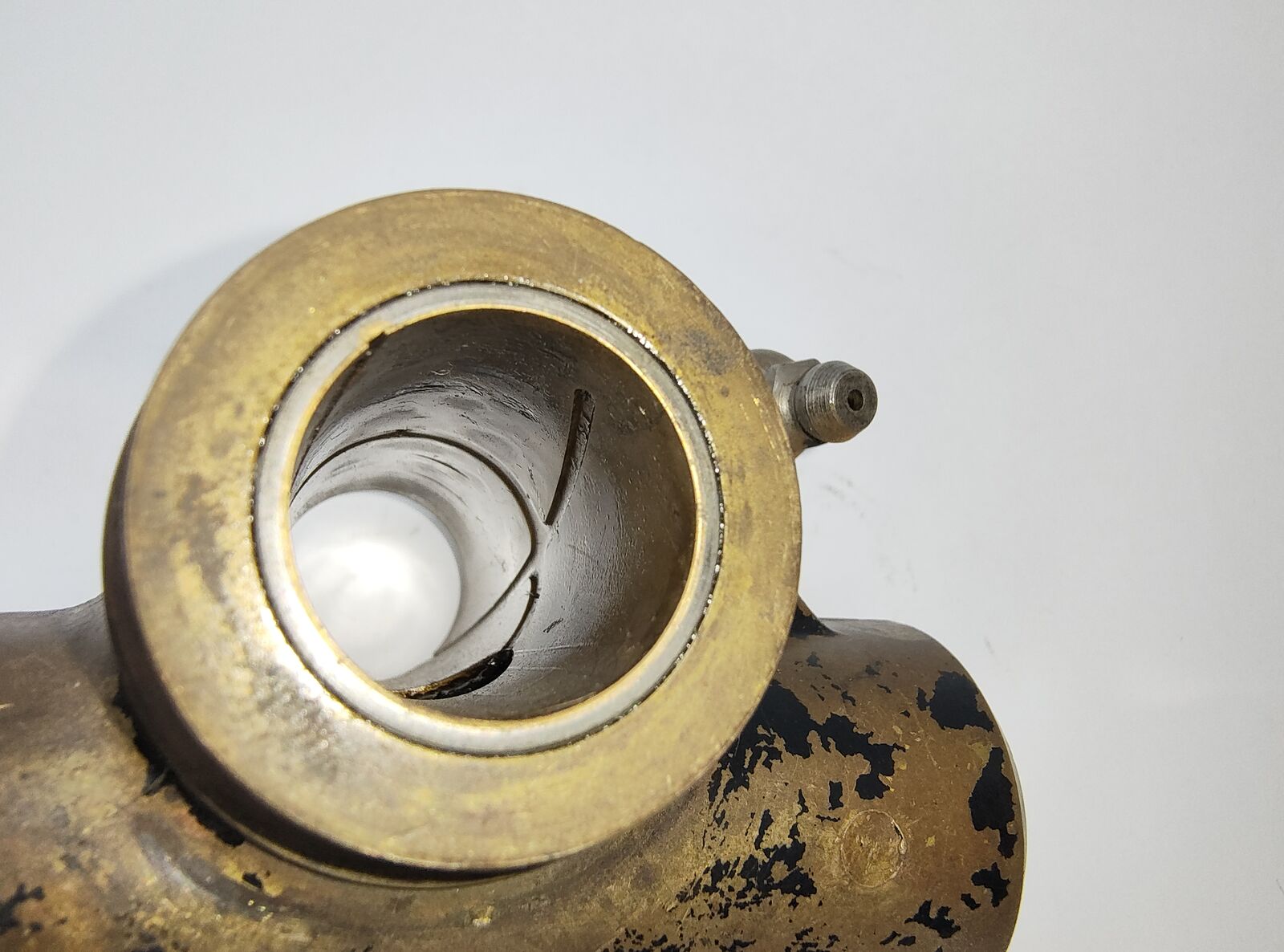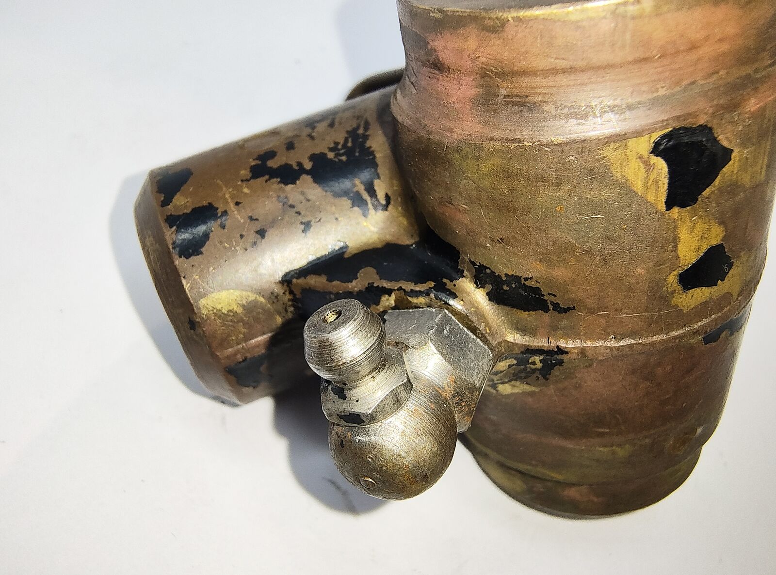 MG Original Brass FRONT SUSPENION UPPER SWIVEL LINK right Hand Top. Good Used Condition, brass construction with R H and the number 126895 stamped into the housing, includes grease nipple, threads are in good condition as is the bronze bush also in good condition (we tested bush by temporarily fitting the metal spacer to suit which moved freely and did not have any slop/play)amount of movement) To Suit MG TD, TF, MGA.