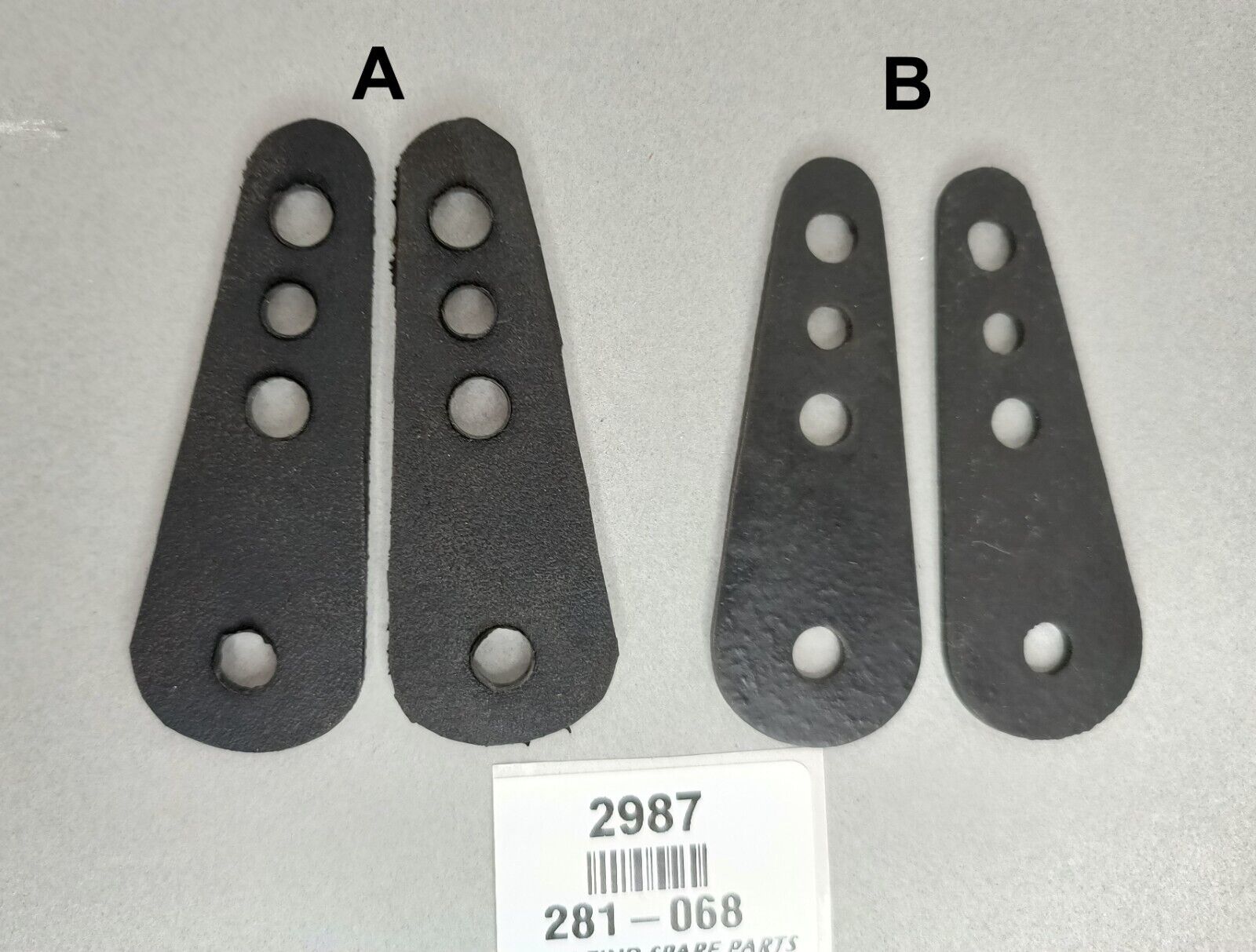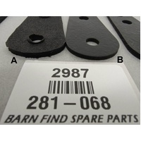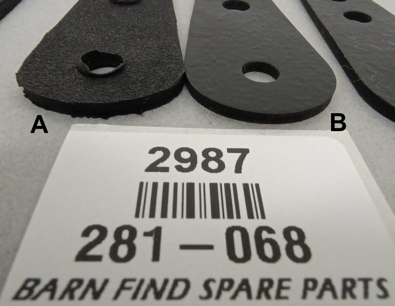 MG TA TB TC TD TF  Parking lamp pad set of 2 pads - 281-068. We have two sets - sold individually. Set A is made of flexible rubber and set B is made of a firm composite. Rubber set A is "slightly" larger than B - as shown in photo. Please indicate which item you prefer. Please see photo(s) - they form part of the description.