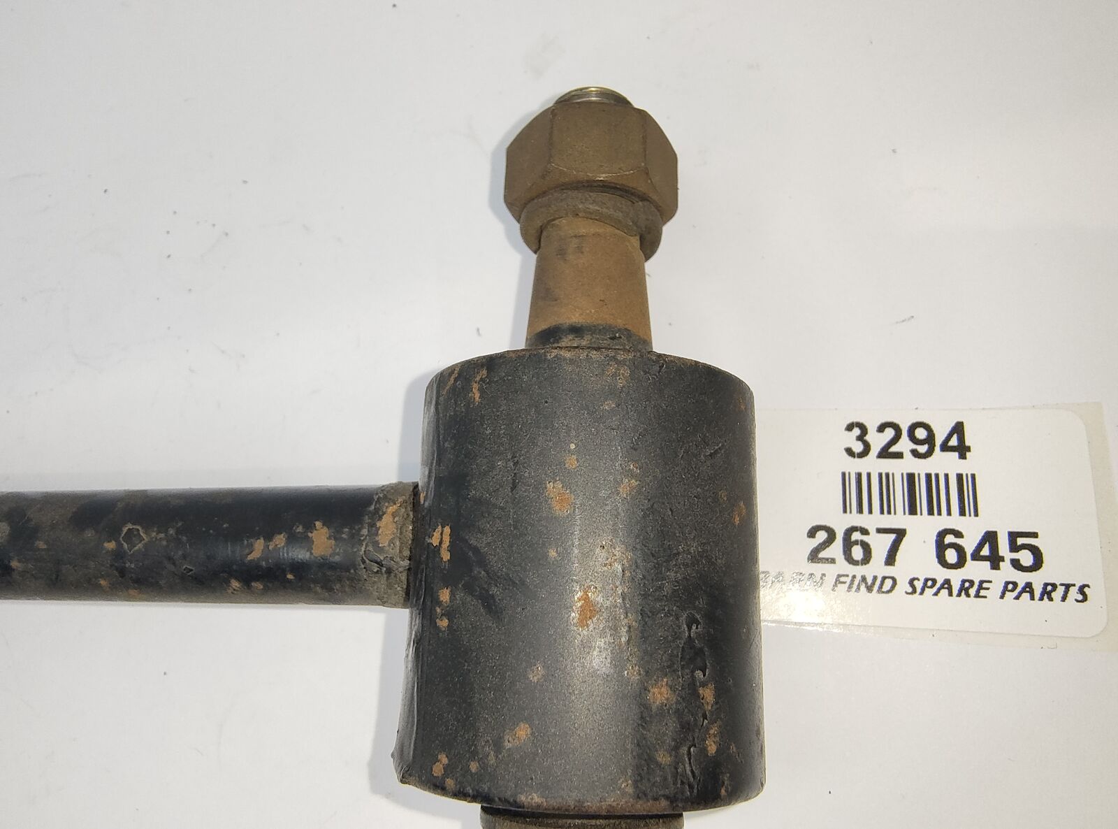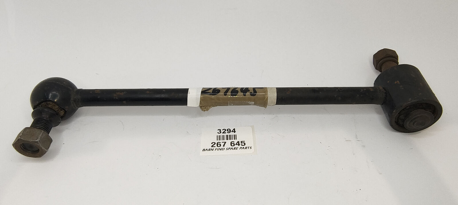 REAR SHOCKER LINK ARM, 267645 267-645 New Old Stock. To suit MGB Rubber bumper, this arm is showing considerable on-the-shelf life with chipped/ scratched and peeling paint, missing one spring washer.