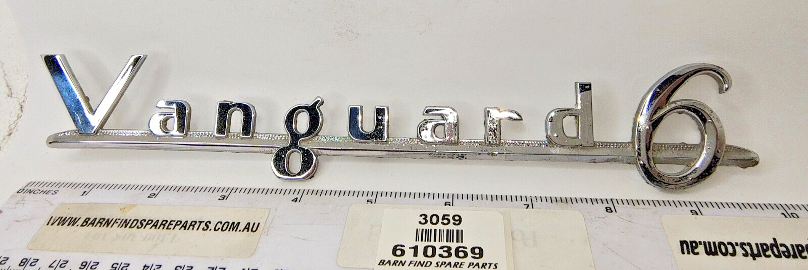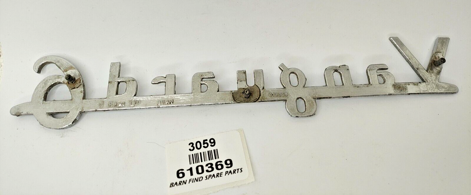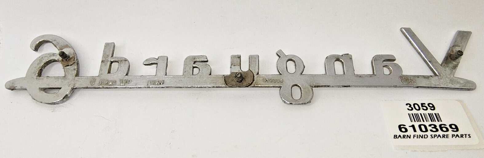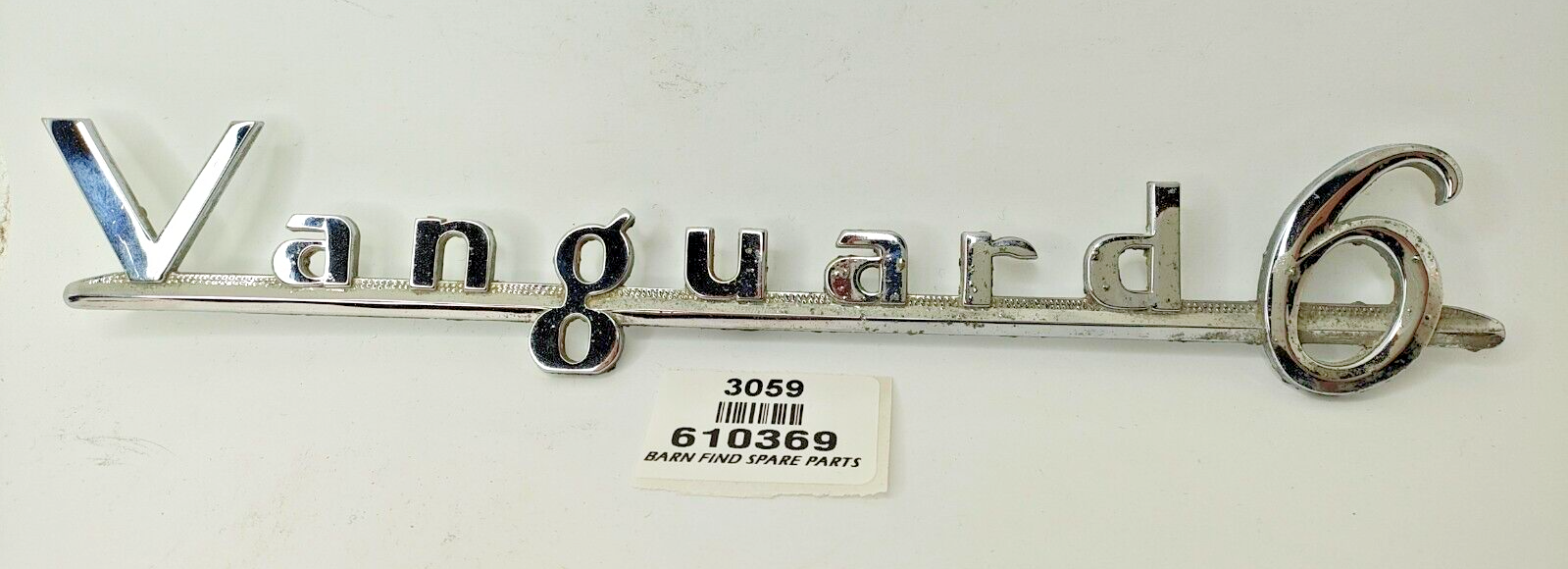 Rare Original vintage Standard Vanguard 6 chrome emblem badge large - 10" / 25cm long J Fray Ltd Birmingham. Stamped part number: 610369 Please see photo(s) - they form part of the description.