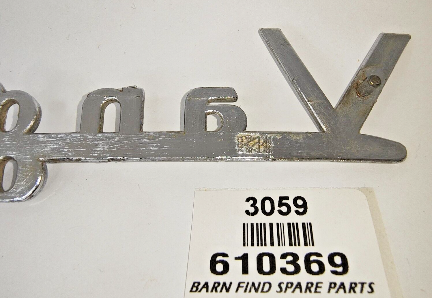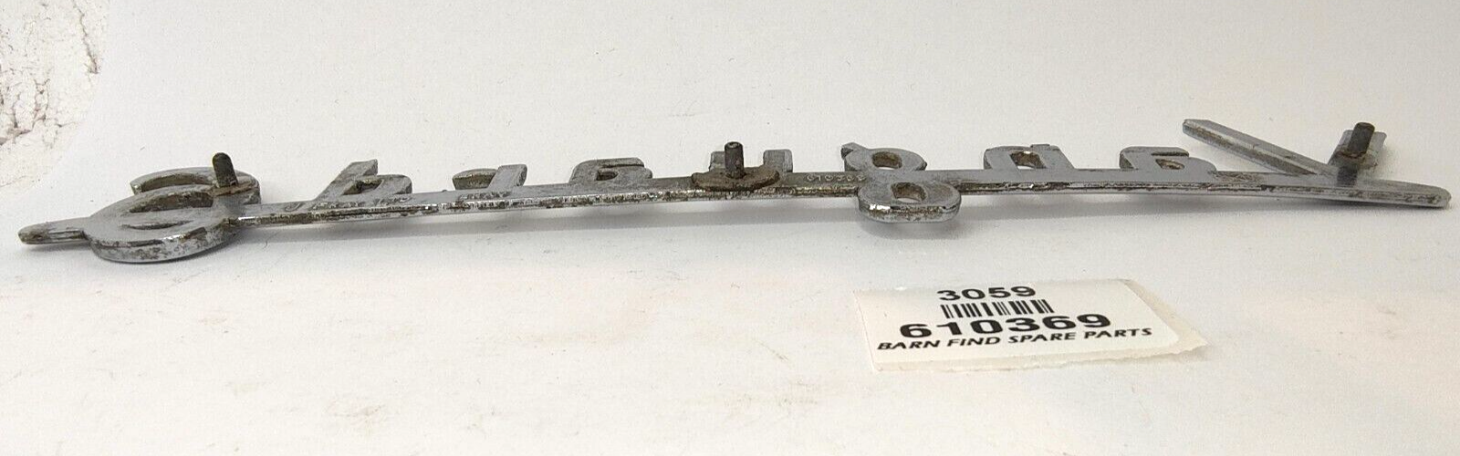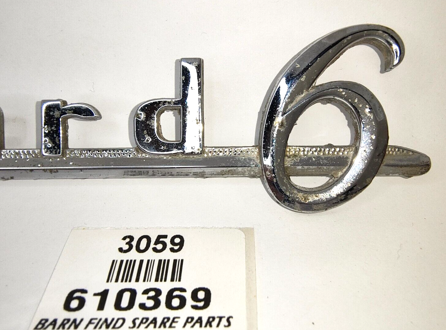 Rare Original vintage Standard Vanguard 6 chrome emblem badge large - 10" / 25cm long J Fray Ltd Birmingham. Stamped part number: 610369 Please see photo(s) - they form part of the description.
