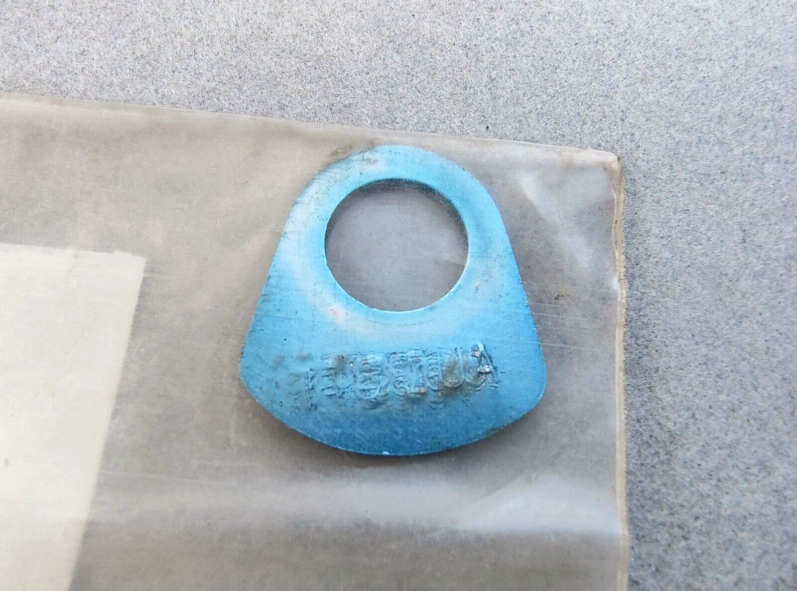 Original AUD37F Jaguar e-Type MKX / 420 SU Carburettor Fuel Bowl Tag. Anodized blue metal.  New Old Stock - still sealed in original plastic bag. Please see photo(s) - they form part of the description.