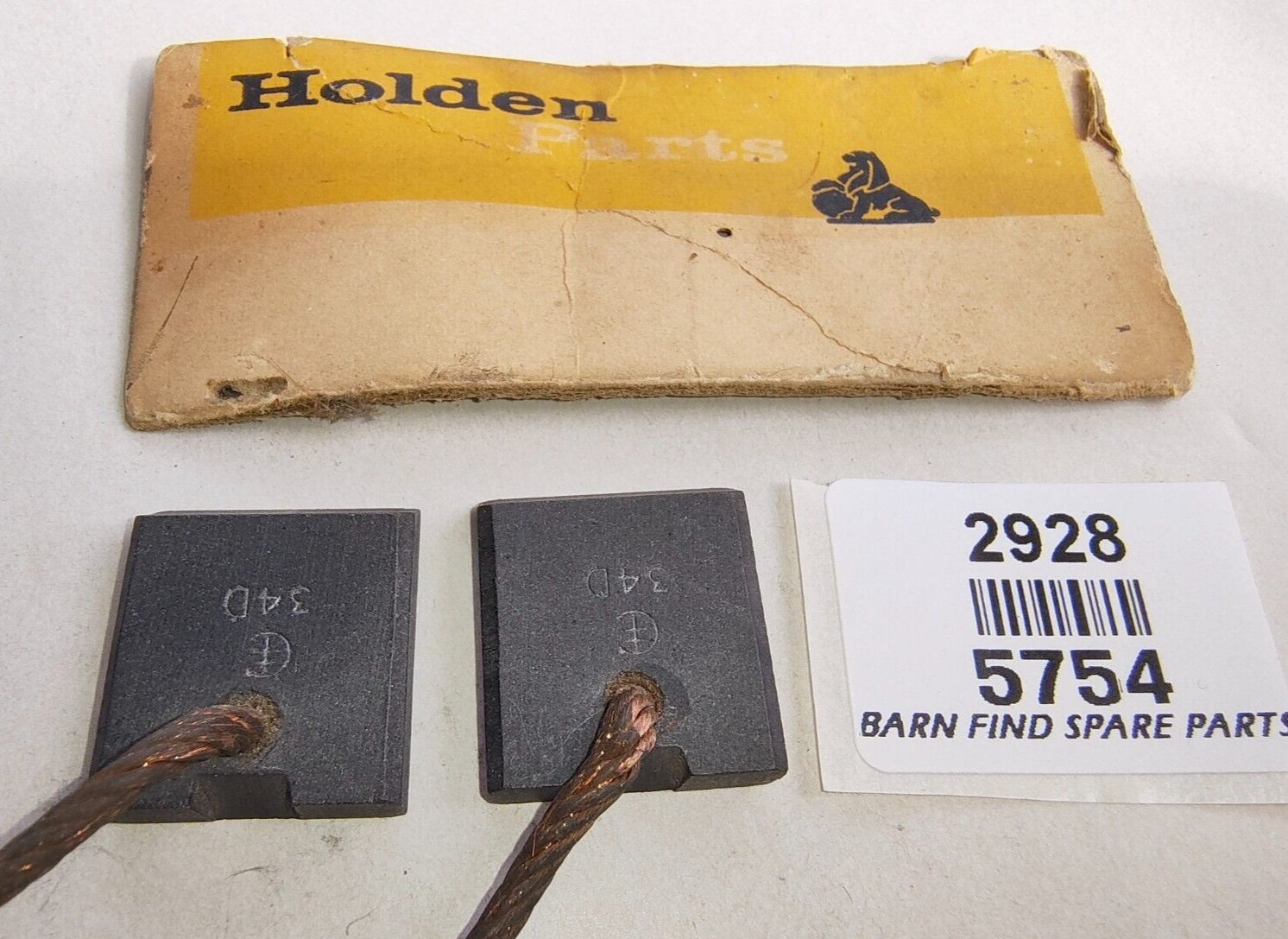 Original Brush Set 5754 New Old Stock. Holden Part number 7406554, To Suit Bosch Generator as fitted to Holden FB - EK, Volkswagen (1.6L around 1967 to 1973). Brush measures 21.45MM Wide x 25 MM x 5.90 MM Thick and with a 45MM lead. Please see photo(s) - they form part of the description.  Holden parts sign shown in some photos not included.
