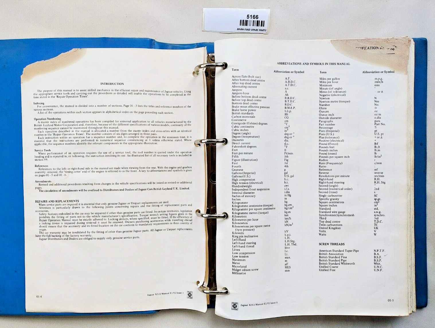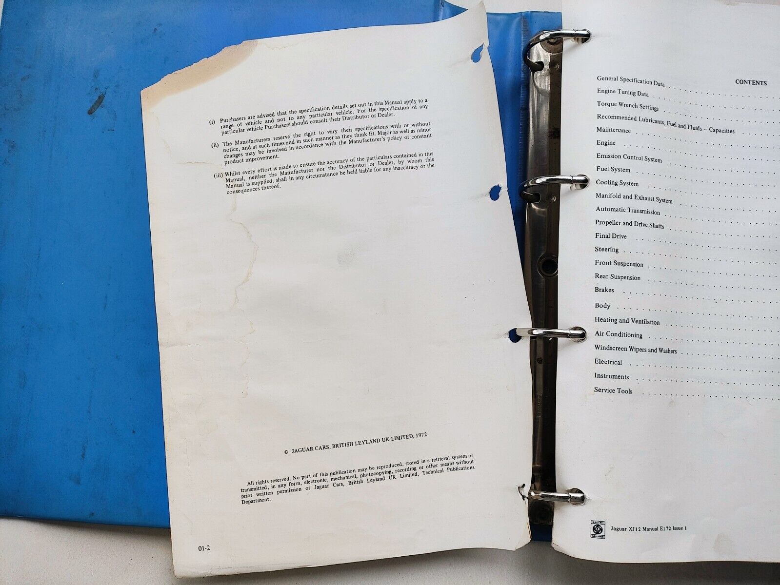 Original Jaguar XJ12 Repair Operation Manual E.172 Issue 1 1972 in hard binder. Please see photo(s) - they form part of the description.