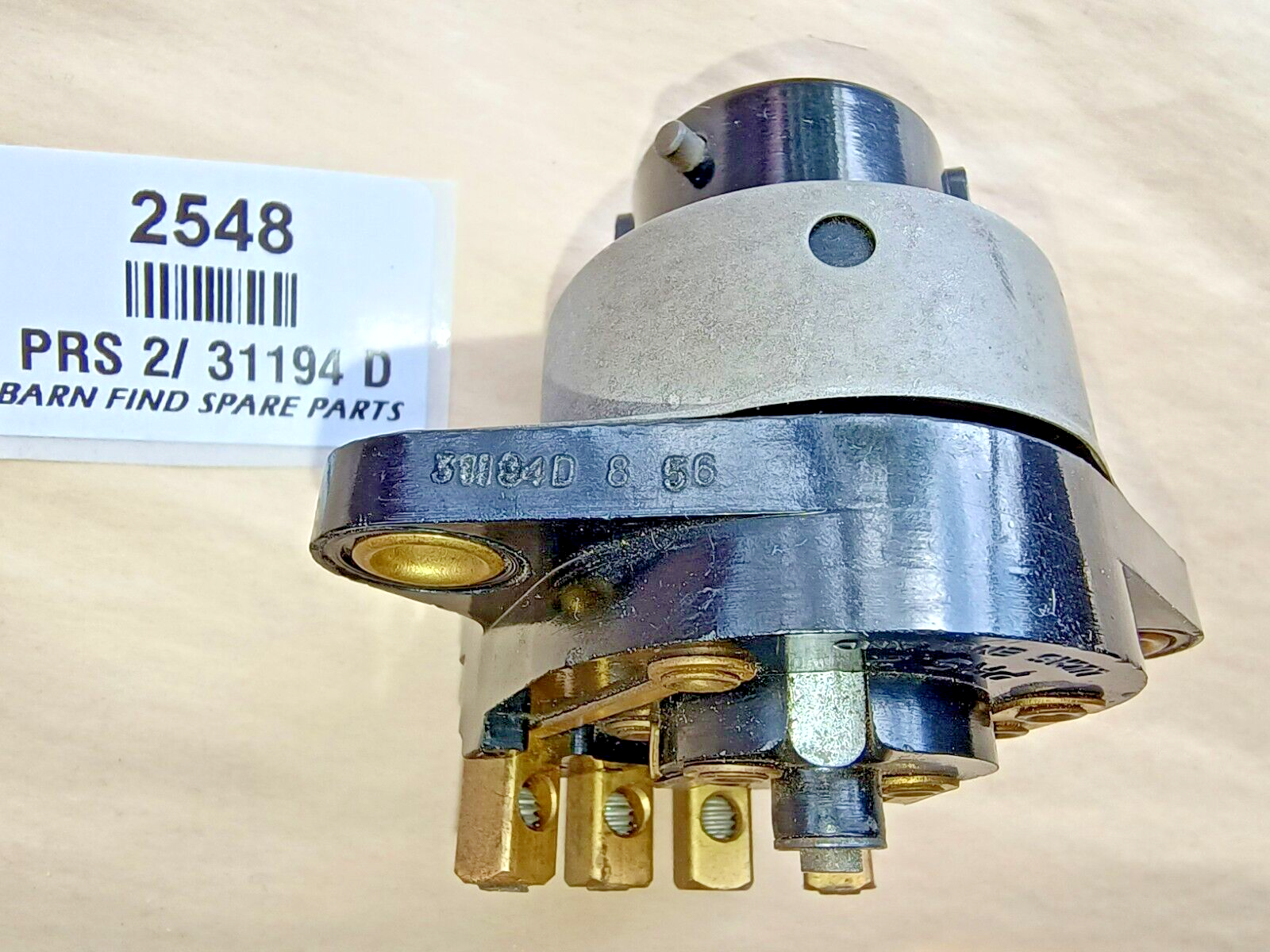 Original Lucas Ignition & Light Switch New Old Stock PRS 2/ 31194 D. Rotary 3 position light switch (Off - Side - Head), Metal clad brown Bakelite. Date Stamped 8 56. To Suit AUSTINA70, A40 DEVON SOMERSET HEREFORD A70, A105, ATLANTIC A90 and many others. Please see photo(s), they form part of the description.