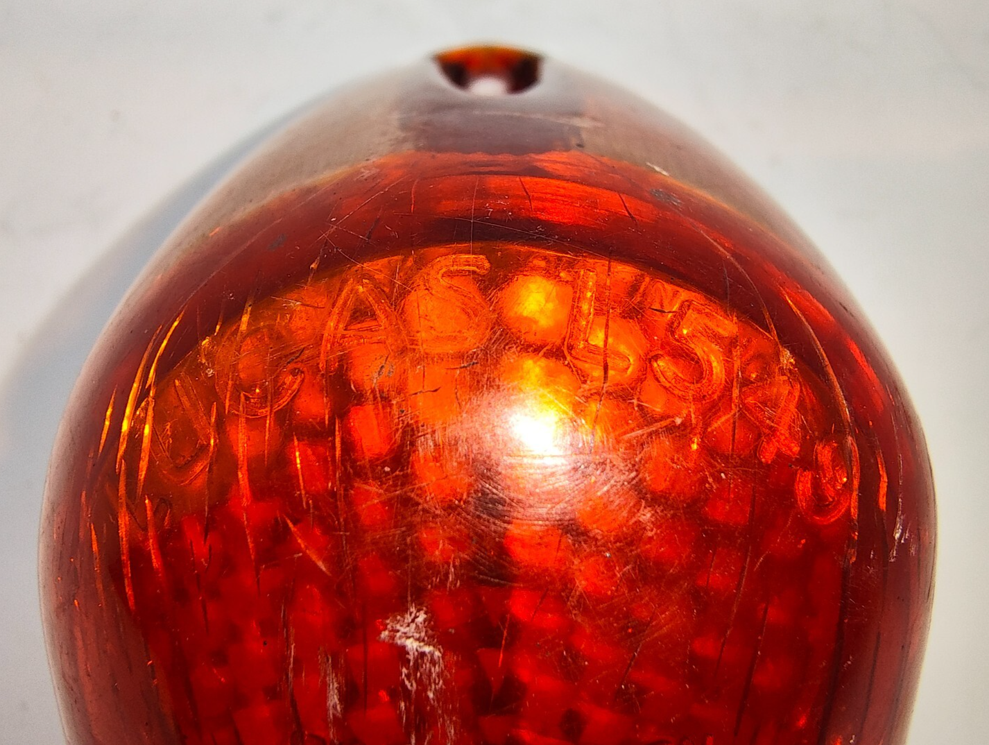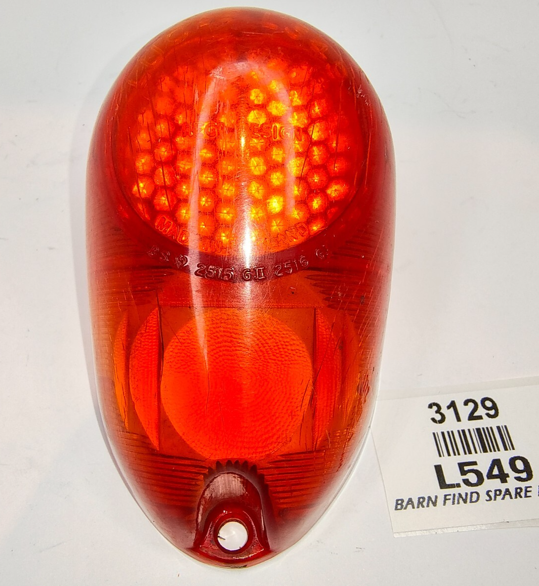 Rear Light Lens Used Original Lucas L549 574635  It's more amber than red. To Suit All Morris Minor 2 & 4 Door Sedans / Convertibles From Oct 54 To Oct 63, MGA and Triumph TR3.  Used condition - please see photos as they form part of the description.