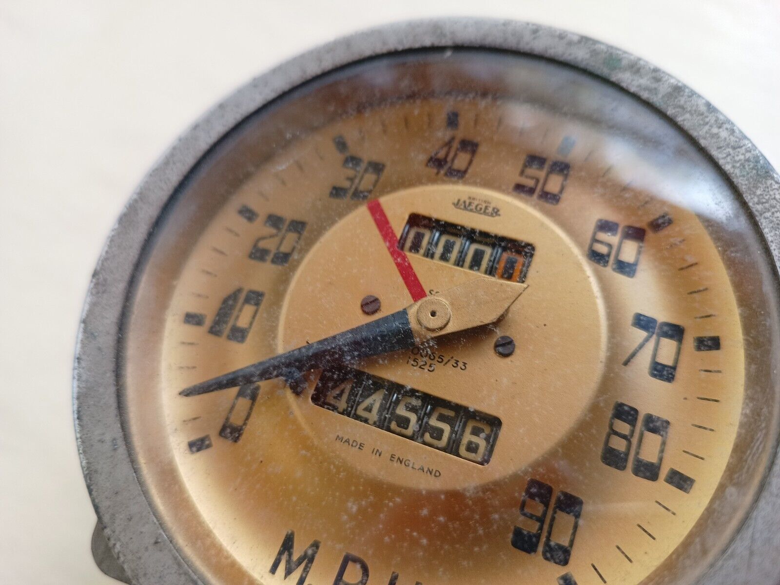 Original Jaeger classic car speedometer speedo 70065/33 1525 used looks to be in good order but untested. Gold face suits Riley RMB Please see photo(s) - they form part of the description.