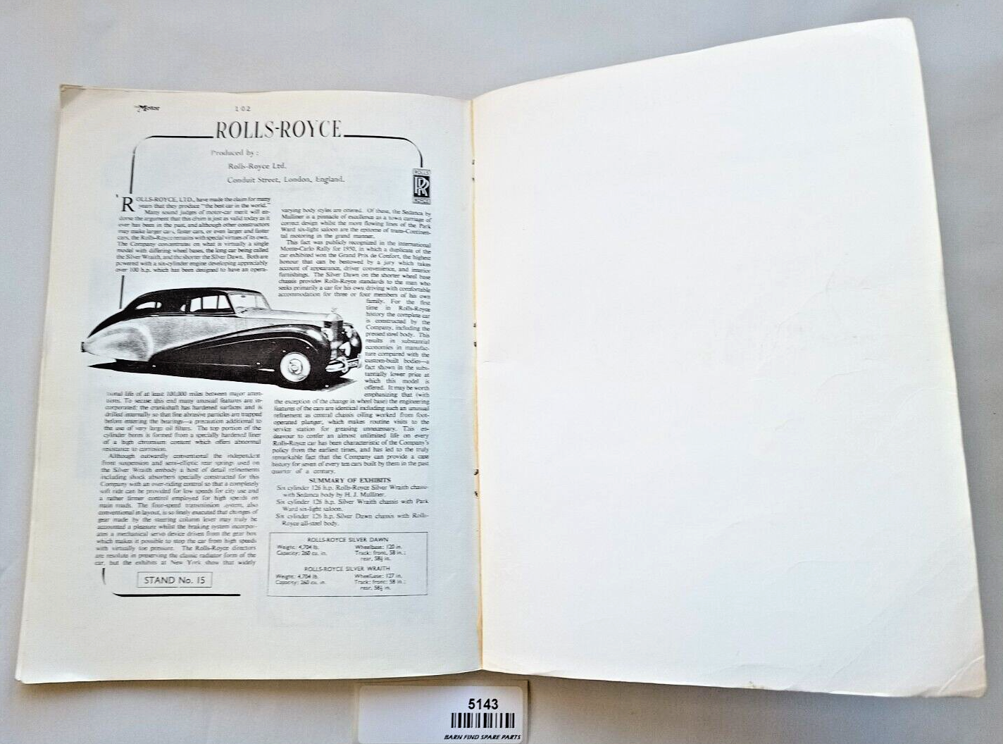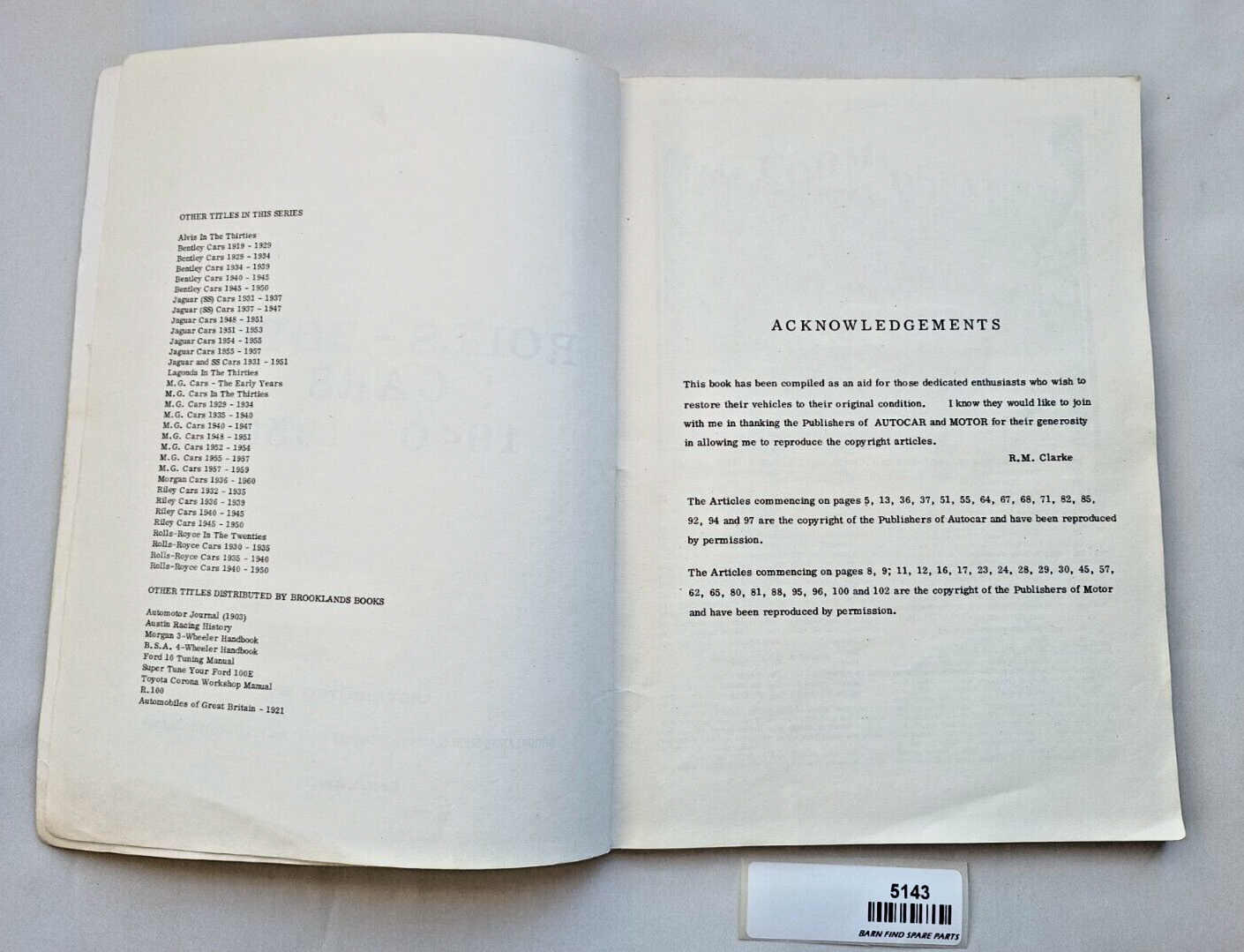 Rolls-Royce Cars 1940-1950 Brooklands Books original vintage softcover. Compiled by R.M. Clarke. 102 pages. Please see photo(s) - they form part of the description.