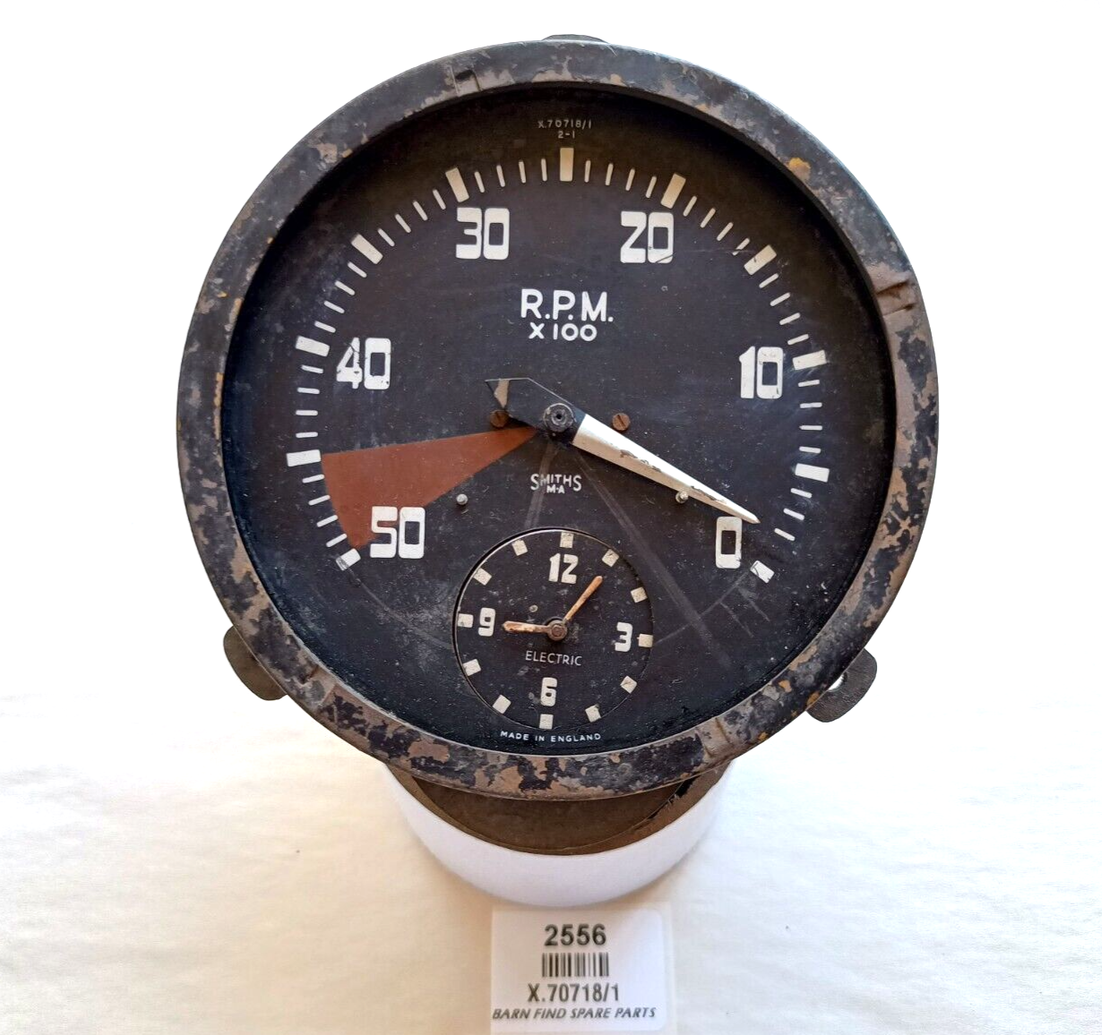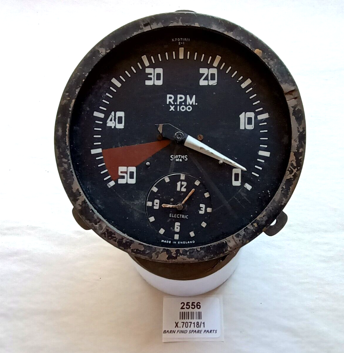 Used Condition Smiths tachometer, X.70718/1 Cable driven 2:1 ratio.  Including the original clock, all genuine and original, PLEASE NOTE missing glass but does have bezel rim. The tachometer has been tested with a battery hand drill and is working. The clock is missing the adjuster rod. The clock mechanism is not working and therefore only tells the correct time twice a day :-) To Suit Jaguar MK 5 Please see photo(s) - they form part of the description.