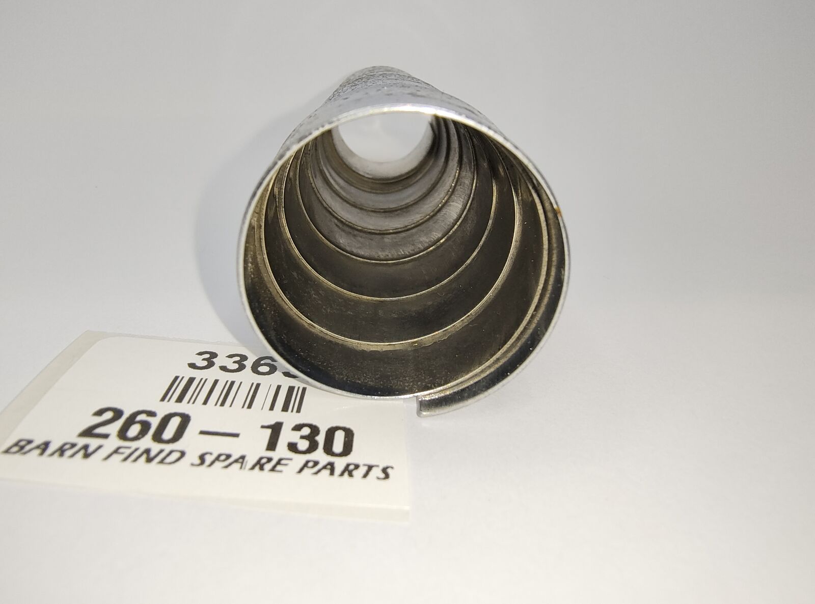 Spring cover for Steering Column, good used condition, 260-130. This spring cover does have some light staining but with metal polish and equal portion of elbow grease would be well rewarded.   To Suit MG TC and possibly Sprite and Austin Healey. Please see photos as they form part of the description.