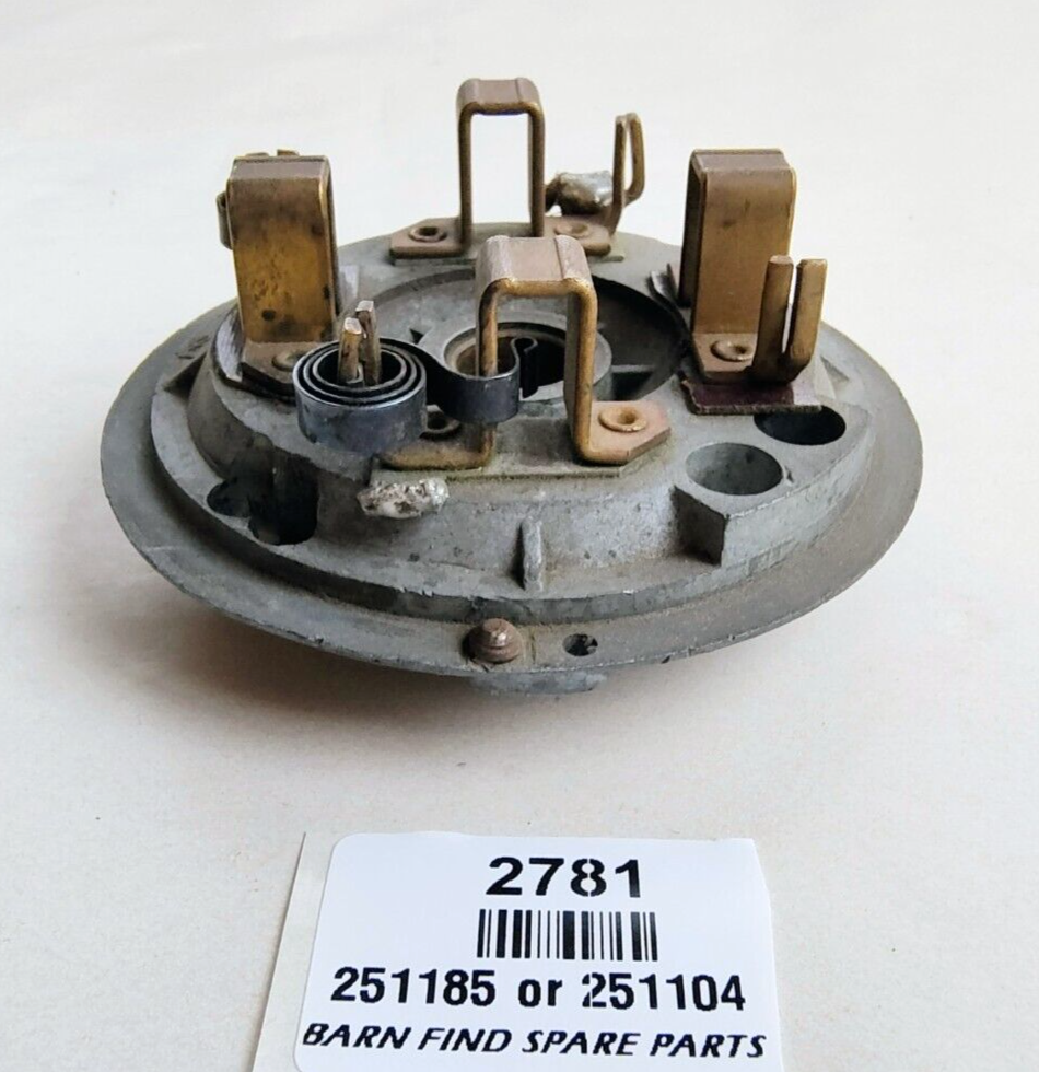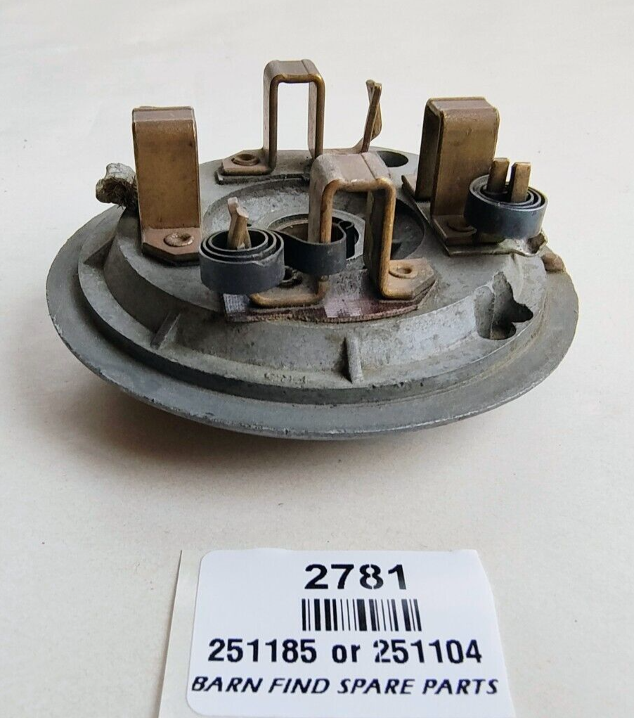 Starter Motor End Plate M35G G1 USED.  This is either a 251185 or 251104, this plate requires two brush springs(Either part numbered 251109 and or 251942. To Suit Lucas M35G & M35G1 Starter motors with the following part numbers 25014B, 25014D/F, 25031A/D, 25026A/E, 25022M, 25022A/L, 25021A/H, 25061B, 25061A, 25058F, 25058A/D, 25050A/B, 25047A/B,  25037A/B (6 Volt), 25034A/D, 25065B, 25065A. Please see photos as they form part of the description.