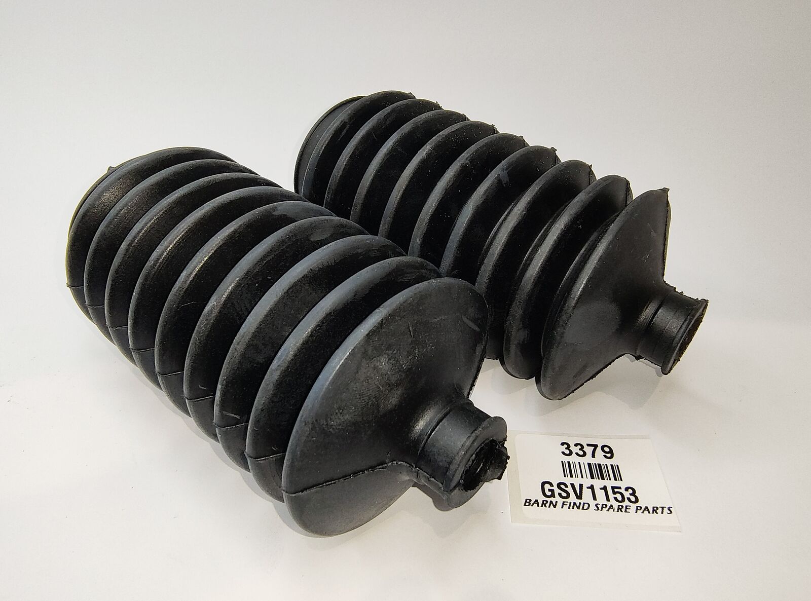 Steering Rack Boot (pair) New Old Stock GSV1153, alternate part number AYA6012, 9 rib, 4 3/4"in length supplied with plastic clips. To suit Mini and Moke.  Please see photos as they form part of the description.