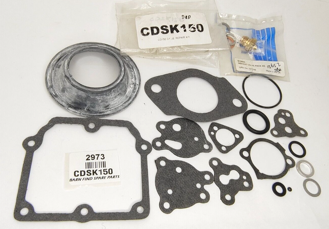 Stromberg 150 CD Carburettor Repair Kit CDSK150, note this set may be incomplete there are 16 Pieces including  Gaskets, Seals, Suction Chamber Diaphragm PLUS a needle valve B19053 1.75 pack. Included are  all items shown in the photos. Holden Torana LC LJ GTR XU1 6cyl. Please see photo(s) - they form part of the description.