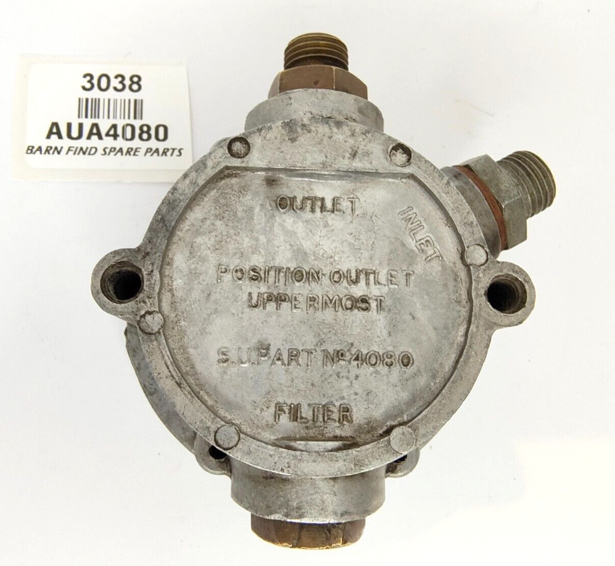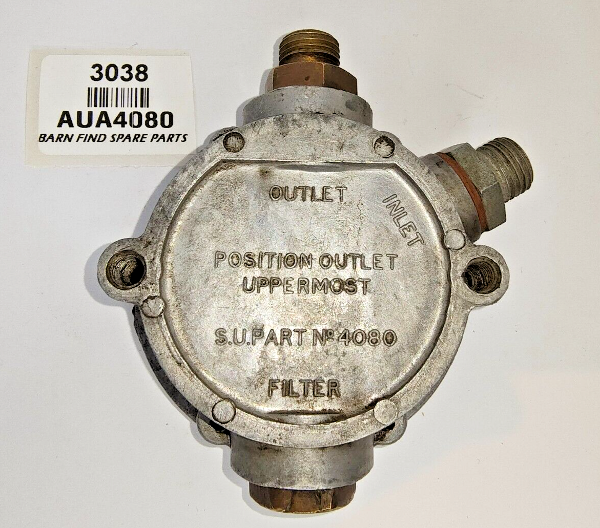 SU Fuel Pump body, good used condition. AUA4080 complete with  Sandwich Plate AUA4081 with one gasket, Inlet connection AUA887 & Outlet Connection AUA1422, Filter AUA1464 & Filter Plug AUA1421. Please see photo(s) - they form part of the description.