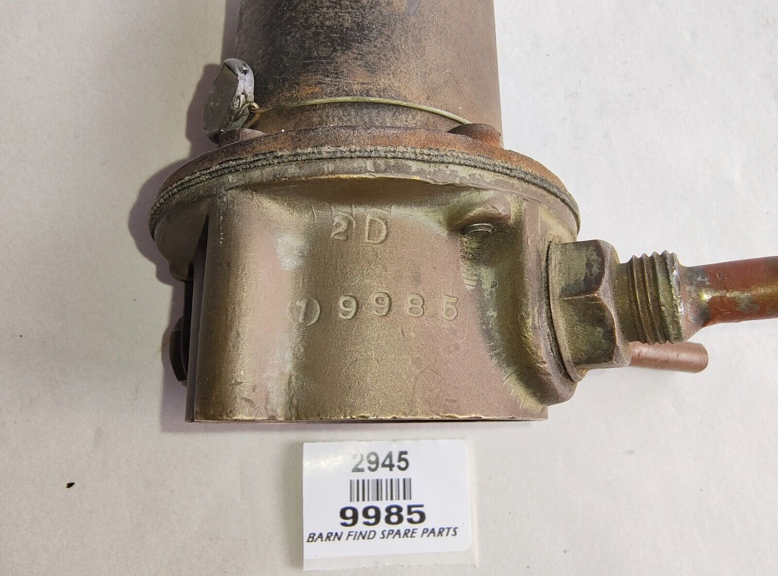 SU Original complete USED  L Type 6 Volt Fuel Pump  Part number 9985 which is prefixed with (7 )  is this 7 Gallons per hour ? The pump body is also stamped 2 D, The brown  points cover is marked 6V. The pump body is made of brass and the coil body still retains the "lock wire" which passes through the earth post and still has the lead seal stamped SU. The points do sound but it has not been tested with 6 Volt power. Please see photo(s) - they form part of the description.